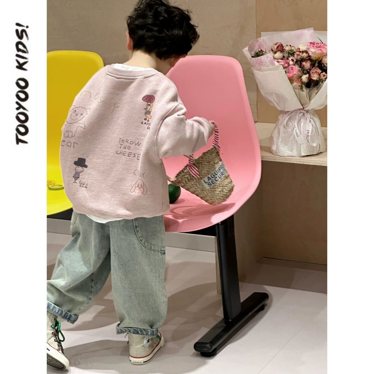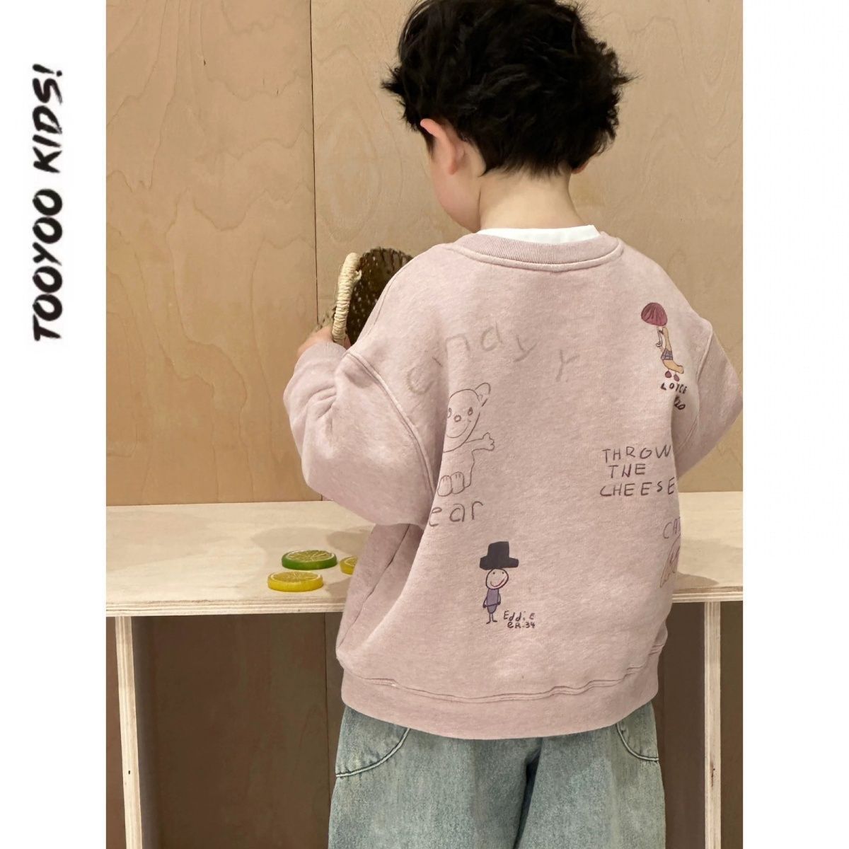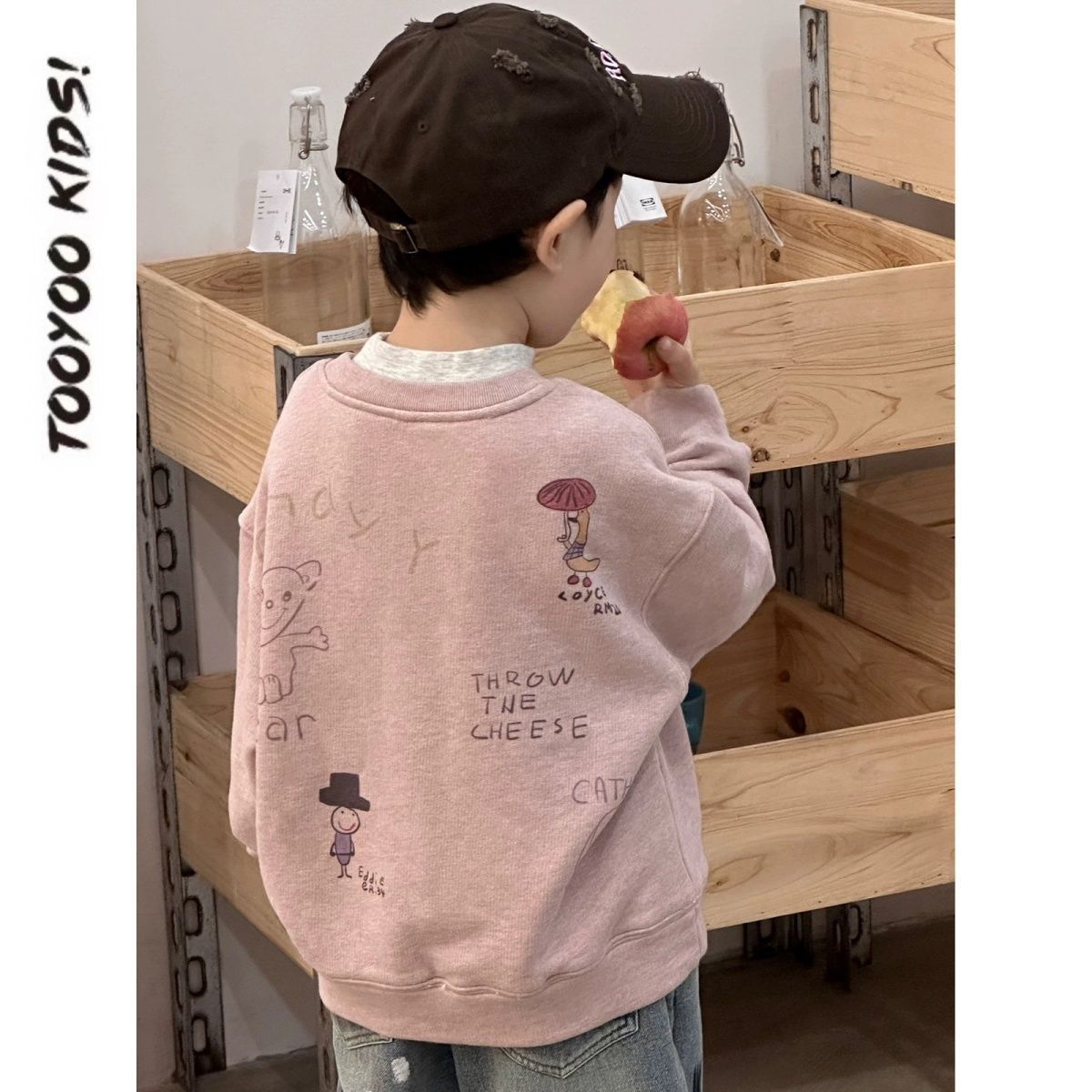 한국 스타일 소년 운동복 2025 봄, 가을 새로운 느슨한 만화 인쇄 다목적 긴팔 낙서 운동복 화이트 탑스토어 가기