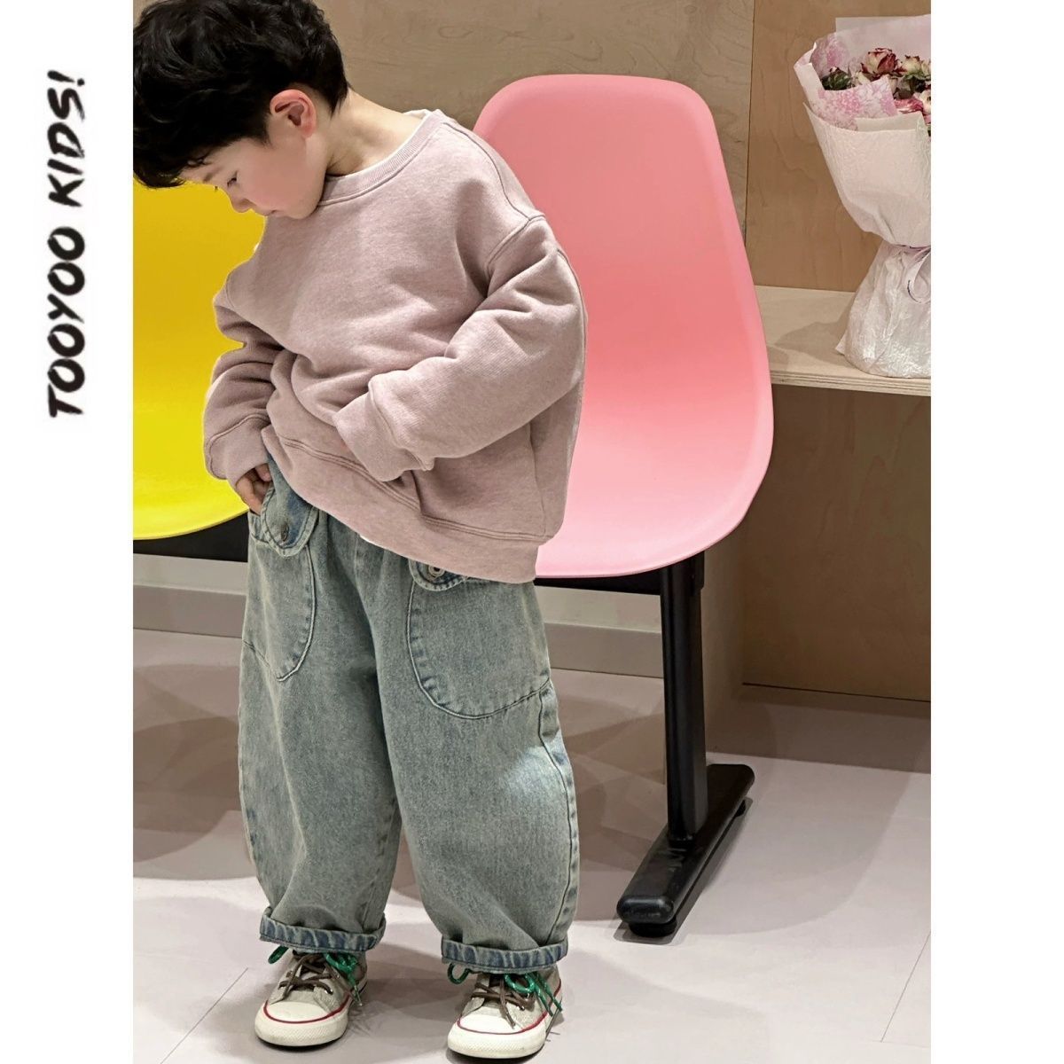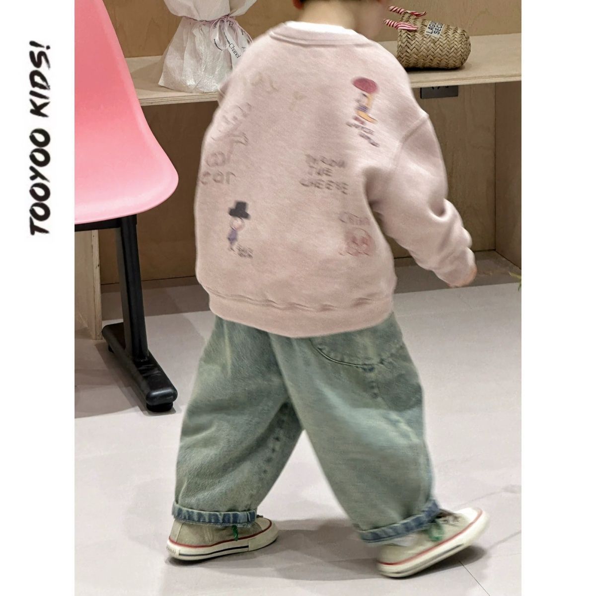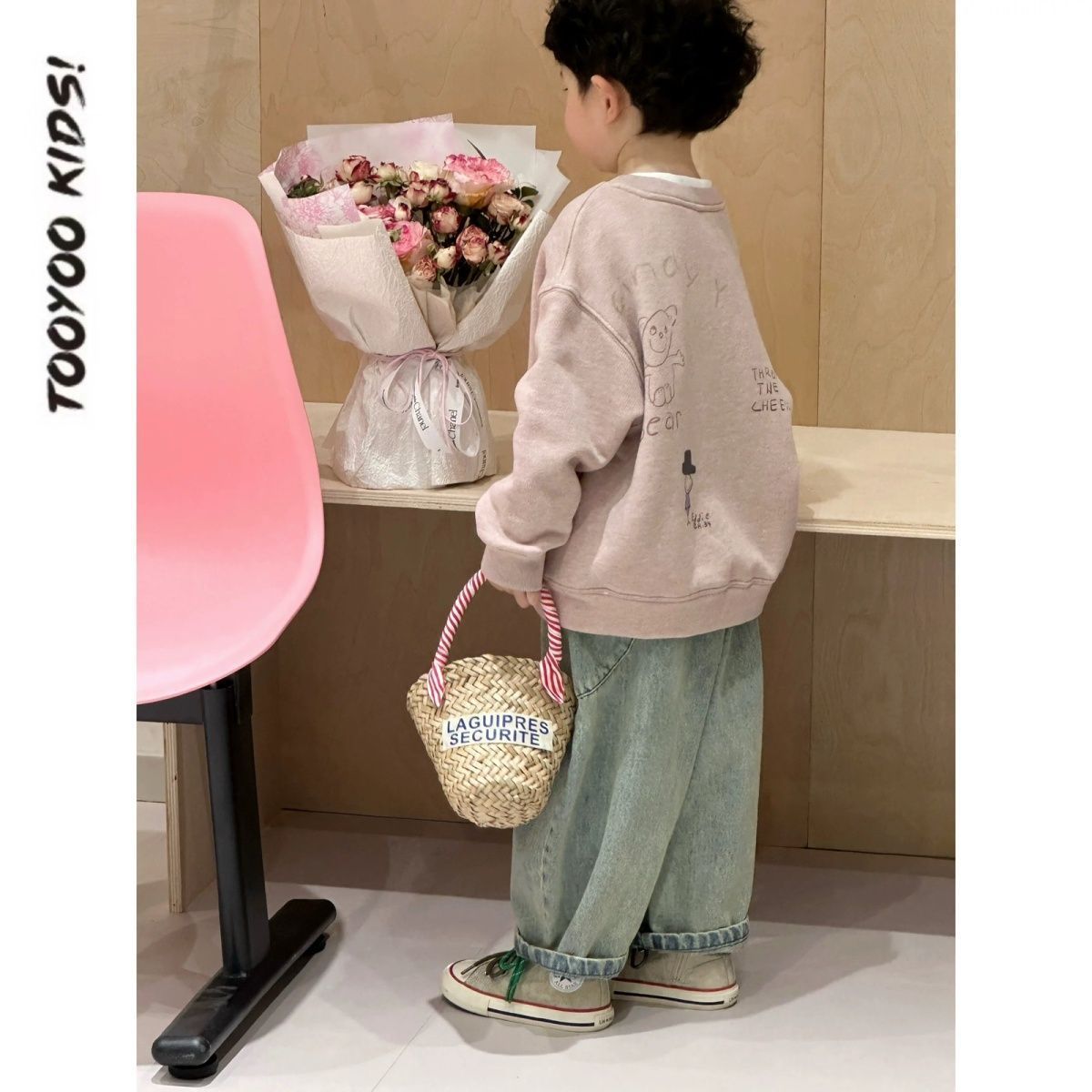 한국 스타일 소년 운동복 2025 봄, 가을 새로운 느슨한 만화 인쇄 다목적 긴팔 낙서 운동복 화이트 탑스토어 가기