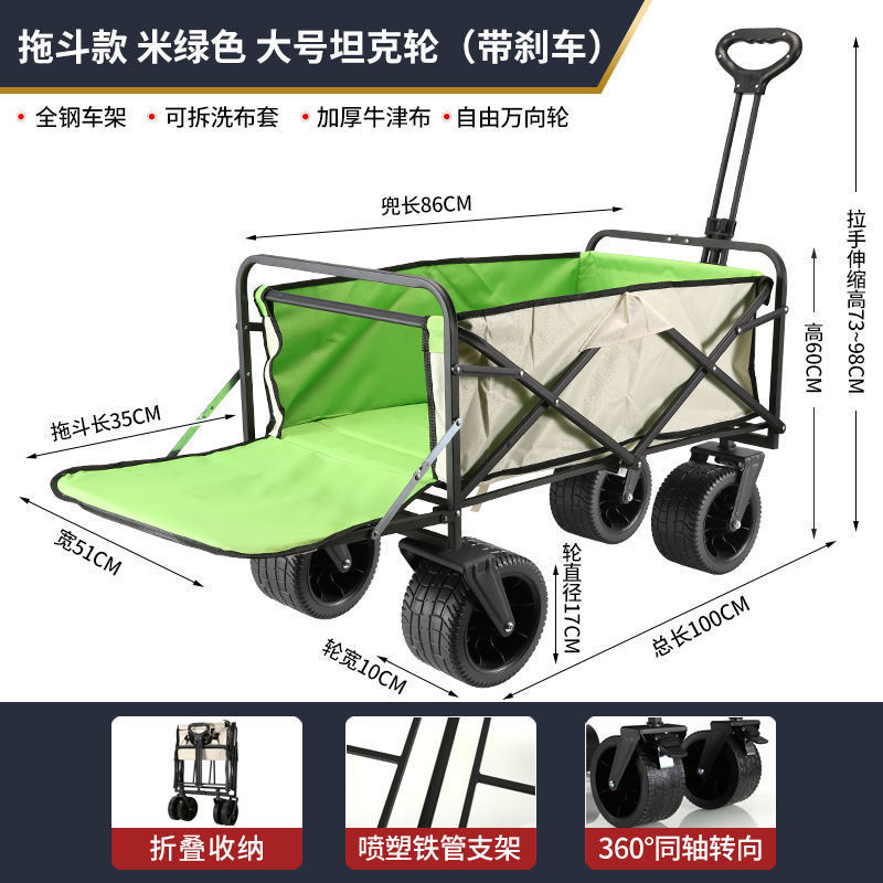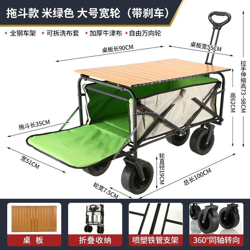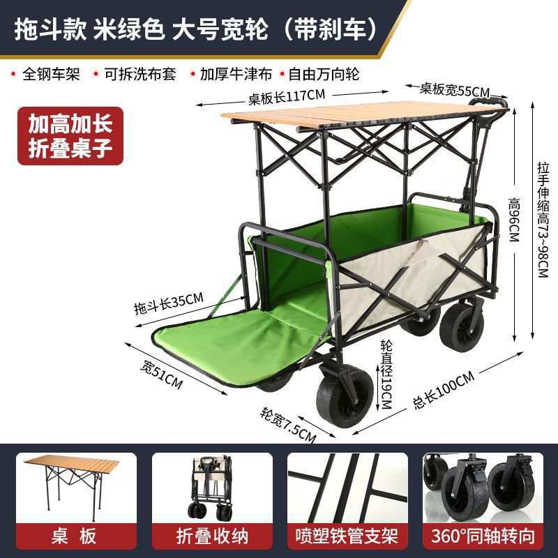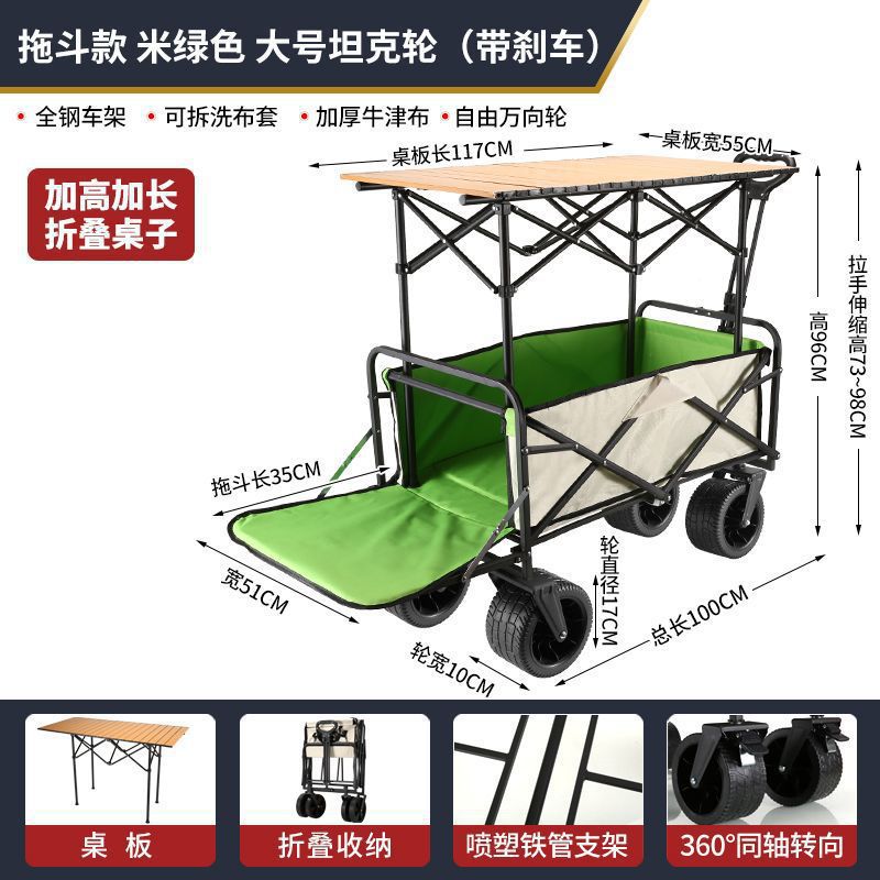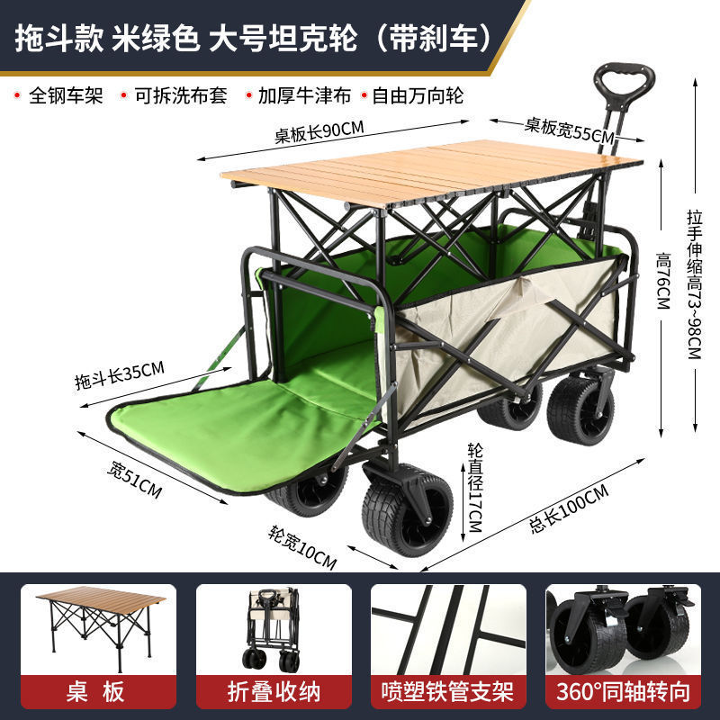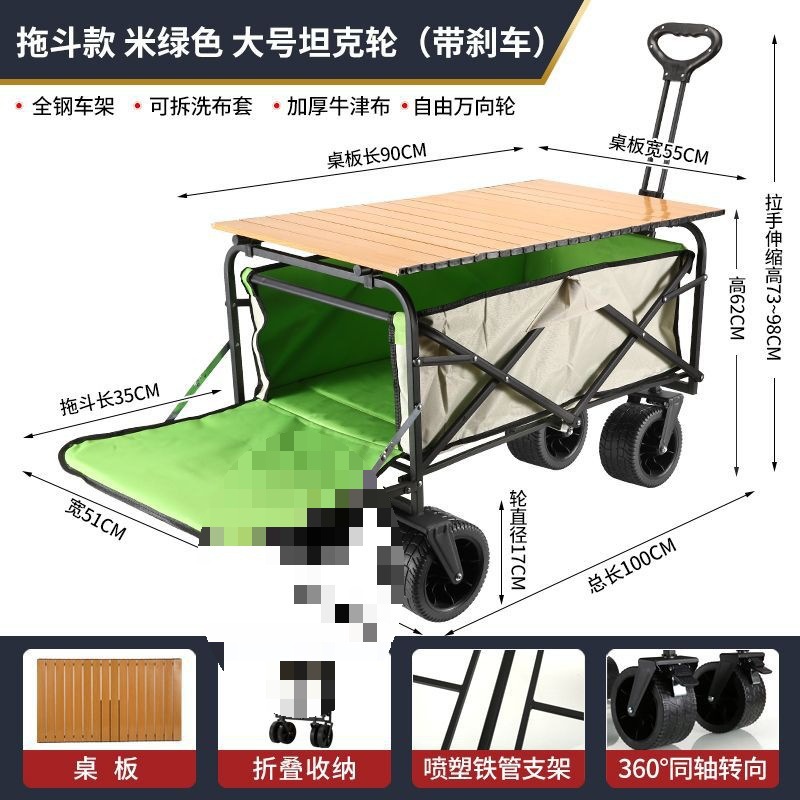 • 드래그 버킷 모델 - 카드 그린/탱크 10inch 더블 브레이크 유니버설 휠 - 스톨 접이식 테이블 + 실외