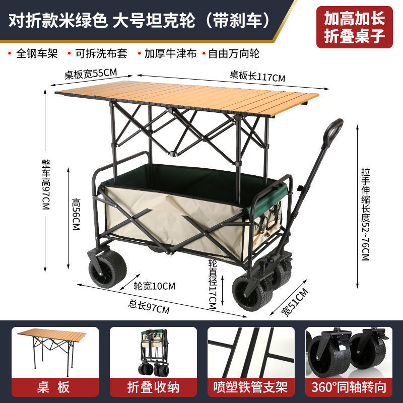 • [상위 구성] 카키/ 10inch 탱크 더블 브레이크 유니버설 휠-야외 캠핑카/