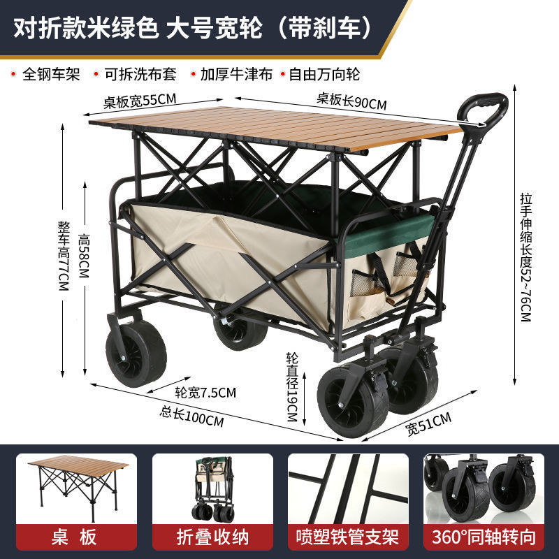 • 드래그 버킷 모델 - 카드 그린/오프로드 8inch 더블 브레이크 유니버설 휠 - 스톨 접이식 테이블 + 실외