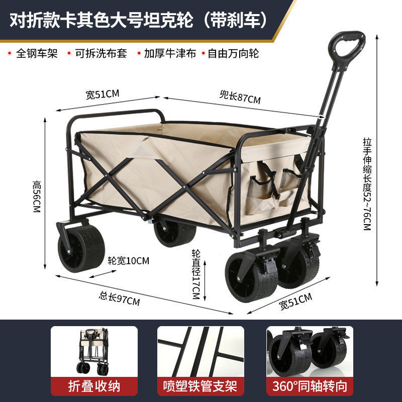 • [상위 구성] 카키/ 10inch 탱크 더블 브레이크 유니버설 휠 업그레이드/야외 캠핑