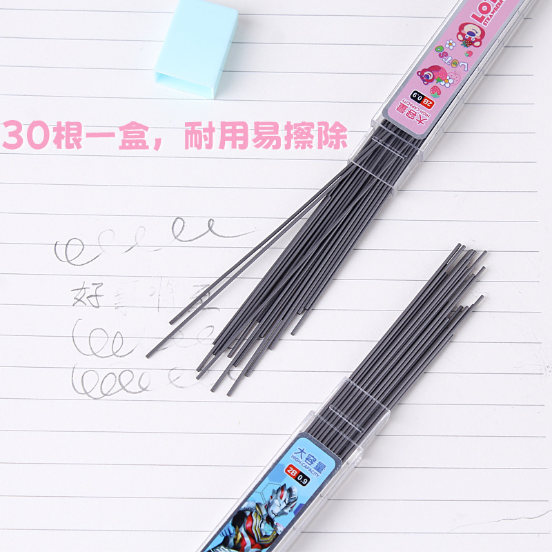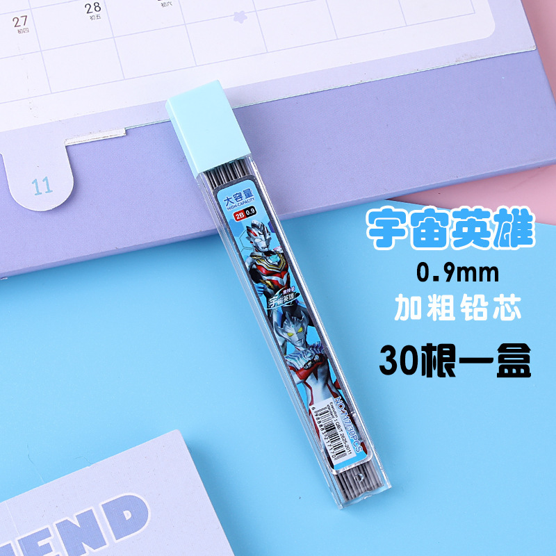 0.9mm 자동 연필심 교체 리필 딸기곰 울트라맨 학생 두꺼운 그림 스케치 연속 리드심
