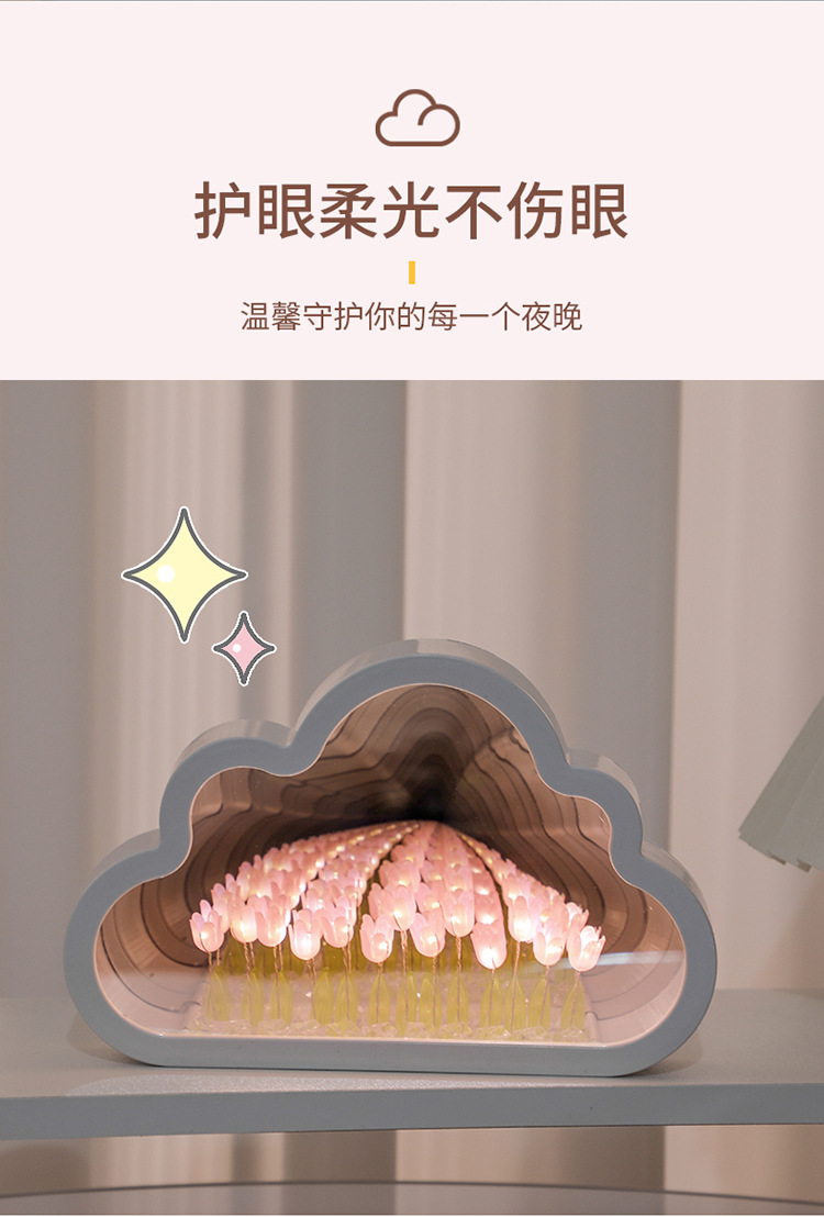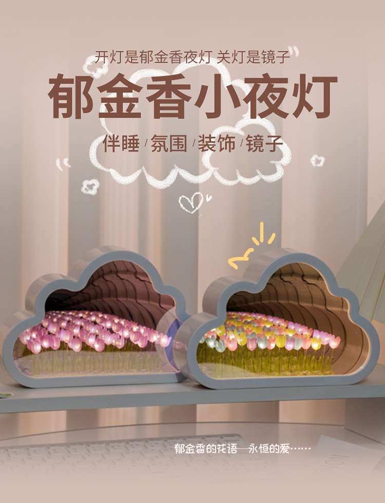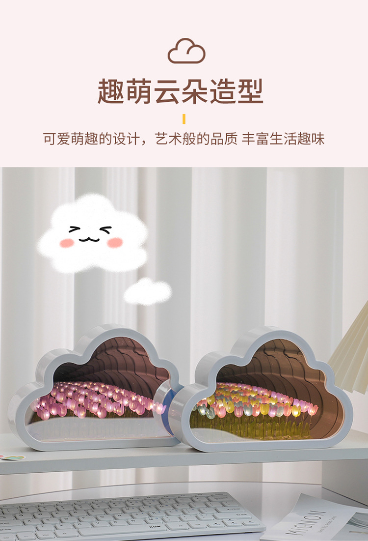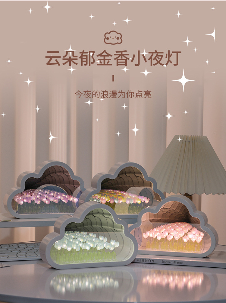 구름 튤립 거울 꽃바다 수제 DIY 야간등 분위기등 침실 탁상 장식품 휴일 분위기등스토어 가기