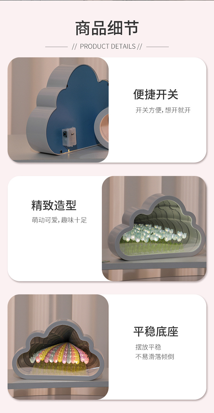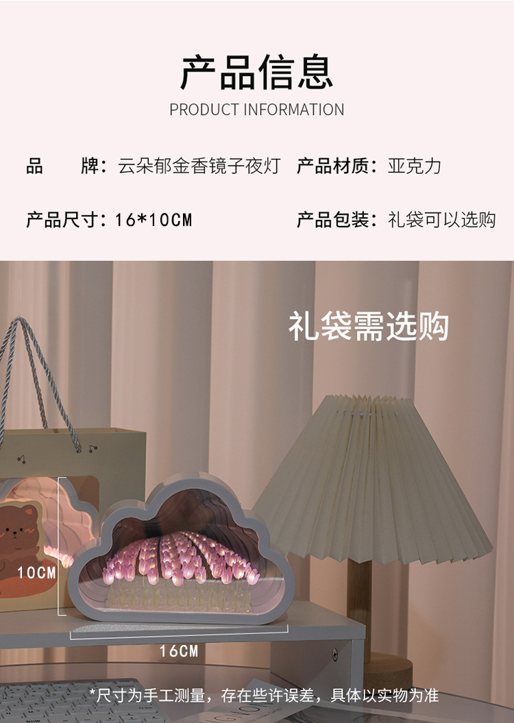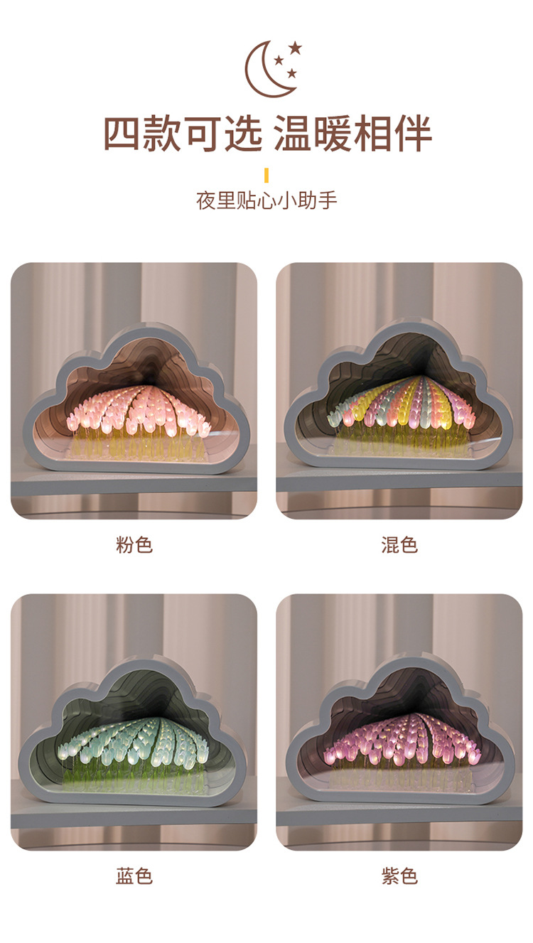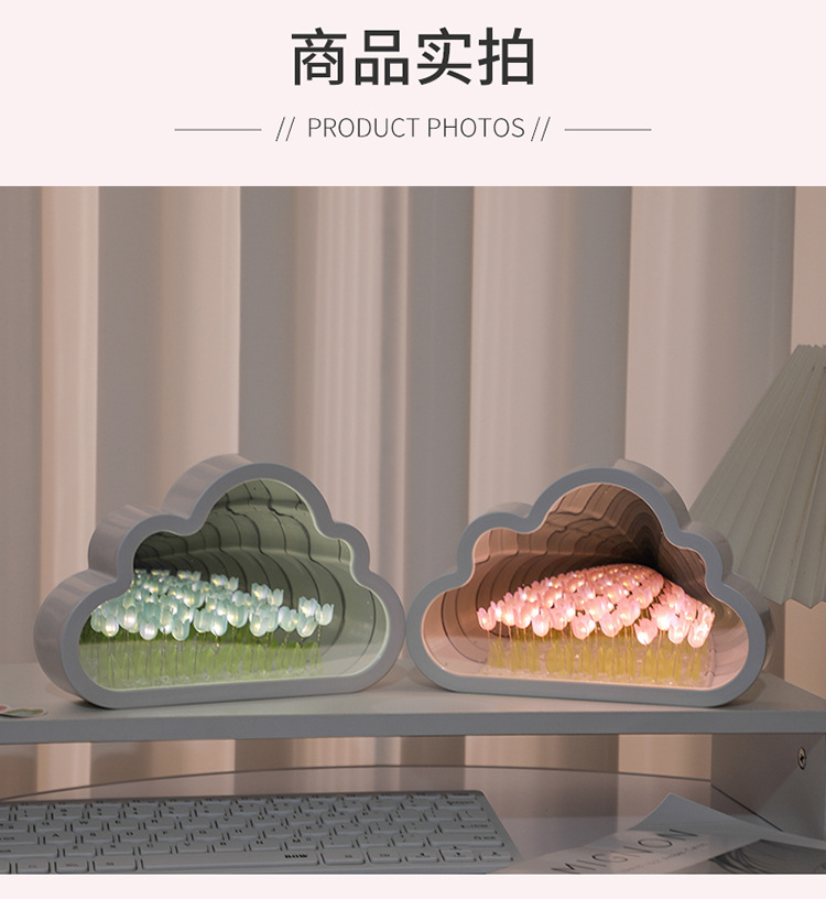 구름 튤립 거울 꽃바다 수제 DIY 야간등 분위기등 침실 탁상 장식품 휴일 분위기등스토어 가기