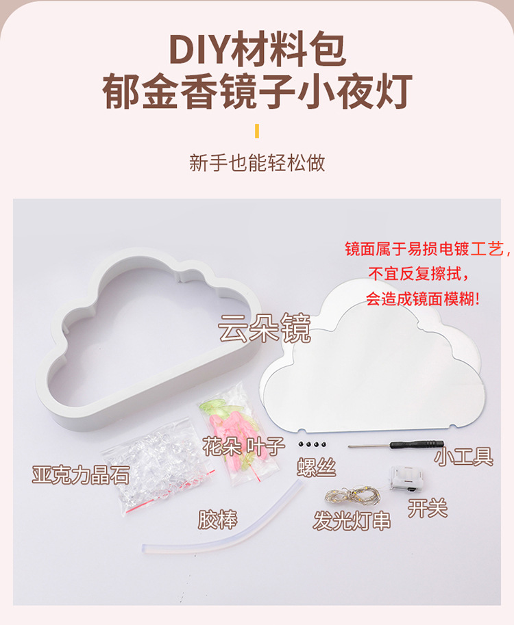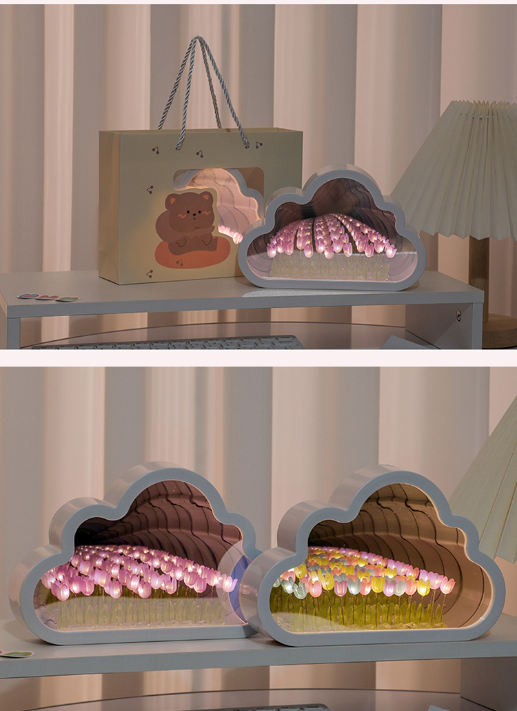 구름 튤립 거울 꽃바다 수제 DIY 야간등 분위기등 침실 탁상 장식품 휴일 분위기등