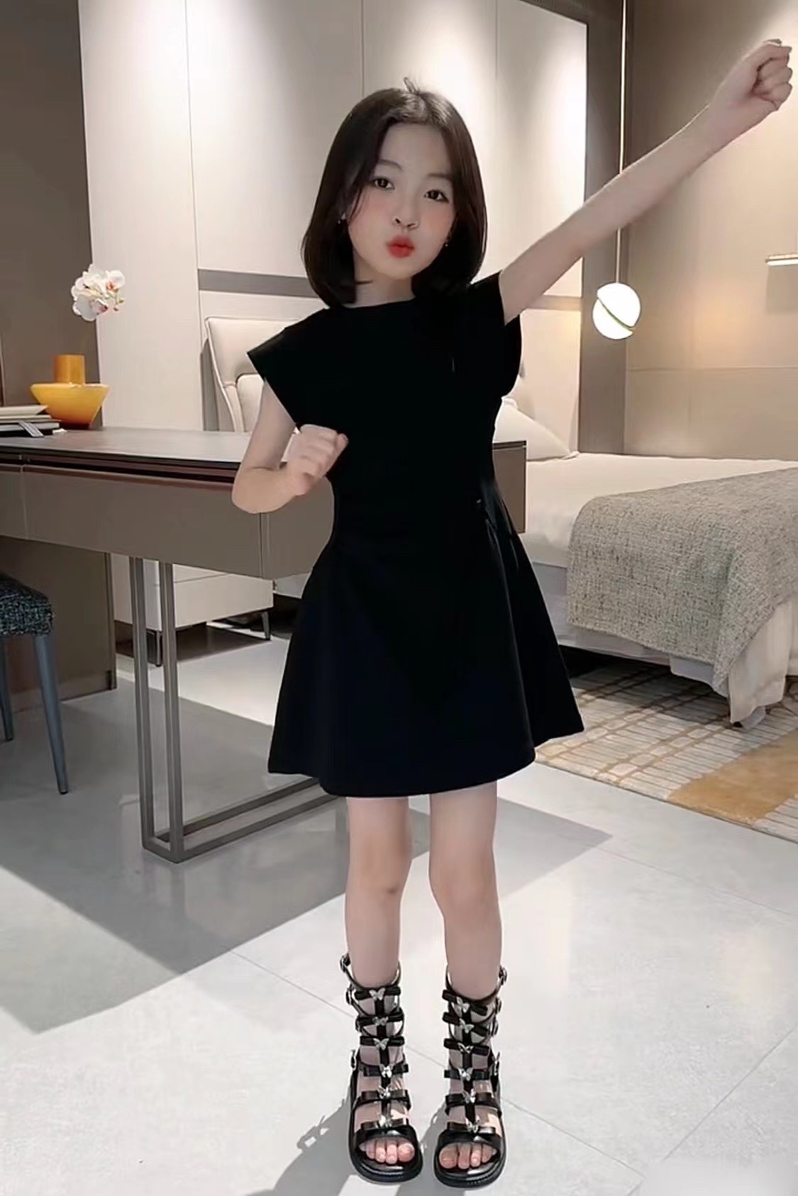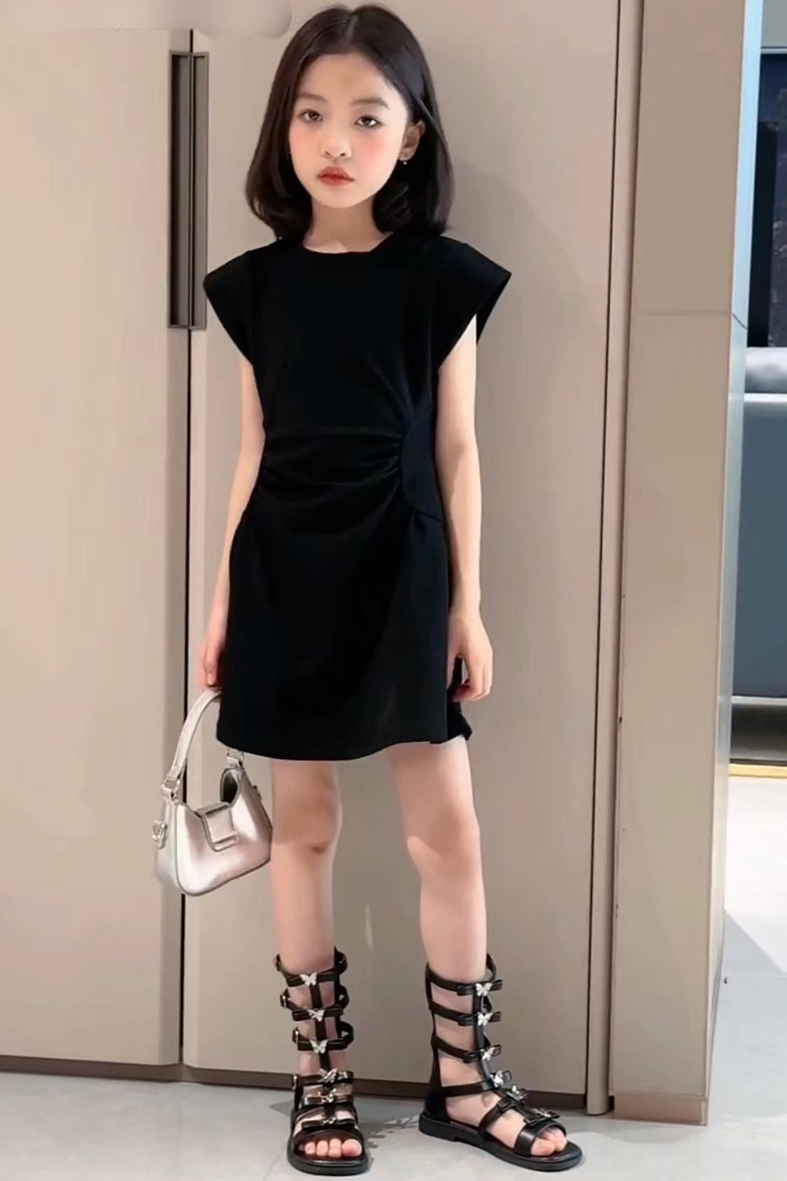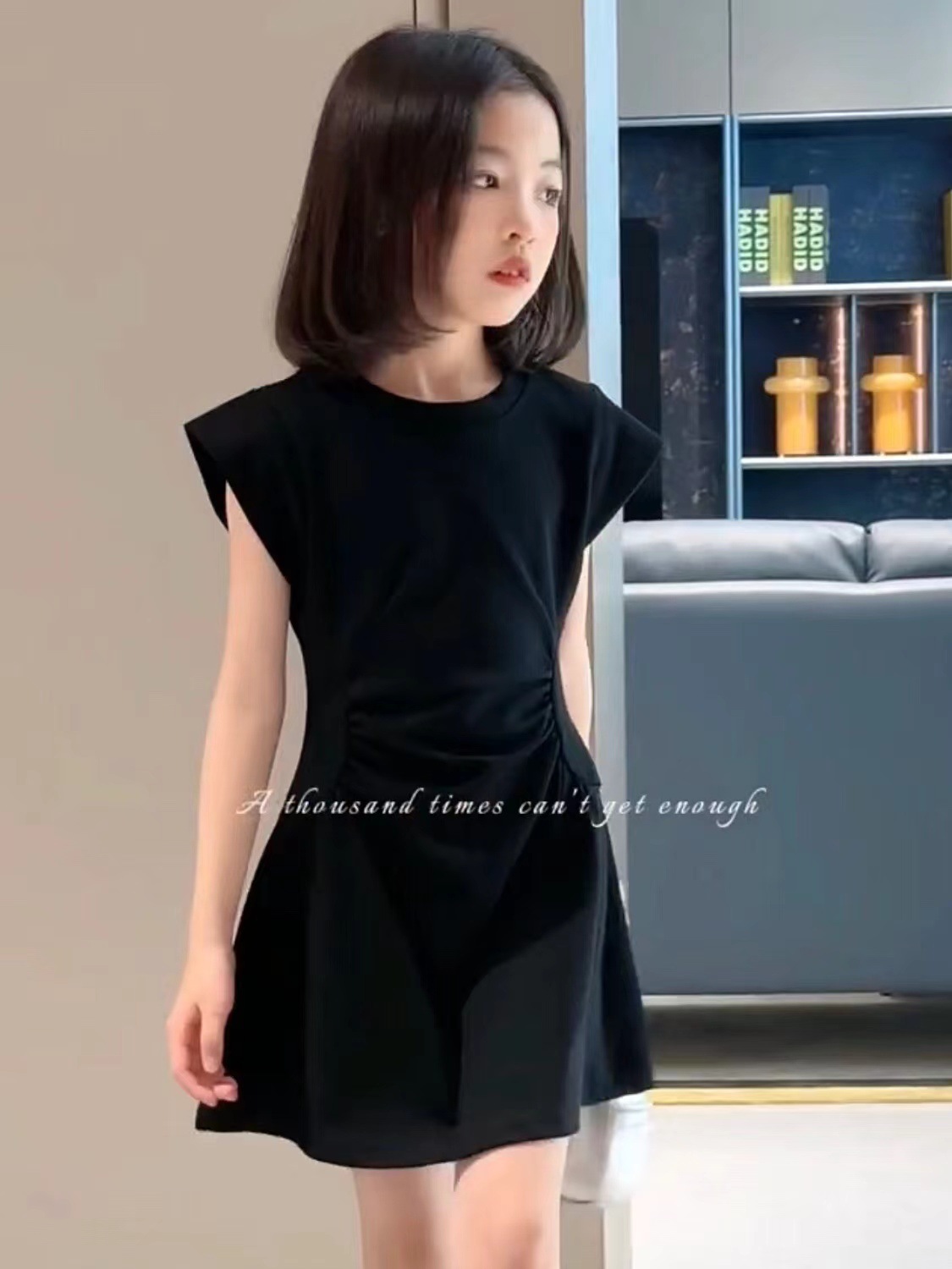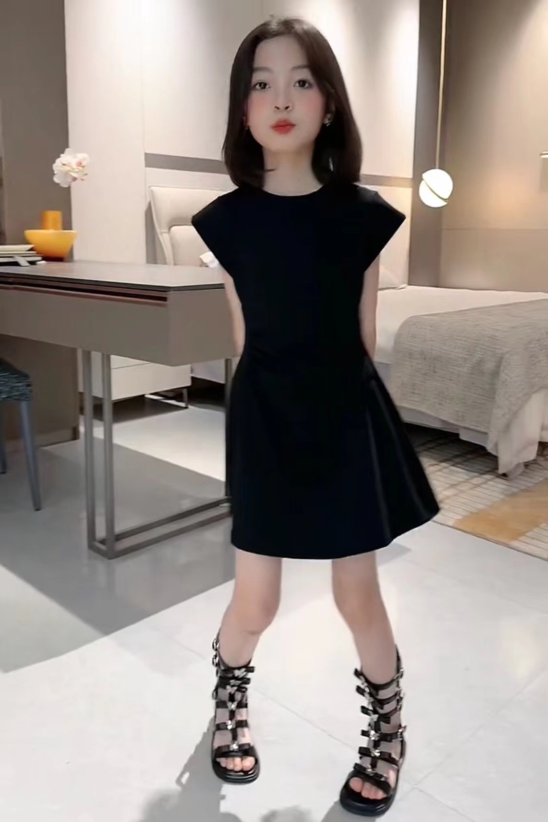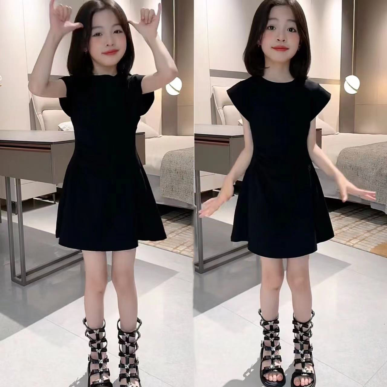 인터넷 축하 소녀 한국 스타일 유행 단색 큰 아이들을위한 주름 A-라인 스커트 여름 새로운 서양 스타일 민소매 원피스 트렌디스토어 가기