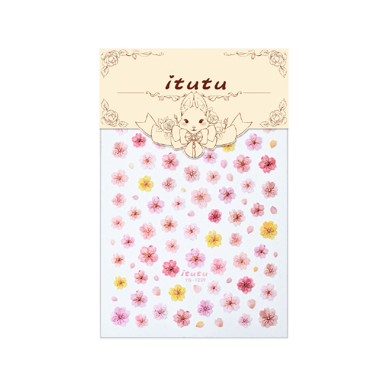 새로운 사이버 레드 네일 아트 시뮬레이션 컬러 벚꽃 말린 꽃 스티커 마이크로 릴리프 새로운 폭발 작은 꽃 네일 스티커스토어 가기