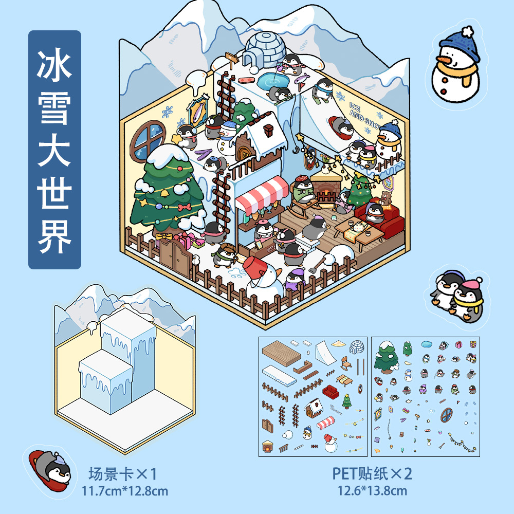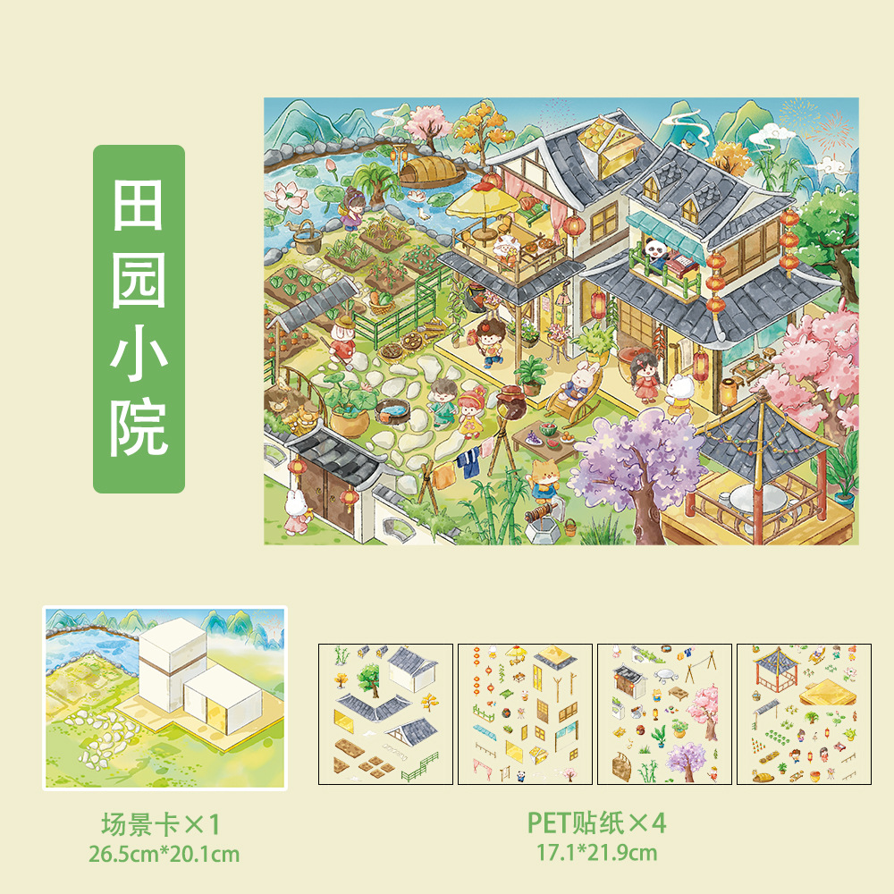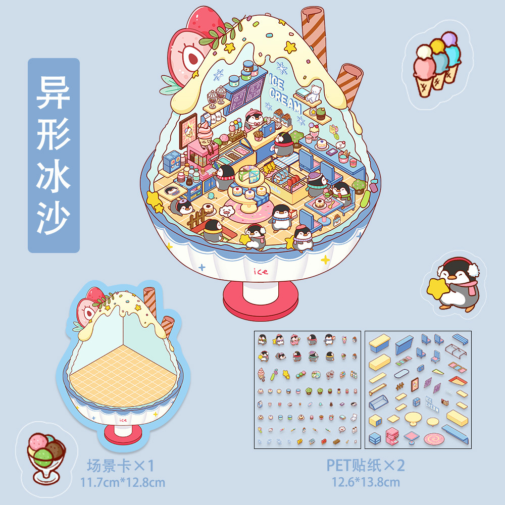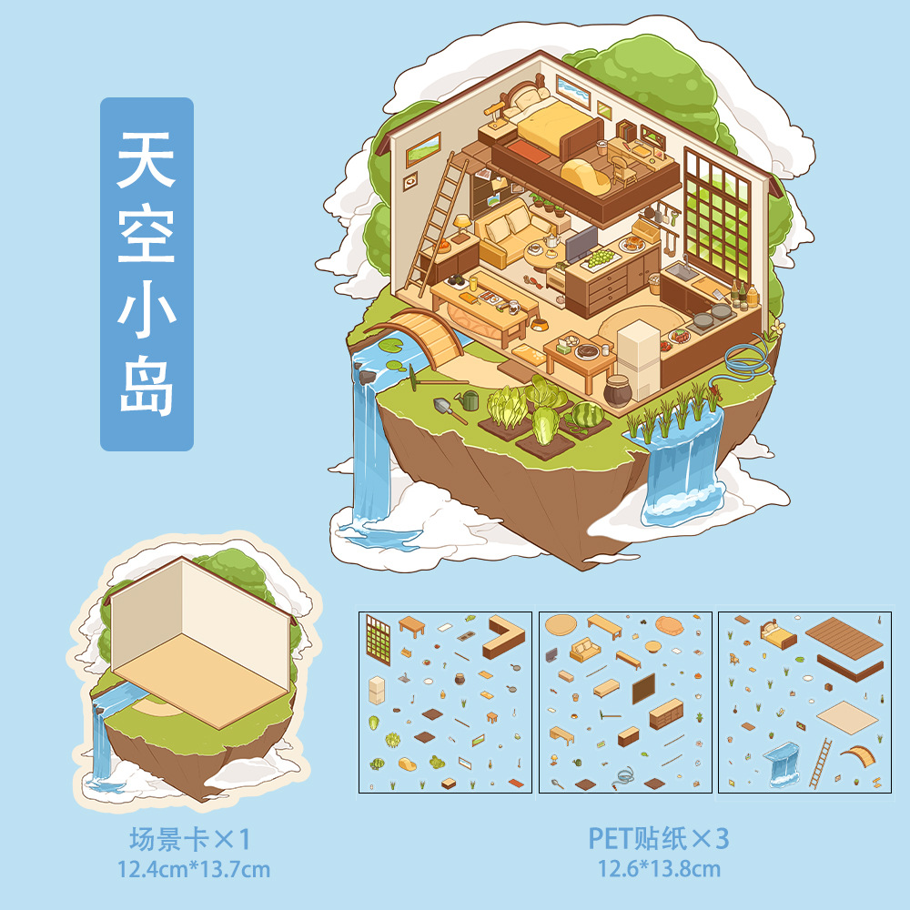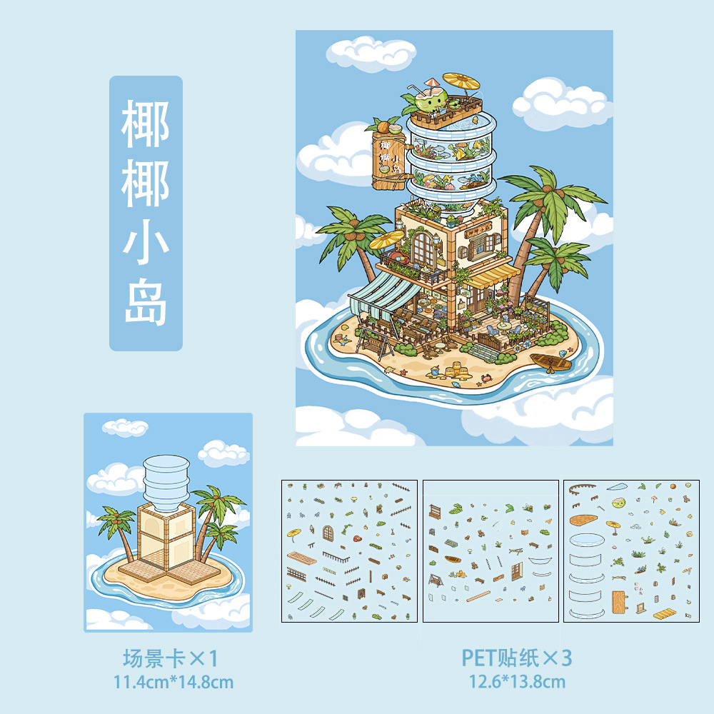 마이크로 잉크 다양한 3D 3 차원 조경 스티커 어린이 만화 감압 DIY 스태킹 소형 장면 손 계정 스티커