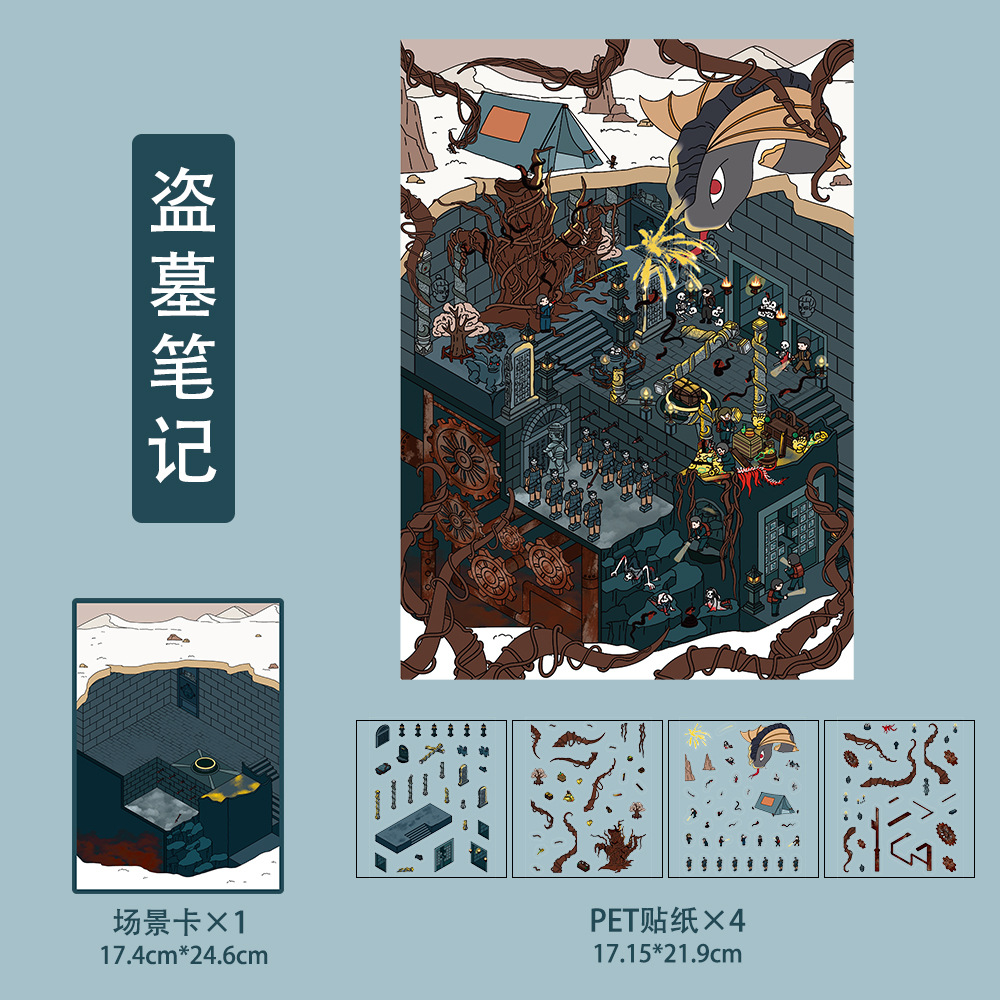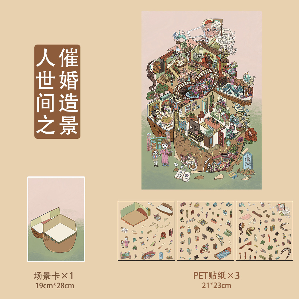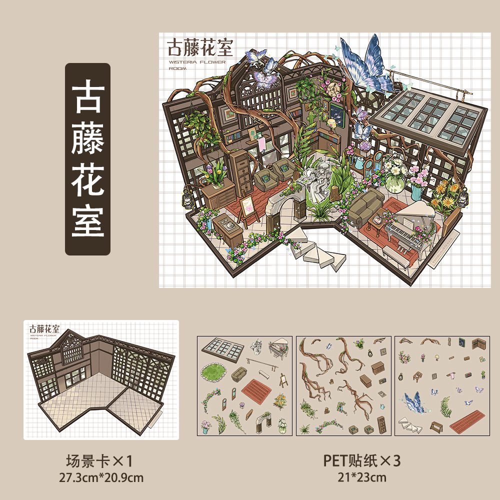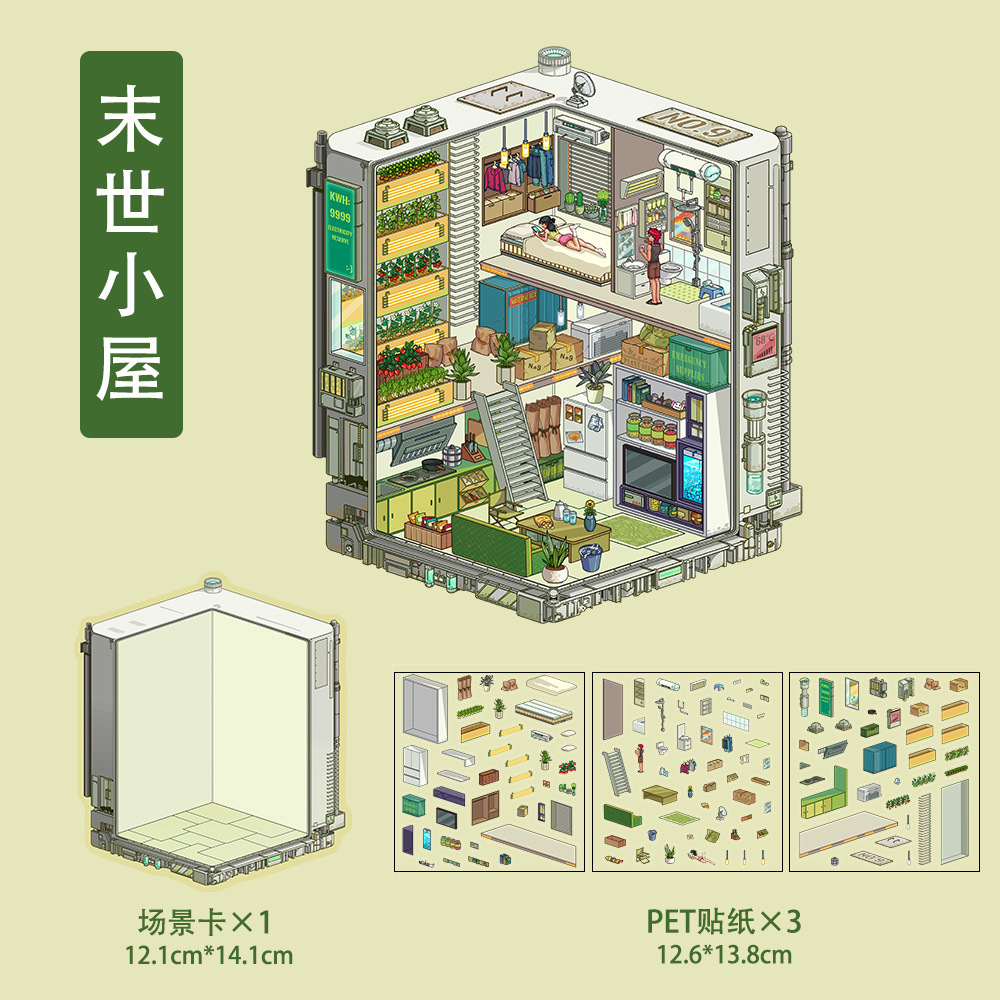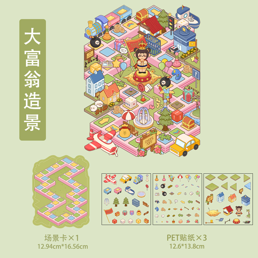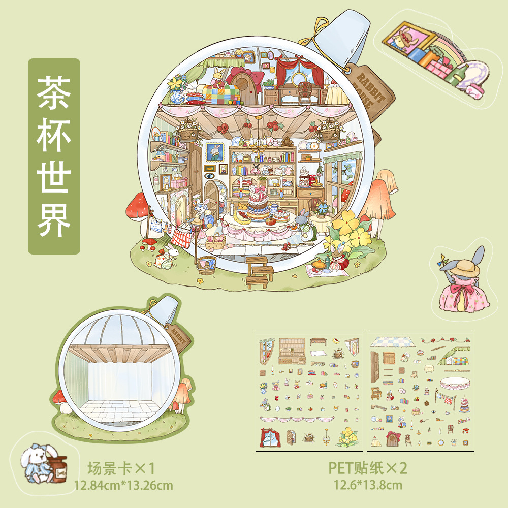 마이크로 잉크 다양한 3D 3 차원 조경 스티커 어린이 만화 감압 DIY 스태킹 소형 장면 손 계정 스티커