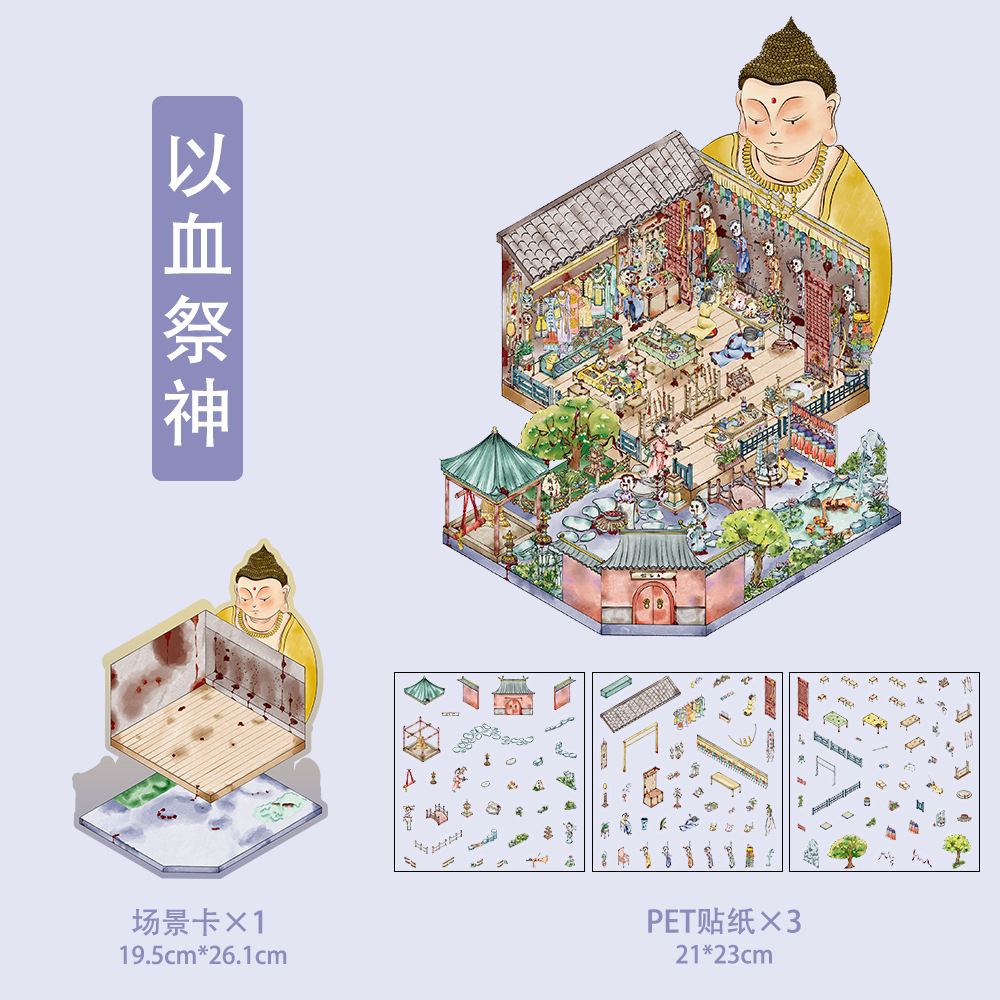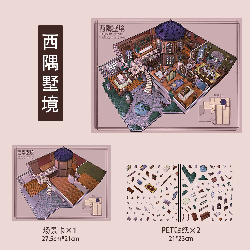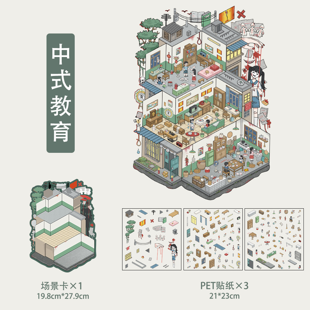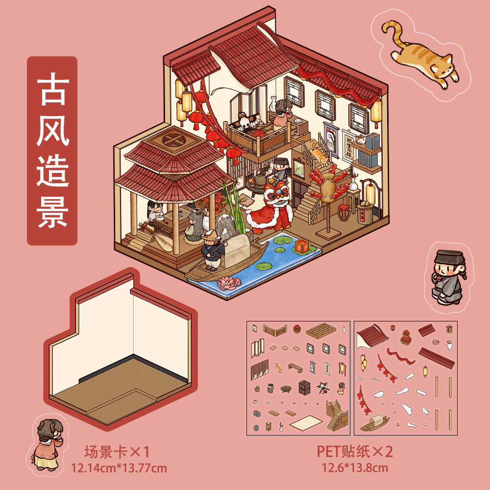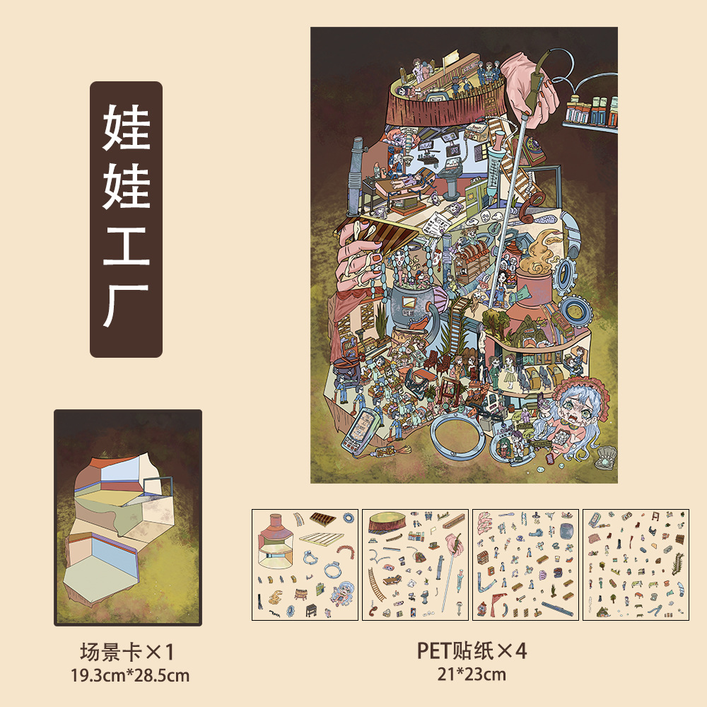 마이크로 잉크 다양한 3D 3 차원 조경 스티커 어린이 만화 감압 DIY 스태킹 소형 장면 손 계정 스티커