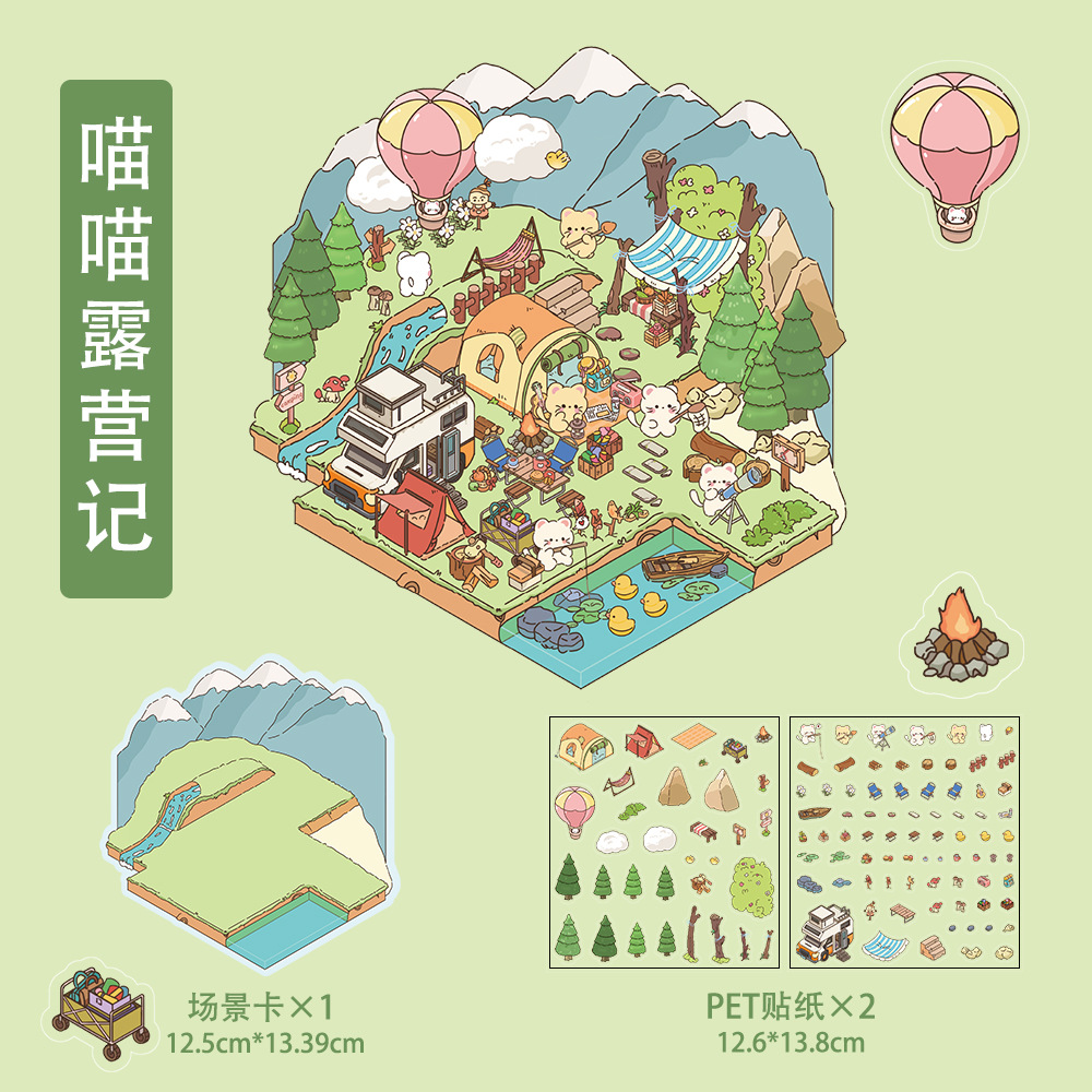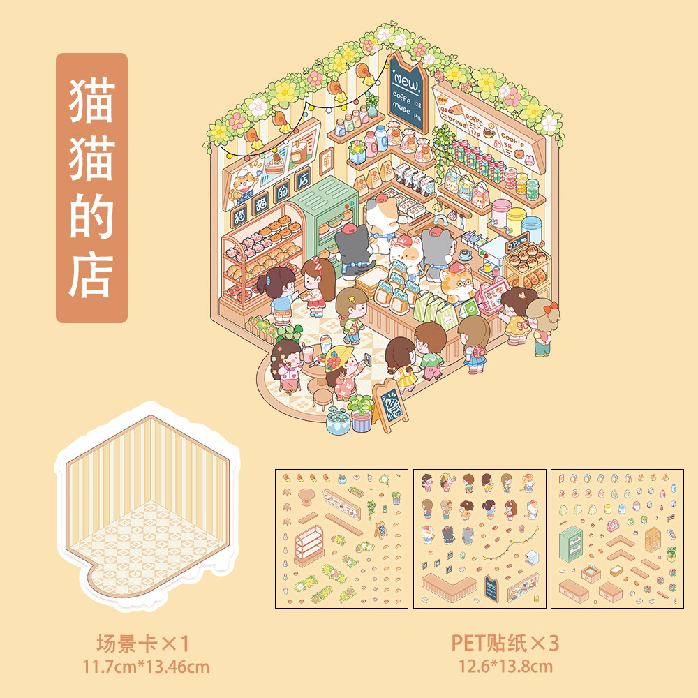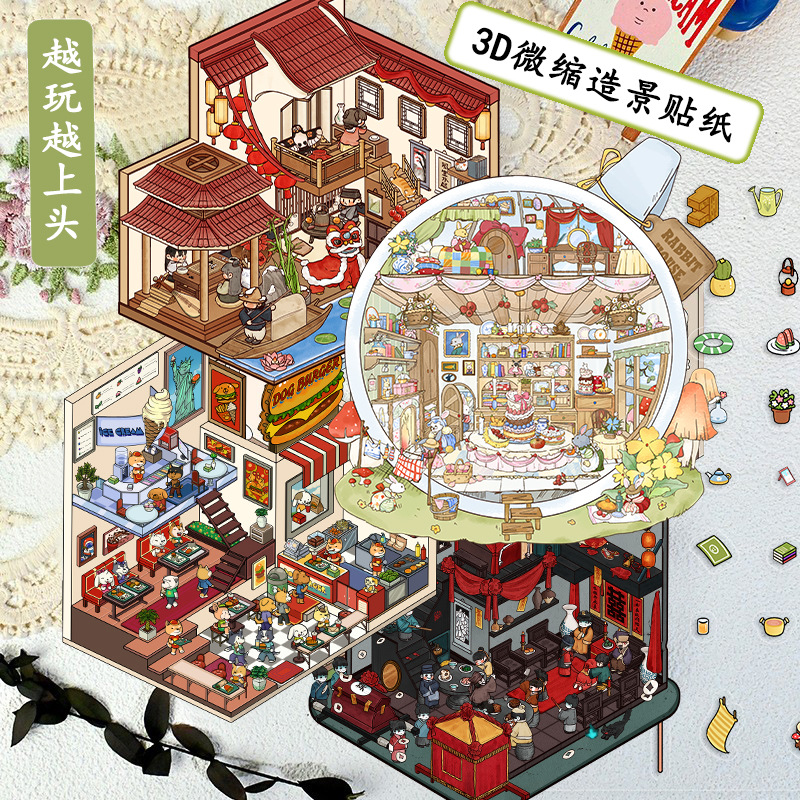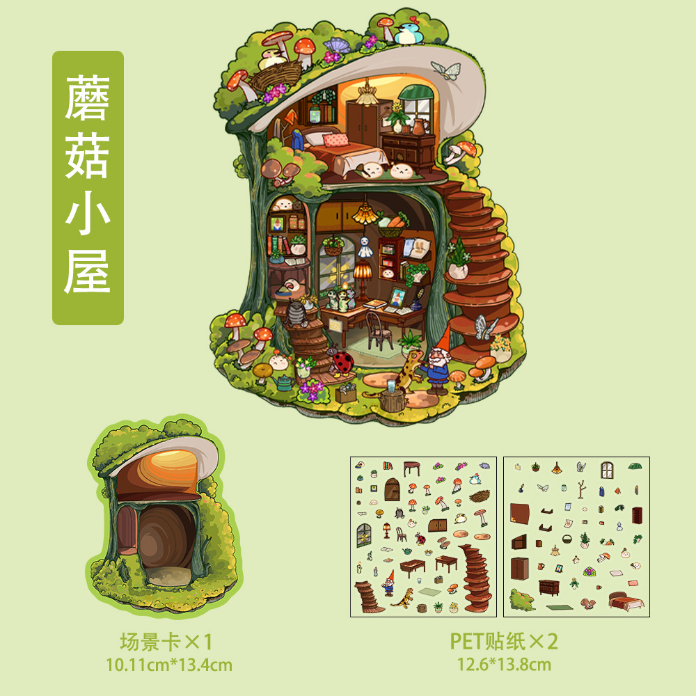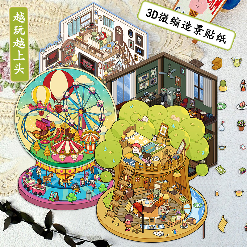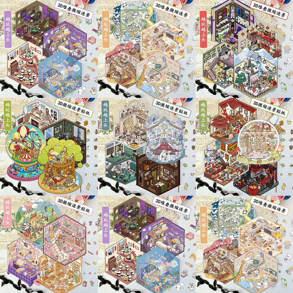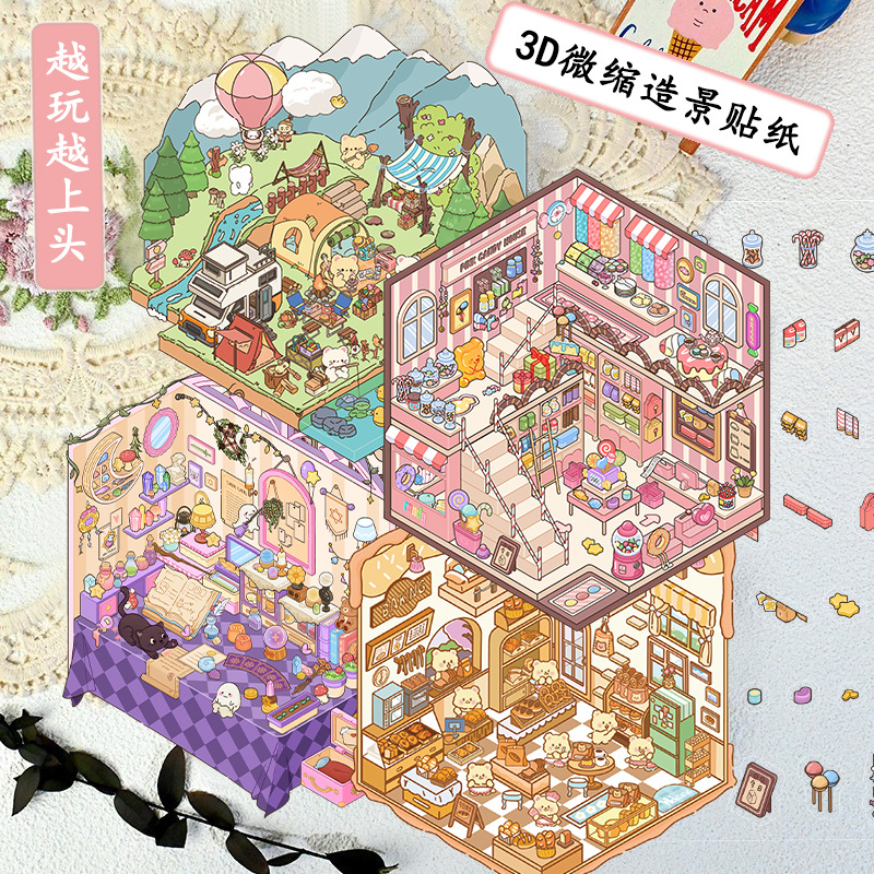 마이크로 잉크 다양한 3D 3 차원 조경 스티커 어린이 만화 감압 DIY 스태킹 소형 장면 손 계정 스티커스토어 가기