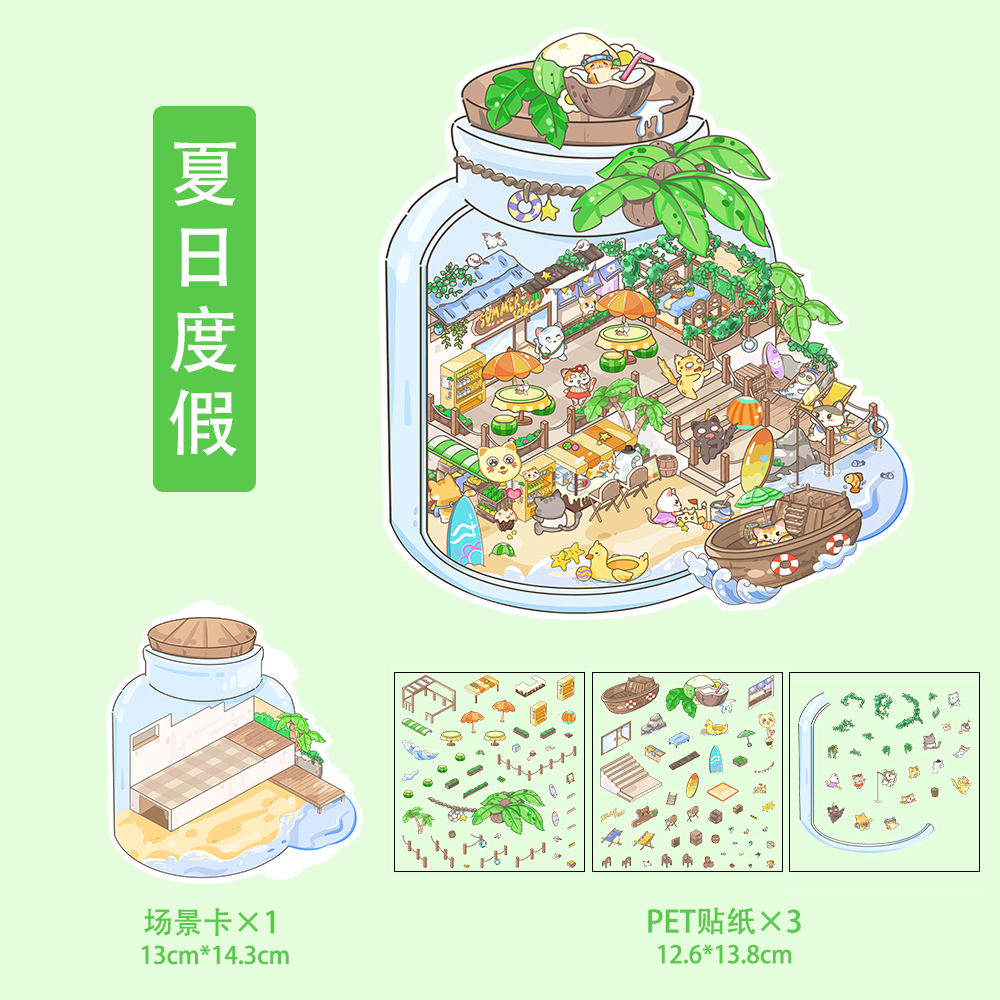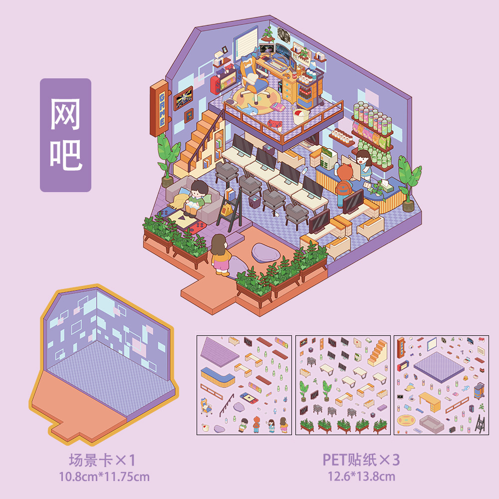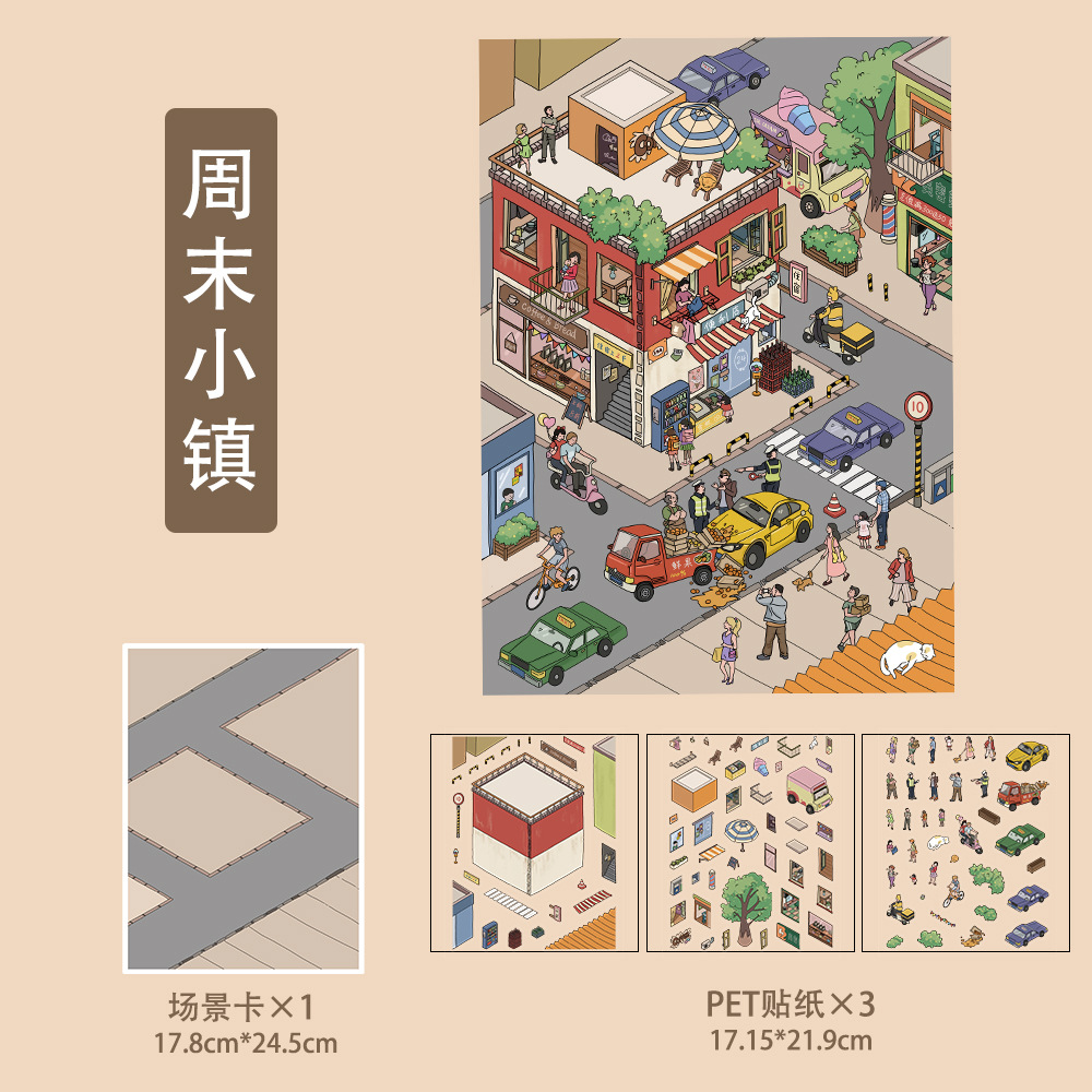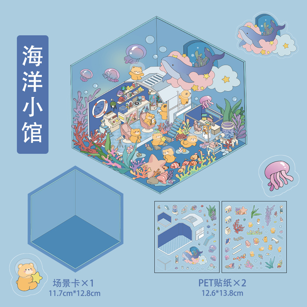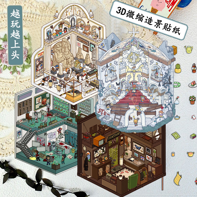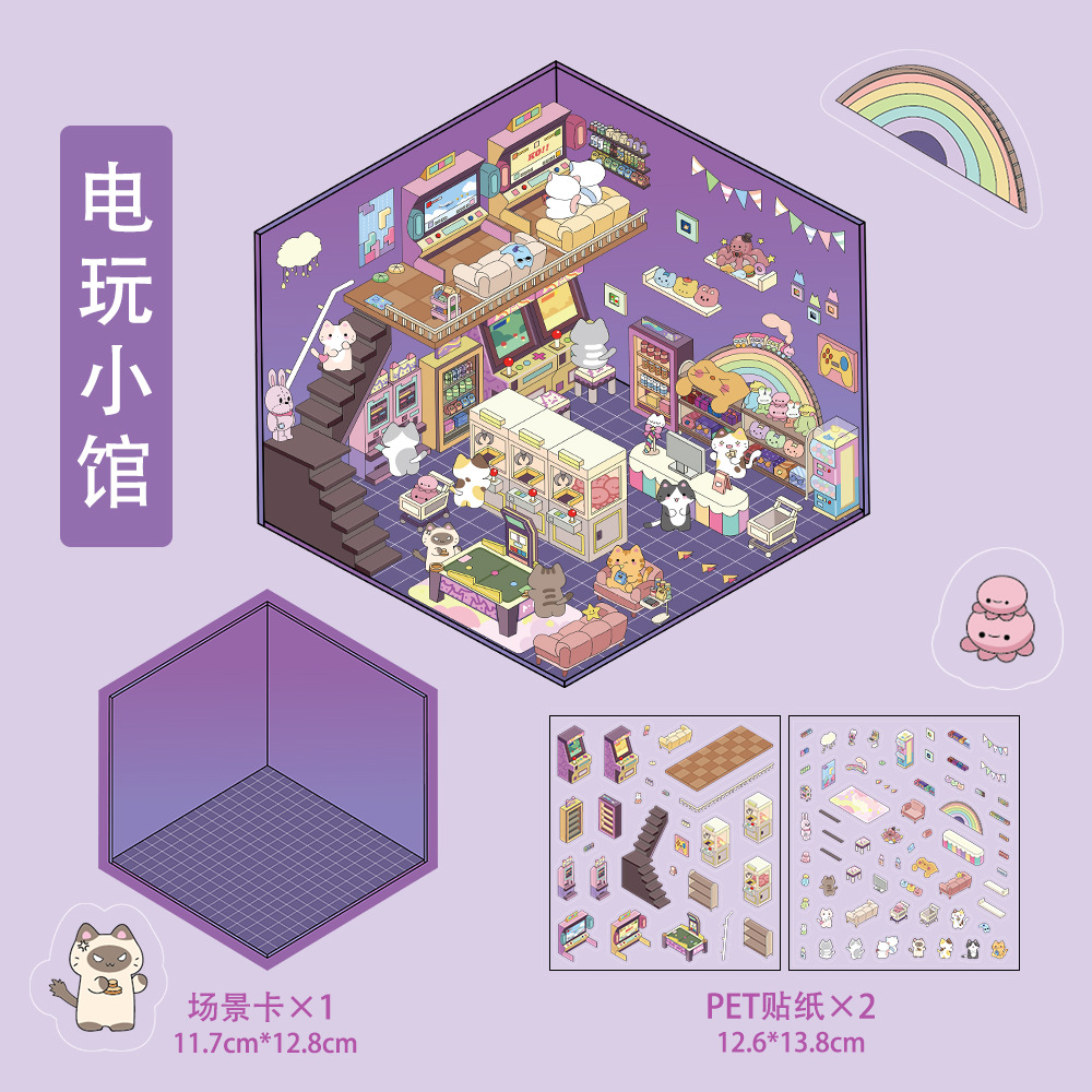 마이크로 잉크 다양한 3D 3 차원 조경 스티커 어린이 만화 감압 DIY 스태킹 소형 장면 손 계정 스티커스토어 가기