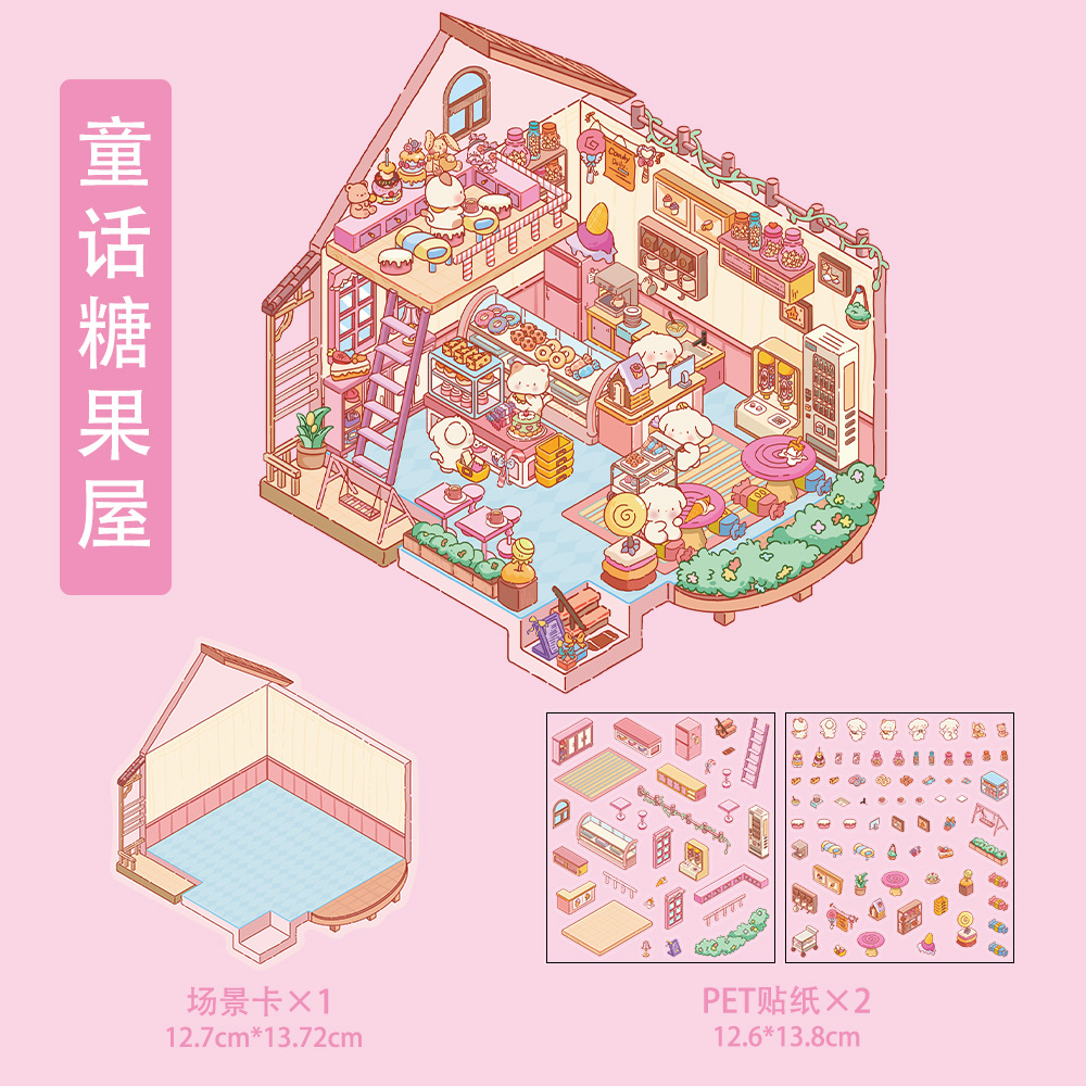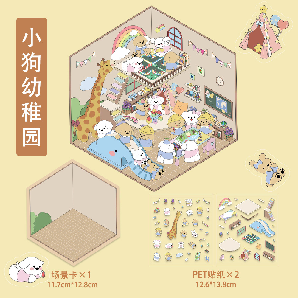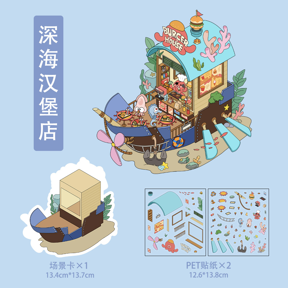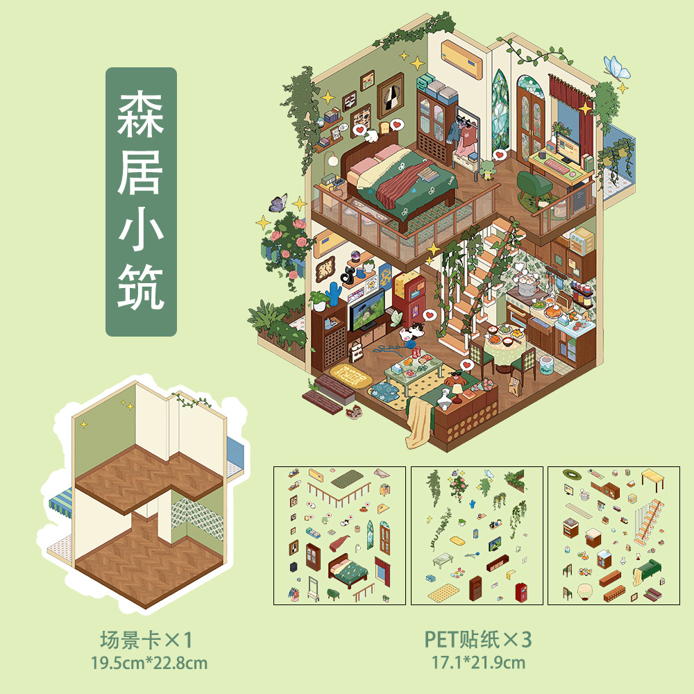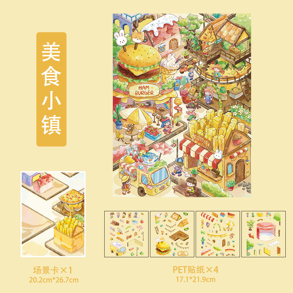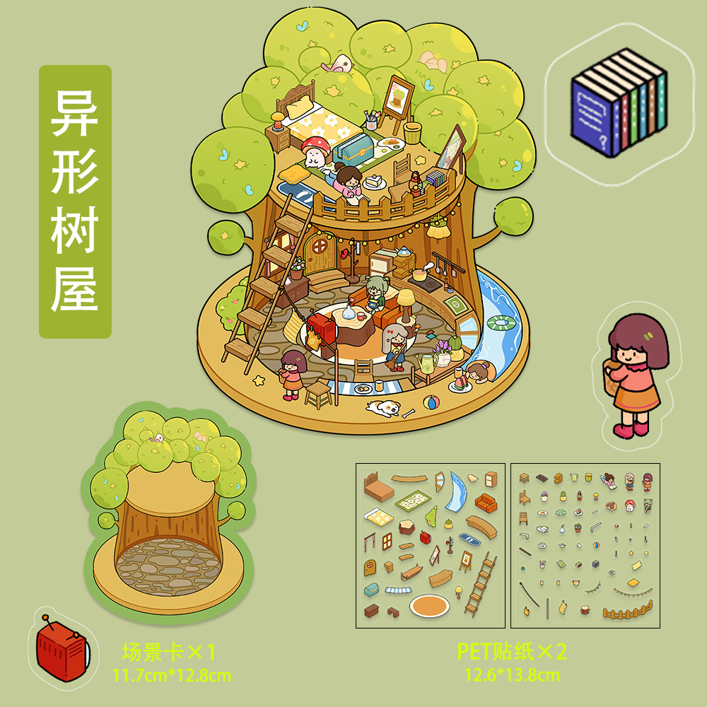 마이크로 잉크 다양한 3D 3 차원 조경 스티커 어린이 만화 감압 DIY 스태킹 소형 장면 손 계정 스티커스토어 가기