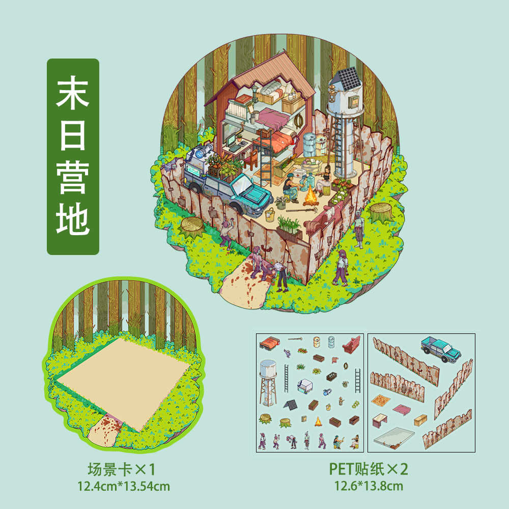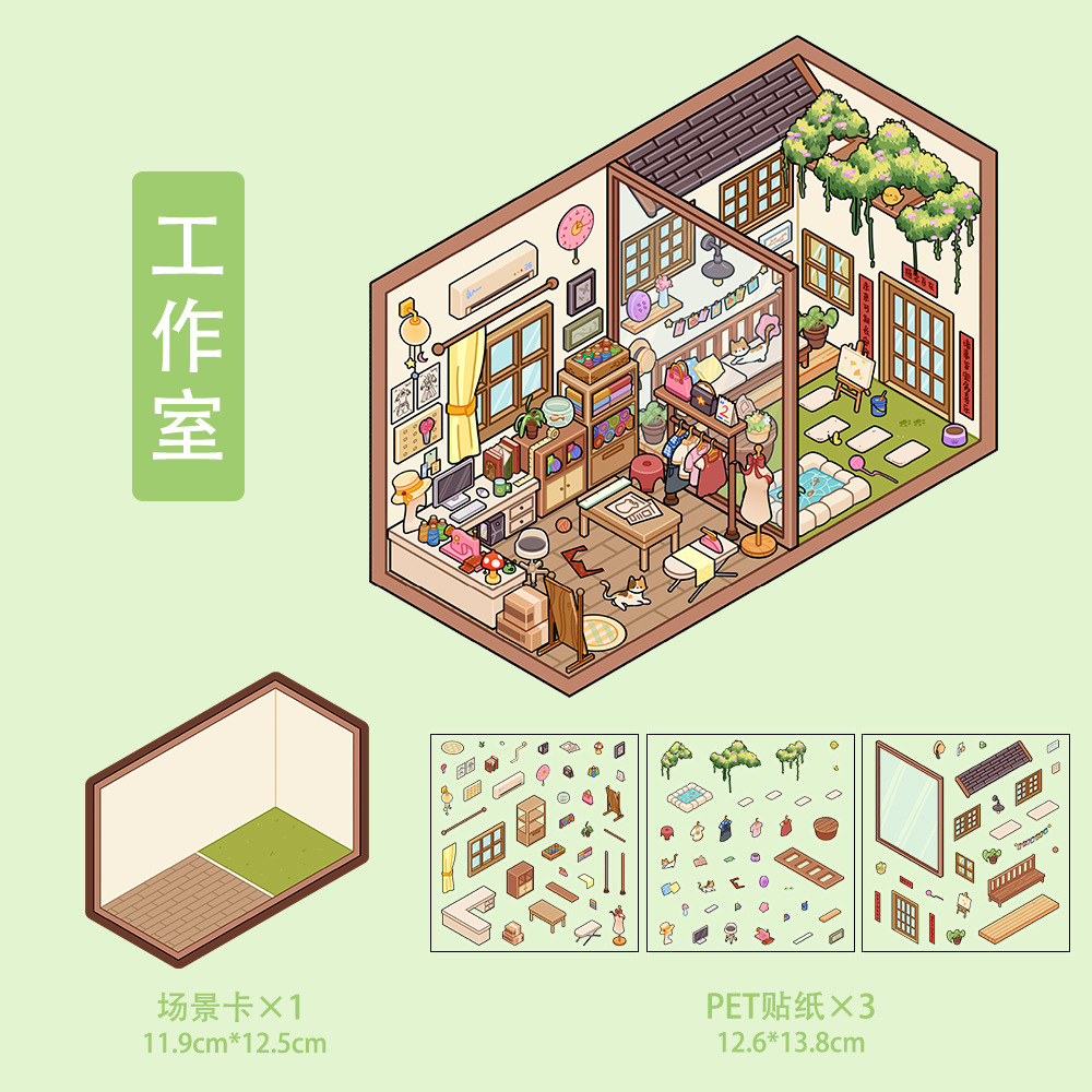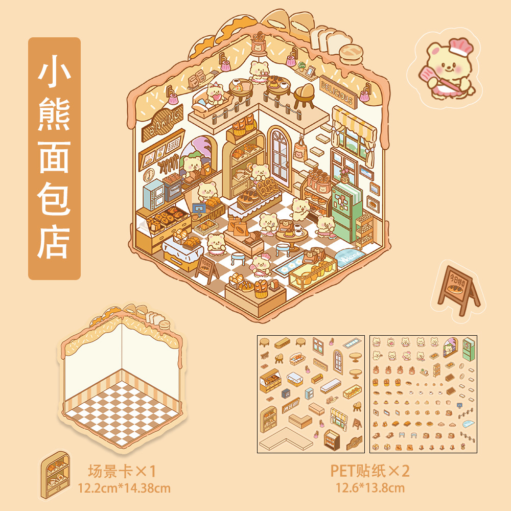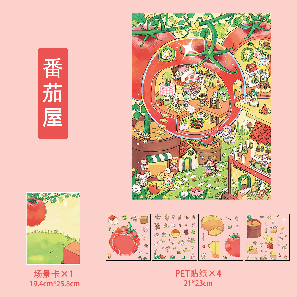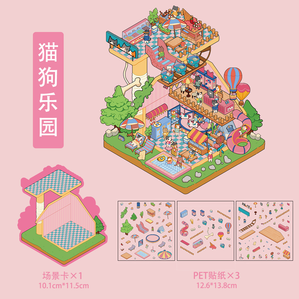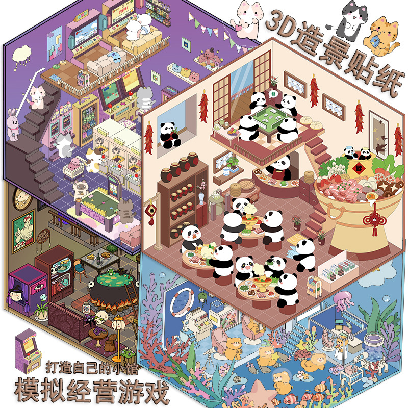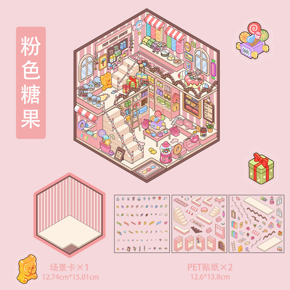 마이크로 잉크 다양한 3D 3 차원 조경 스티커 어린이 만화 감압 DIY 스태킹 소형 장면 손 계정 스티커스토어 가기