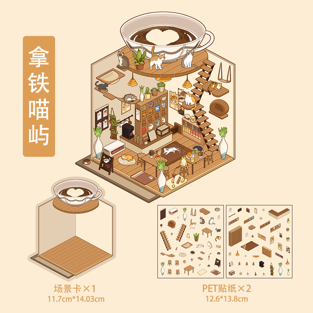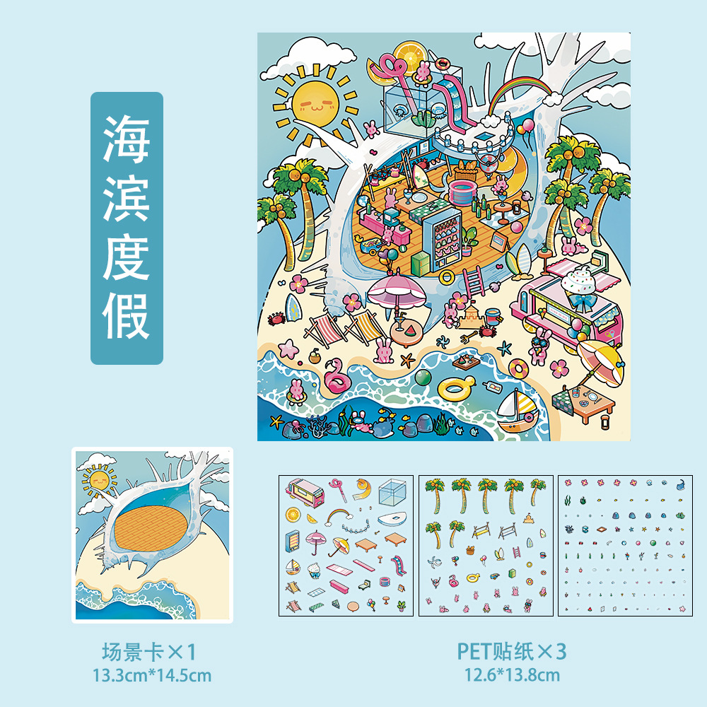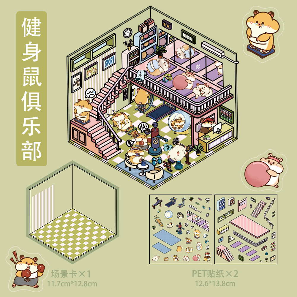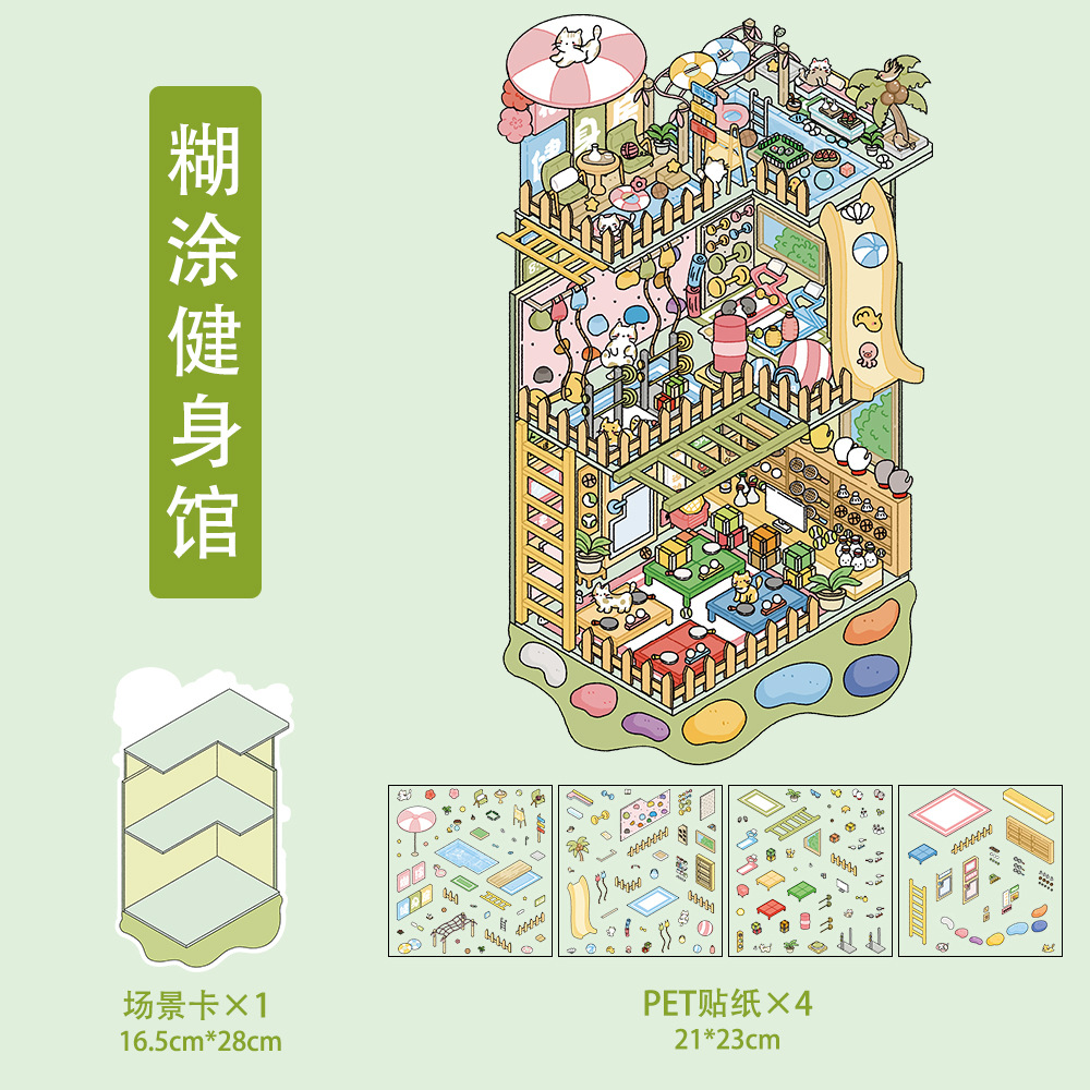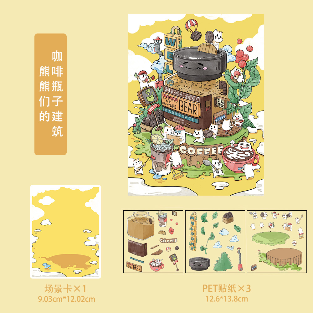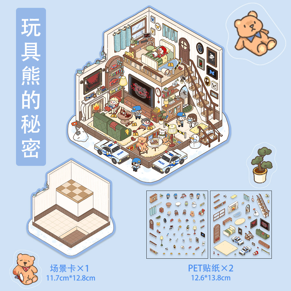 마이크로 잉크 다양한 3D 3 차원 조경 스티커 어린이 만화 감압 DIY 스태킹 소형 장면 손 계정 스티커스토어 가기