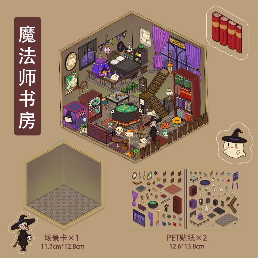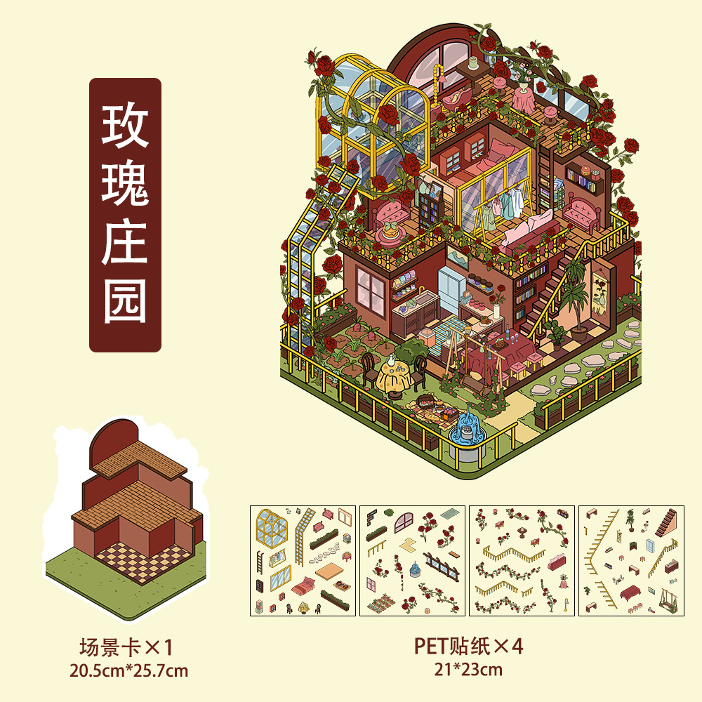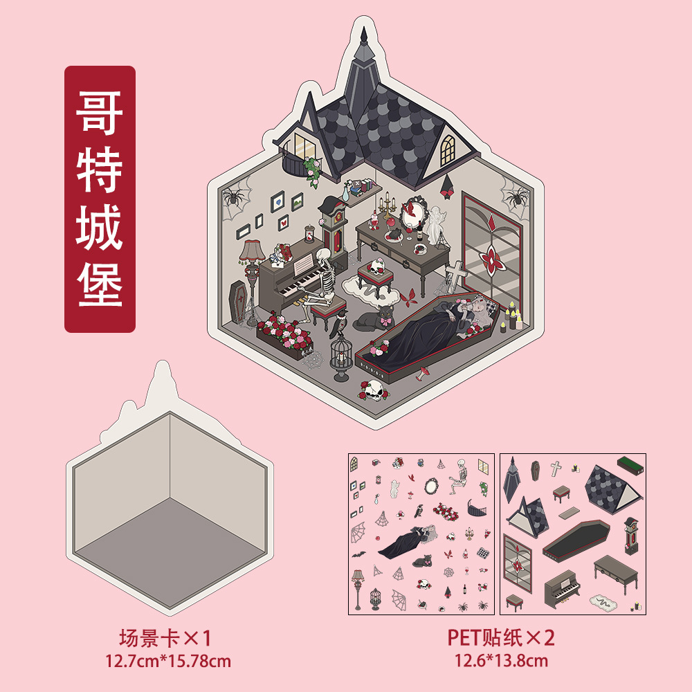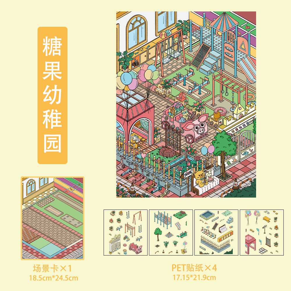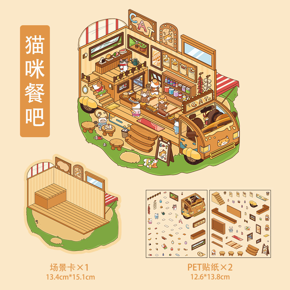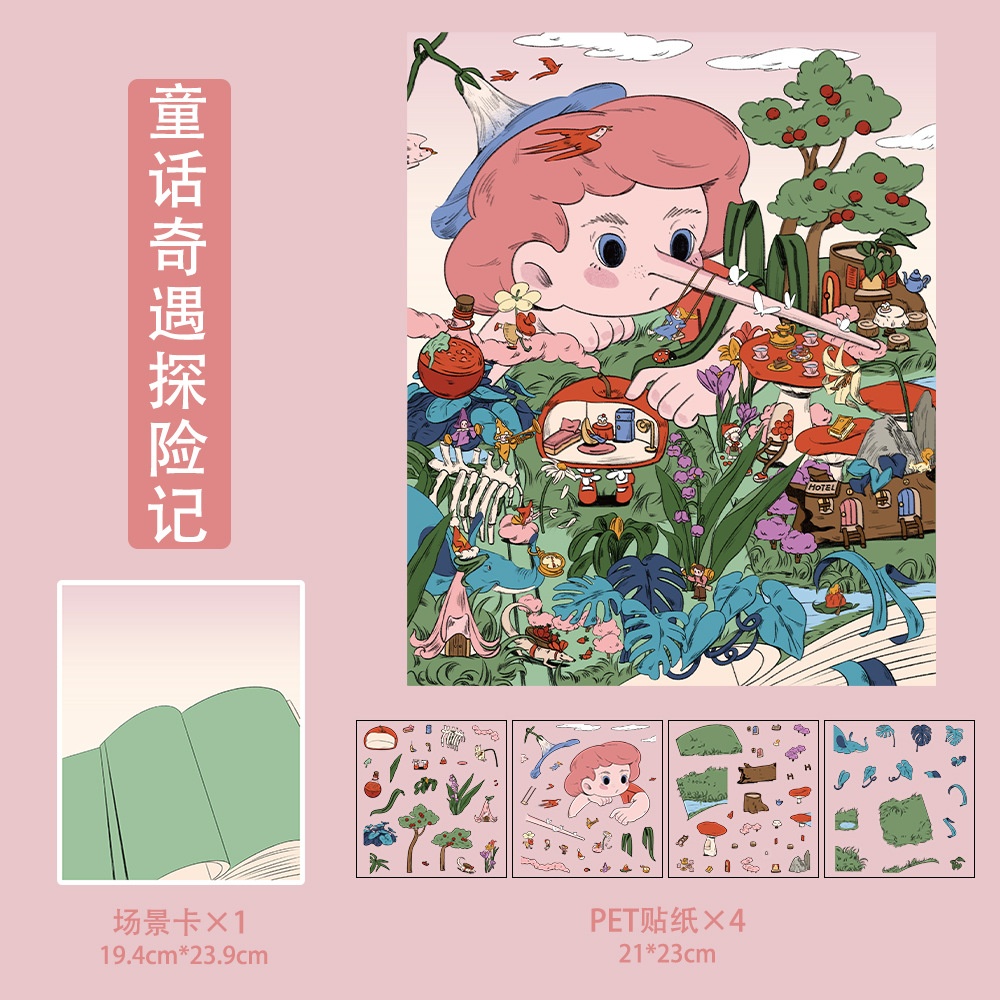 마이크로 잉크 다양한 3D 3 차원 조경 스티커 어린이 만화 감압 DIY 스태킹 소형 장면 손 계정 스티커스토어 가기