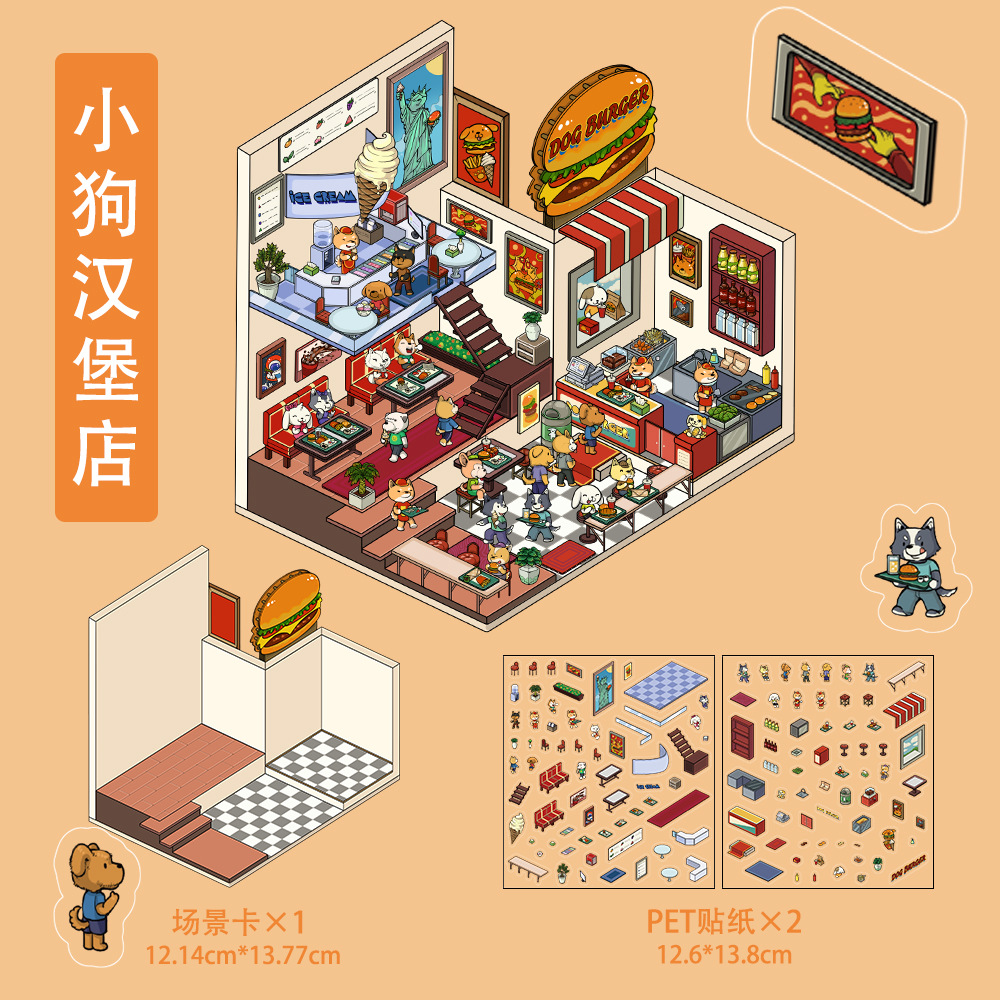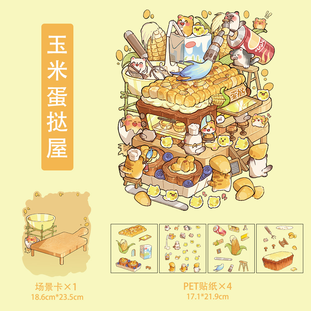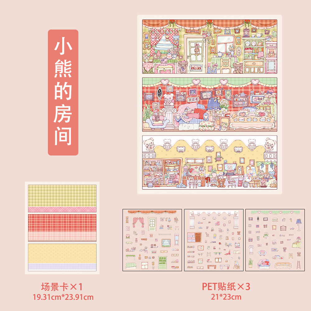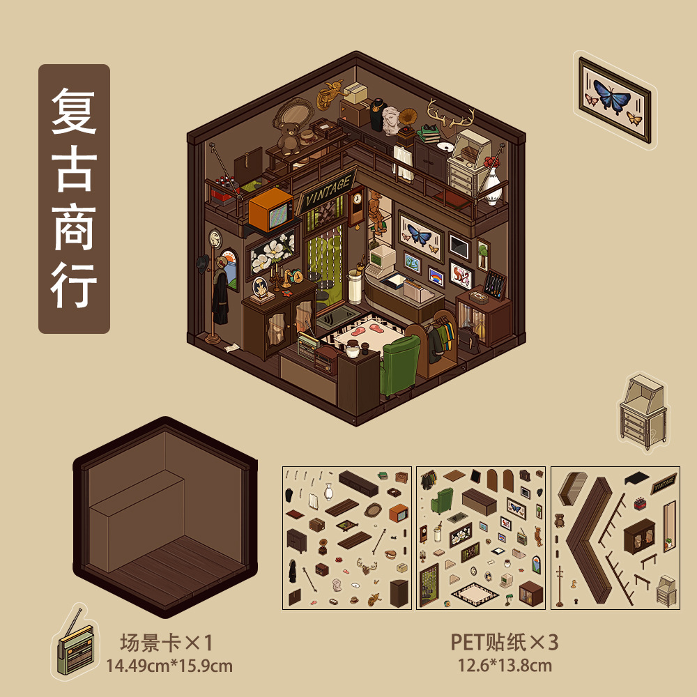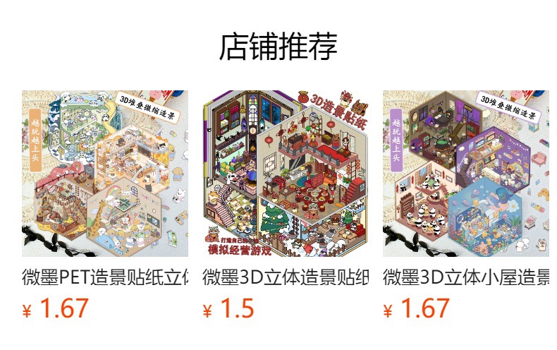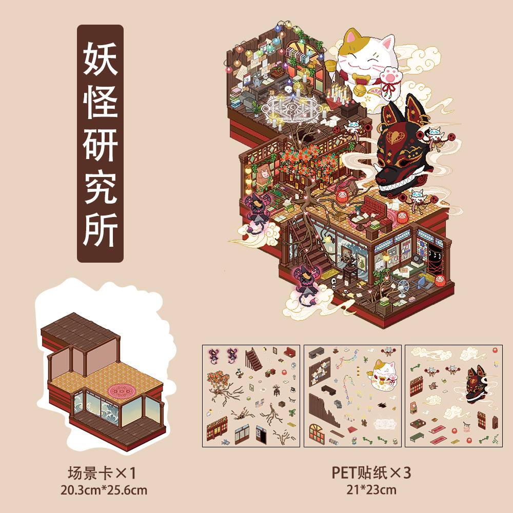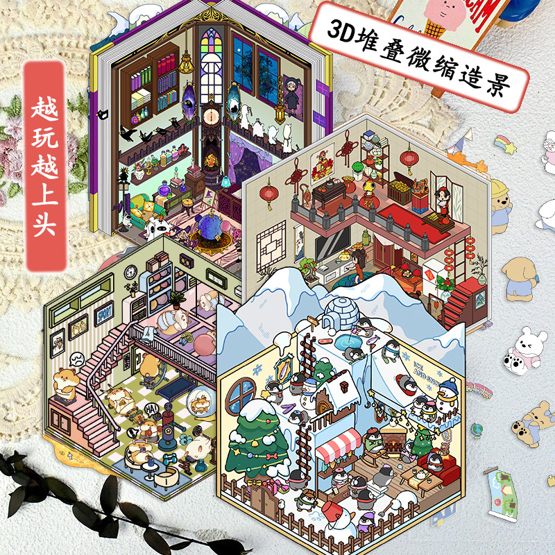 마이크로 잉크 다양한 3D 3 차원 조경 스티커 어린이 만화 감압 DIY 스태킹 소형 장면 손 계정 스티커스토어 가기