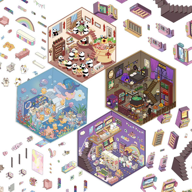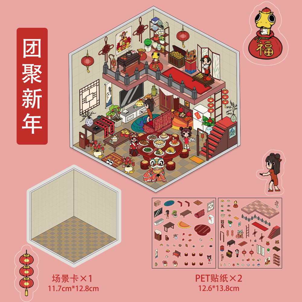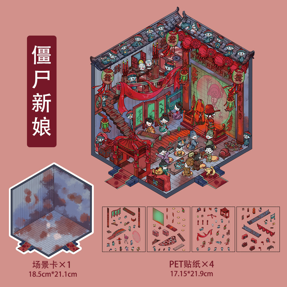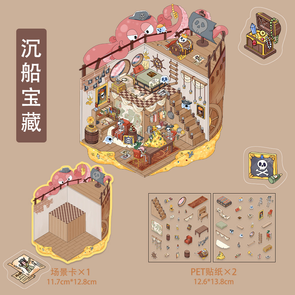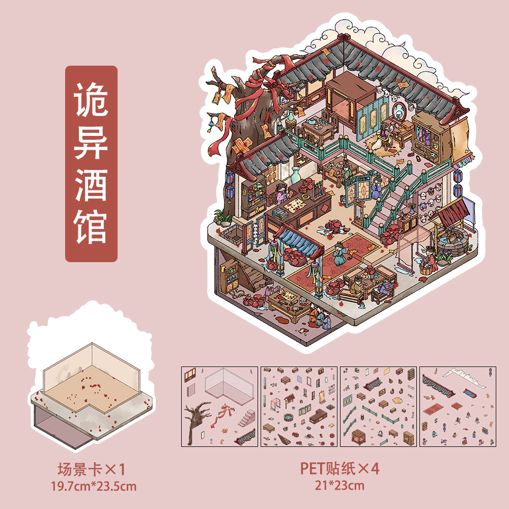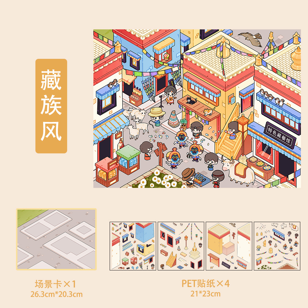 마이크로 잉크 다양한 3D 3 차원 조경 스티커 어린이 만화 감압 DIY 스태킹 소형 장면 손 계정 스티커스토어 가기