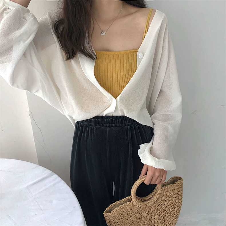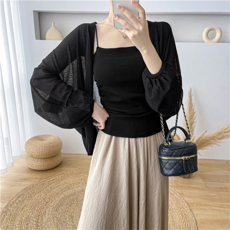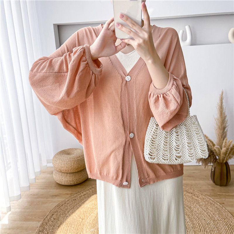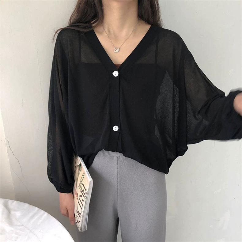 2025 새로운 패션 시스루 디자인 v 넥 린넨 배트 슬리브 스웨터 여성 봄, 여름 루즈 스타일 탑