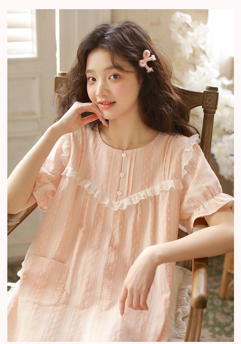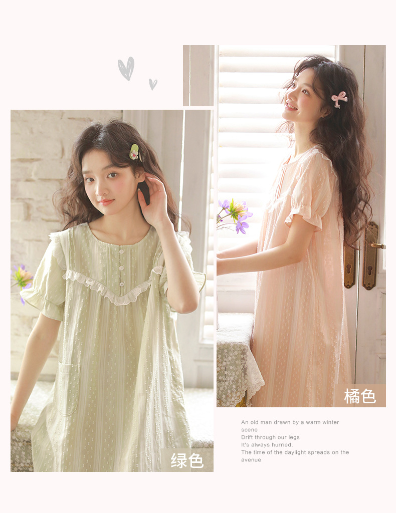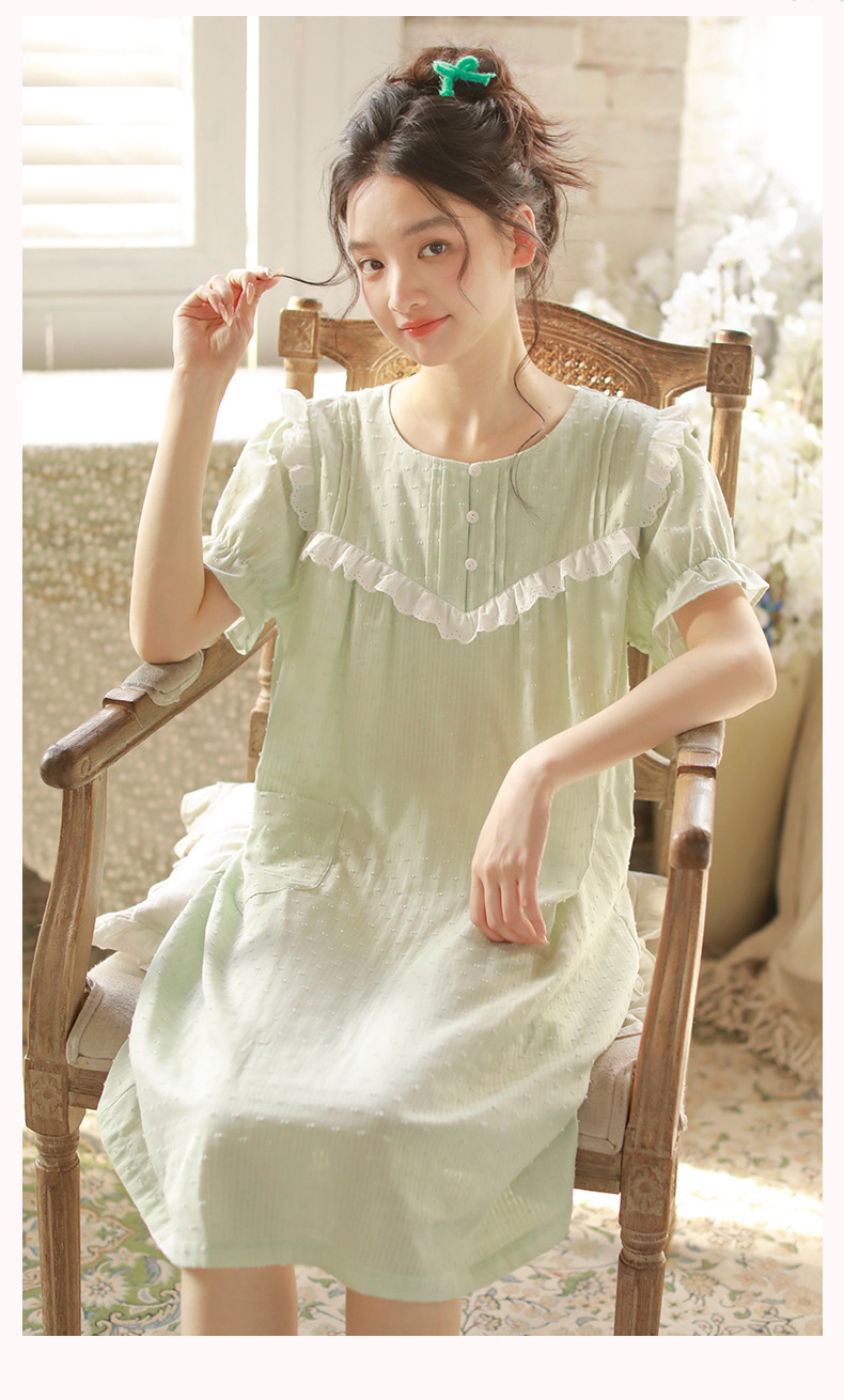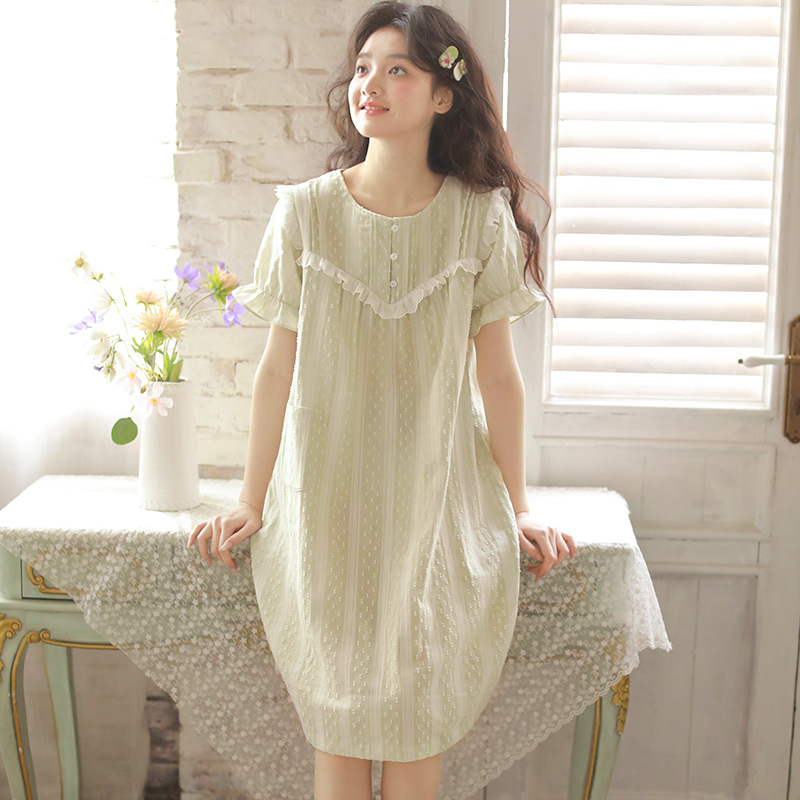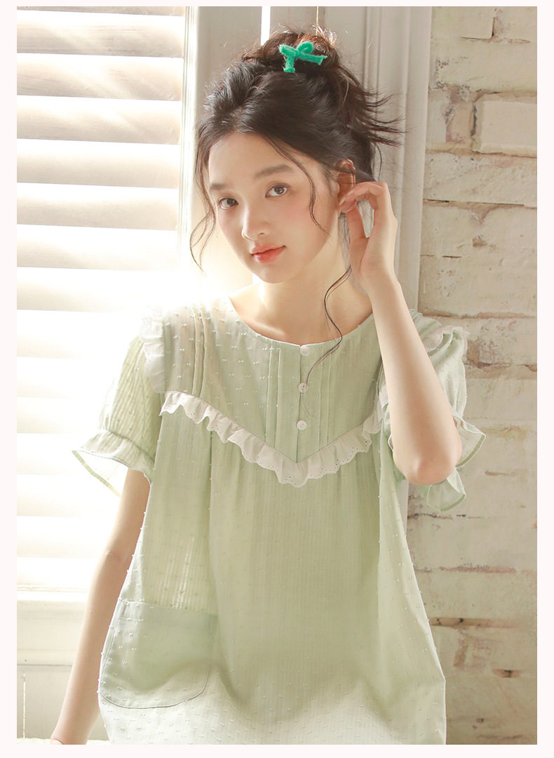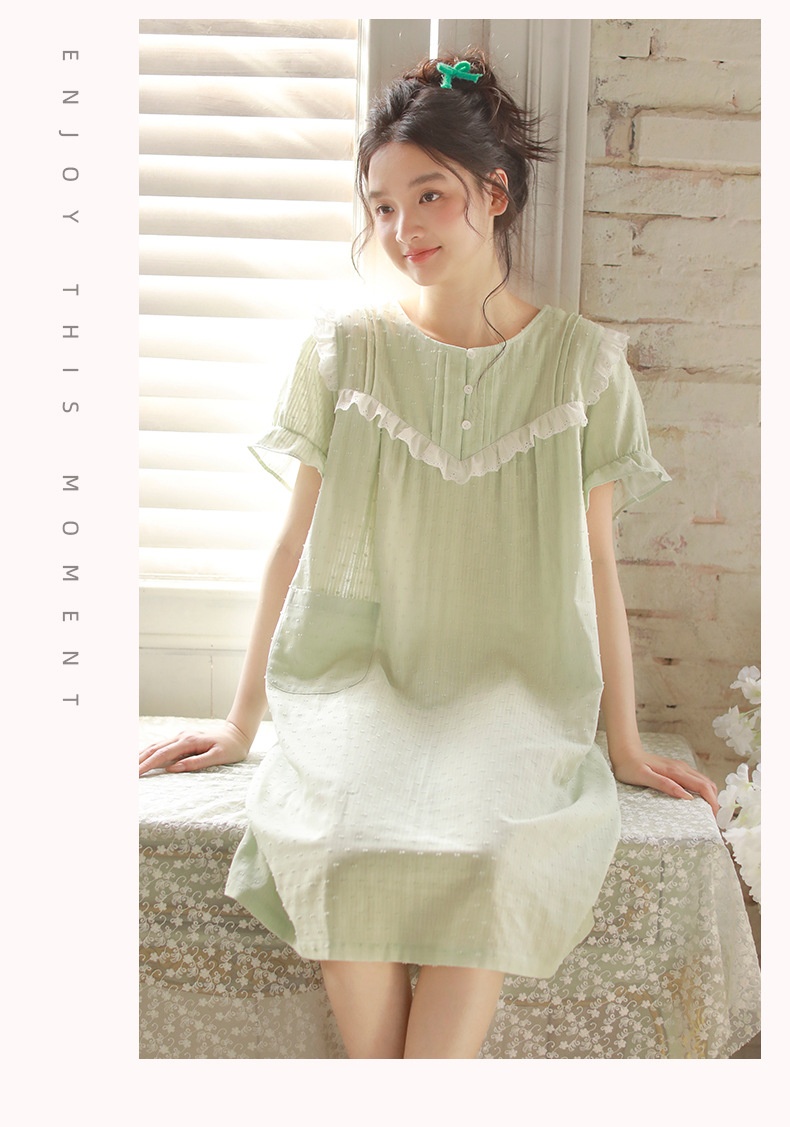 여성용 여름 잠옷, 순수하고 섹시한 스타일, 반팔, 여름 신상 잠옷, 순면 거즈, 달콤한 소녀풍, 외출복으로도 착용 가능한 홈웨어 50