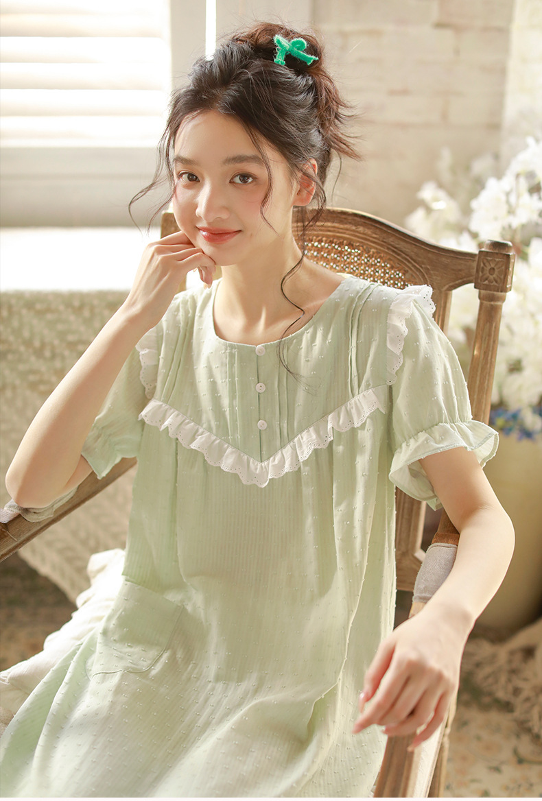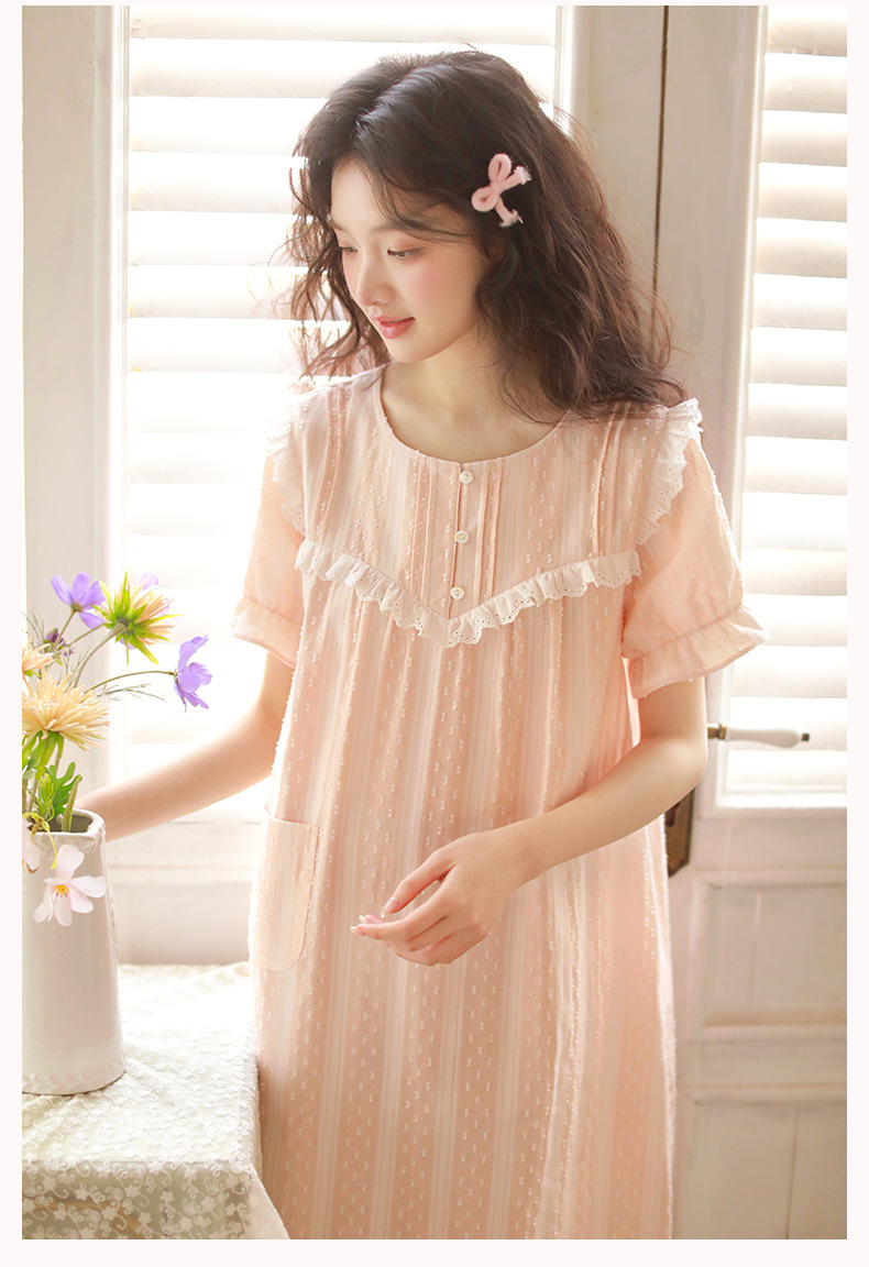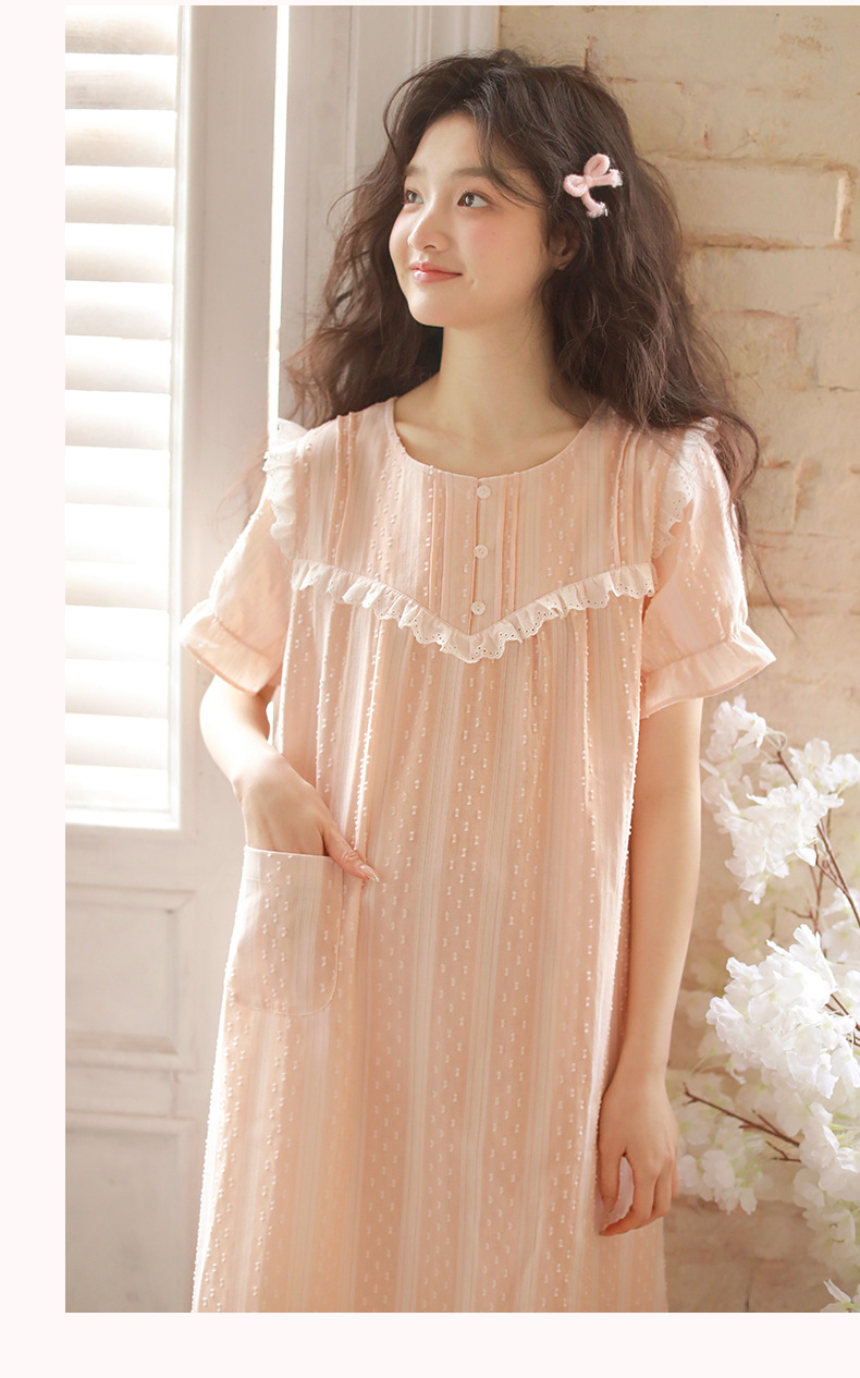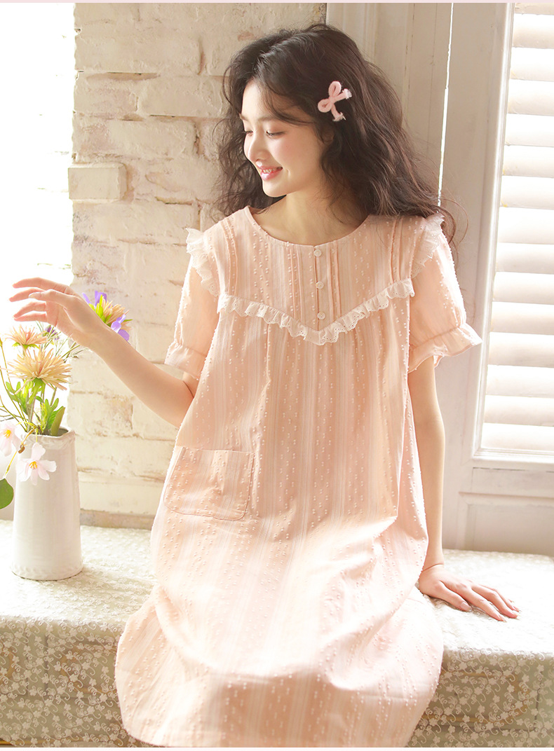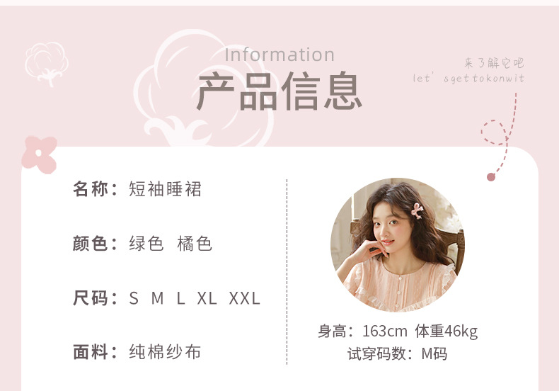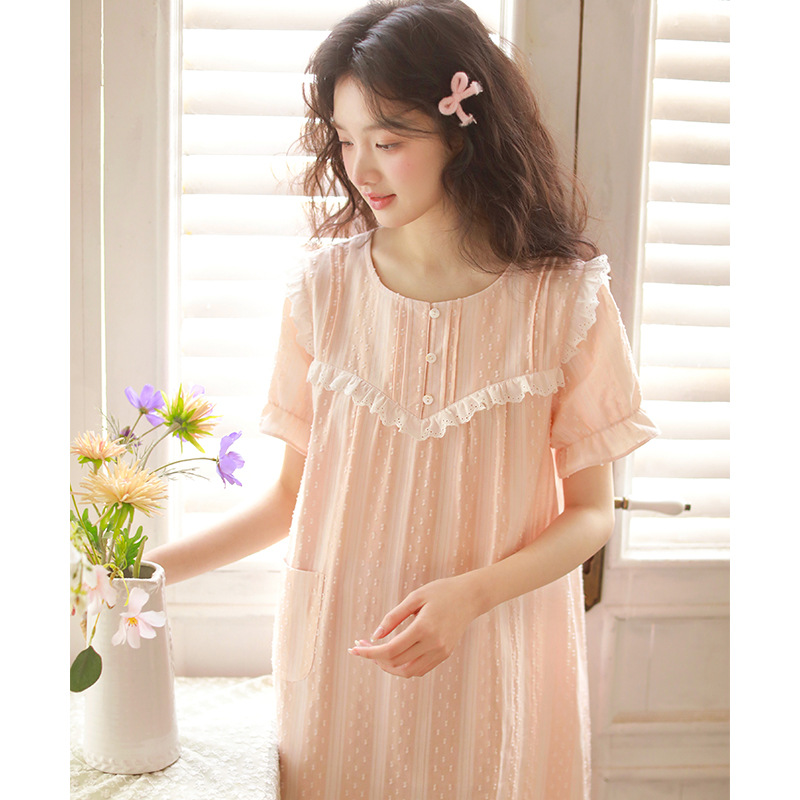 여성용 여름 잠옷, 순수하고 섹시한 스타일, 반팔, 여름 신상 잠옷, 순면 거즈, 달콤한 소녀풍, 외출복으로도 착용 가능한 홈웨어 50