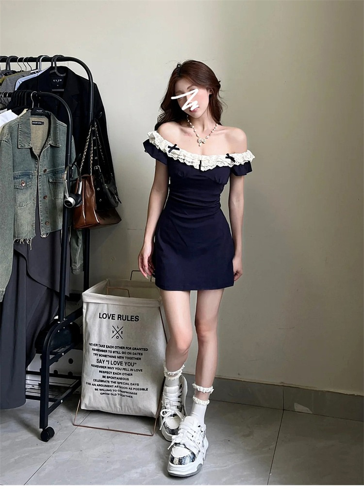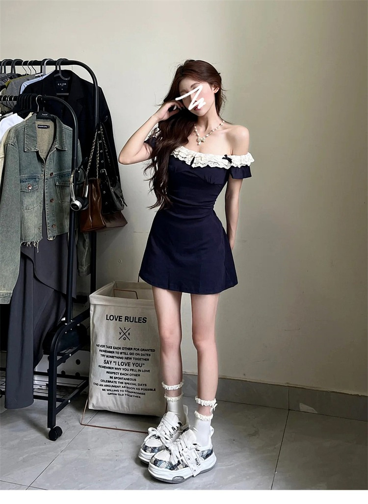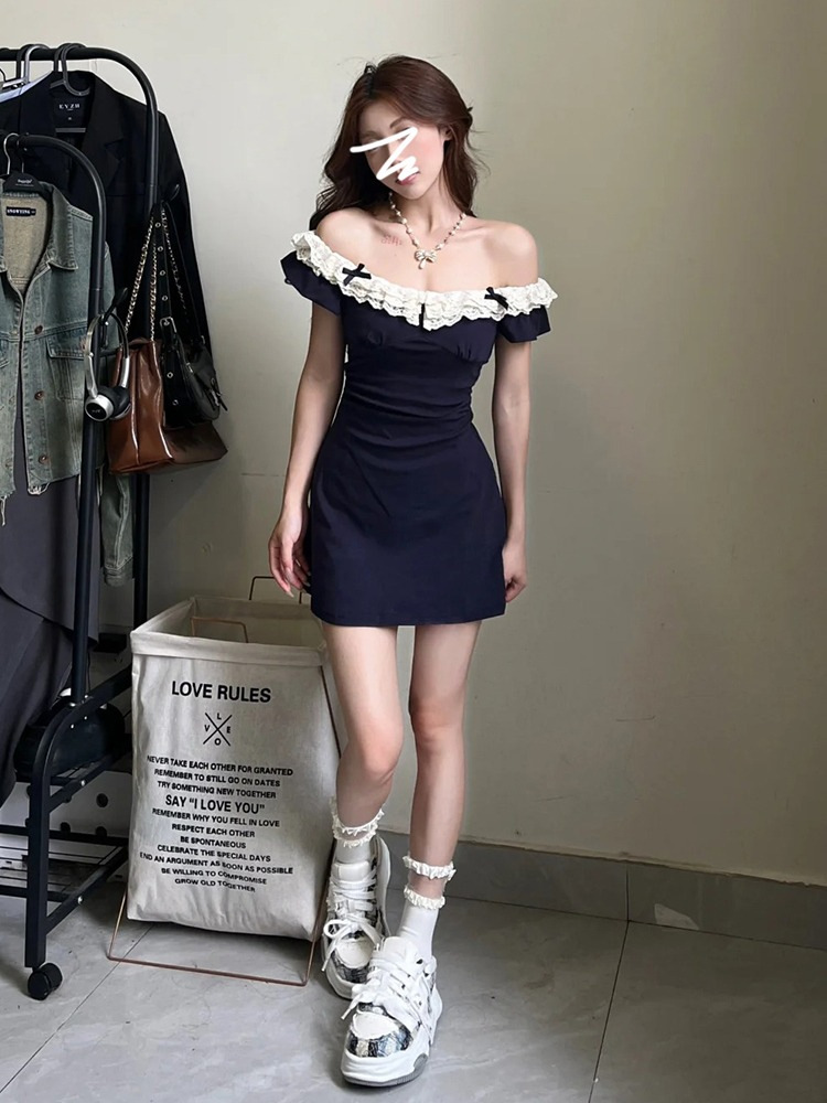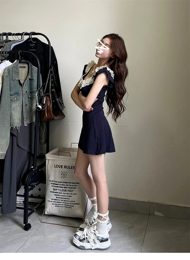 레이스 바느질 뜨거운 소녀 원피스 중공 디자인 센스 여름 사교계 순수한 욕망 스타일 여성의 여름 새로운 도착 치마