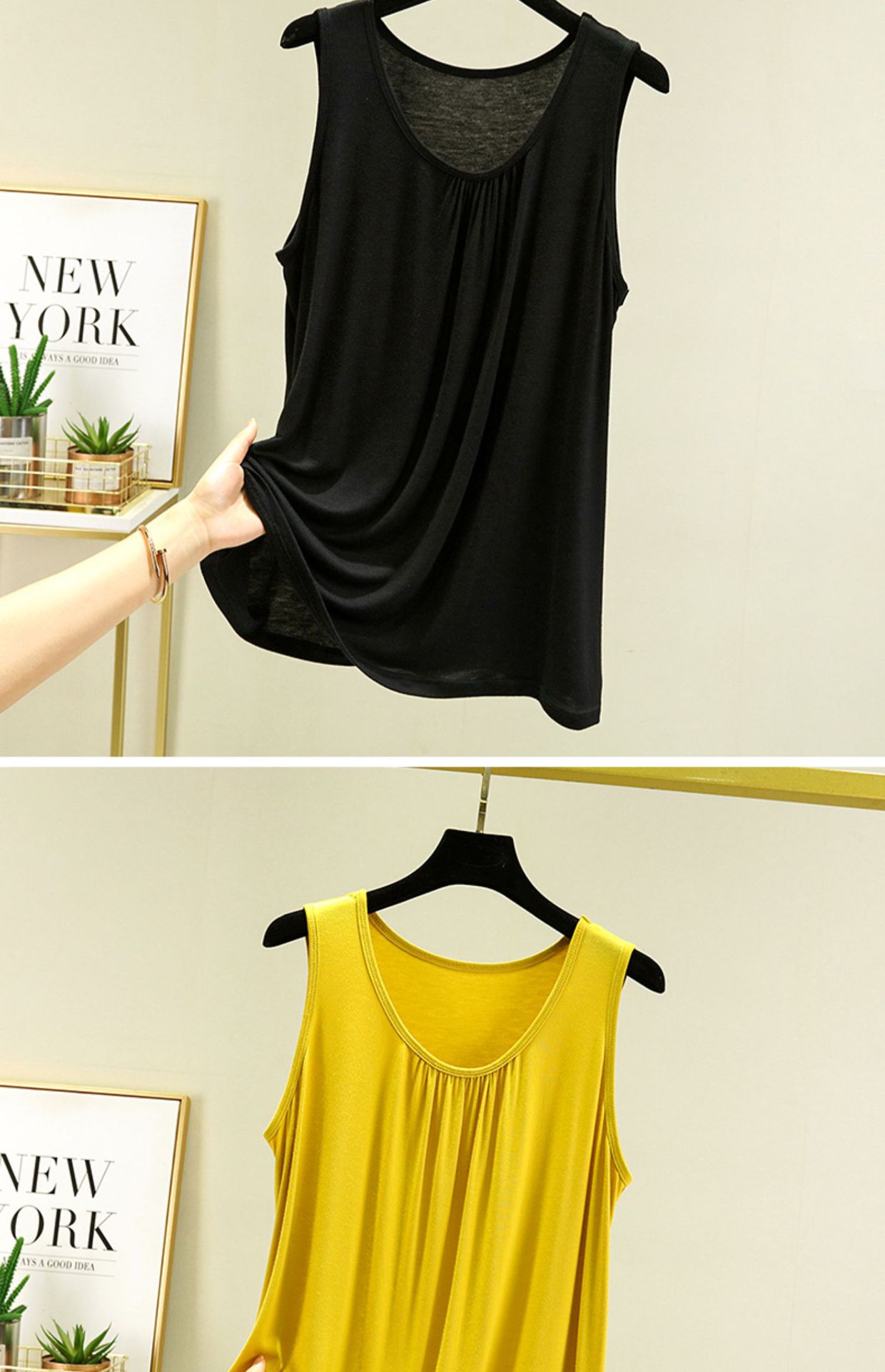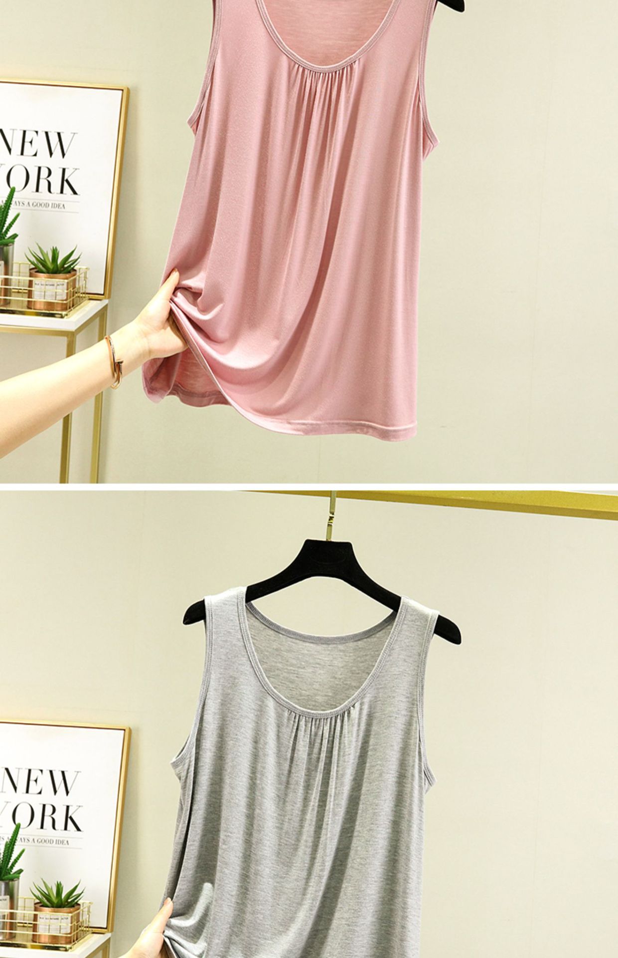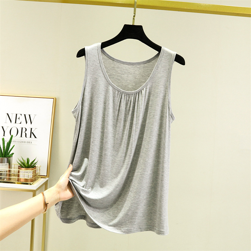 모달 홈 조끼 여성 여름 얇은 플러스 사이즈 느슨한 민소매 탑 캐주얼 라운드 넥 내부 슬링베이스 셔츠스토어 가기