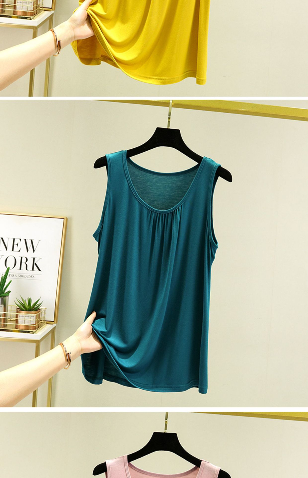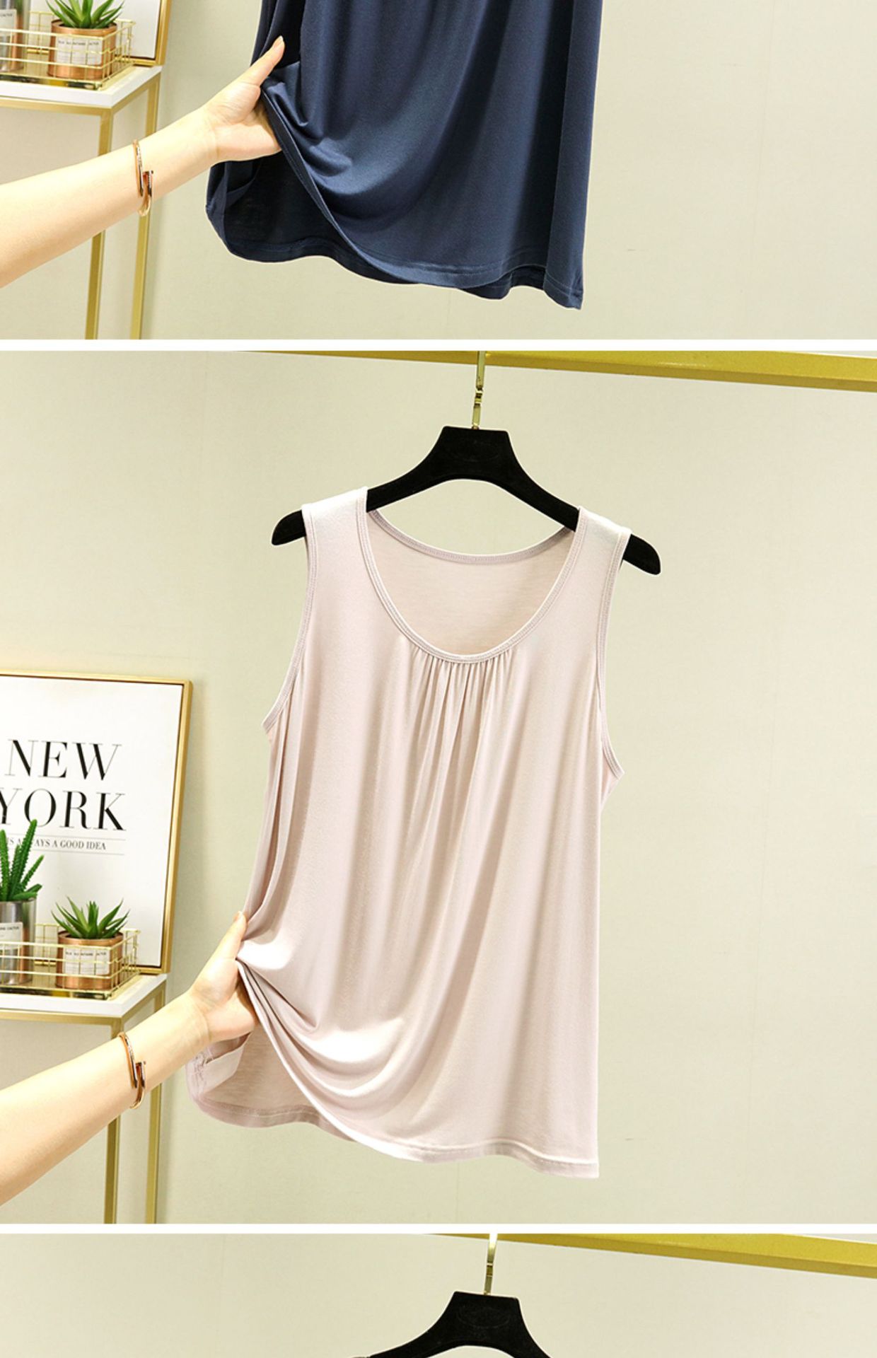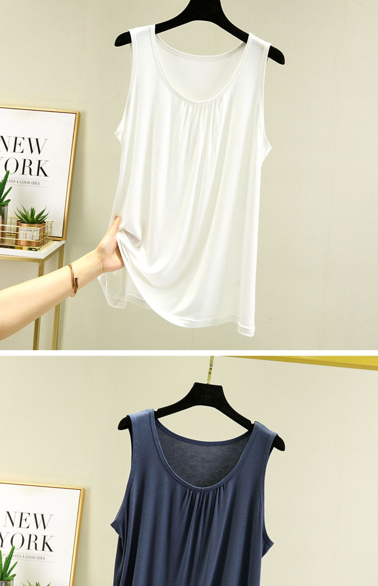 모달 홈 조끼 여성 여름 얇은 플러스 사이즈 느슨한 민소매 탑 캐주얼 라운드 넥 내부 슬링베이스 셔츠스토어 가기