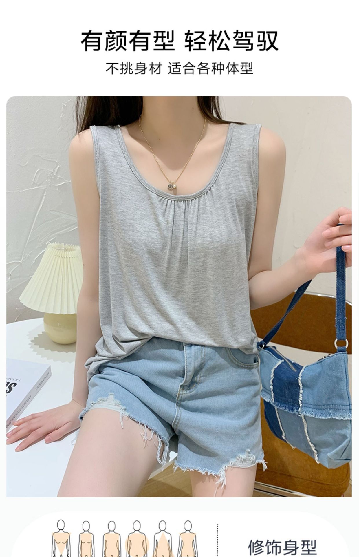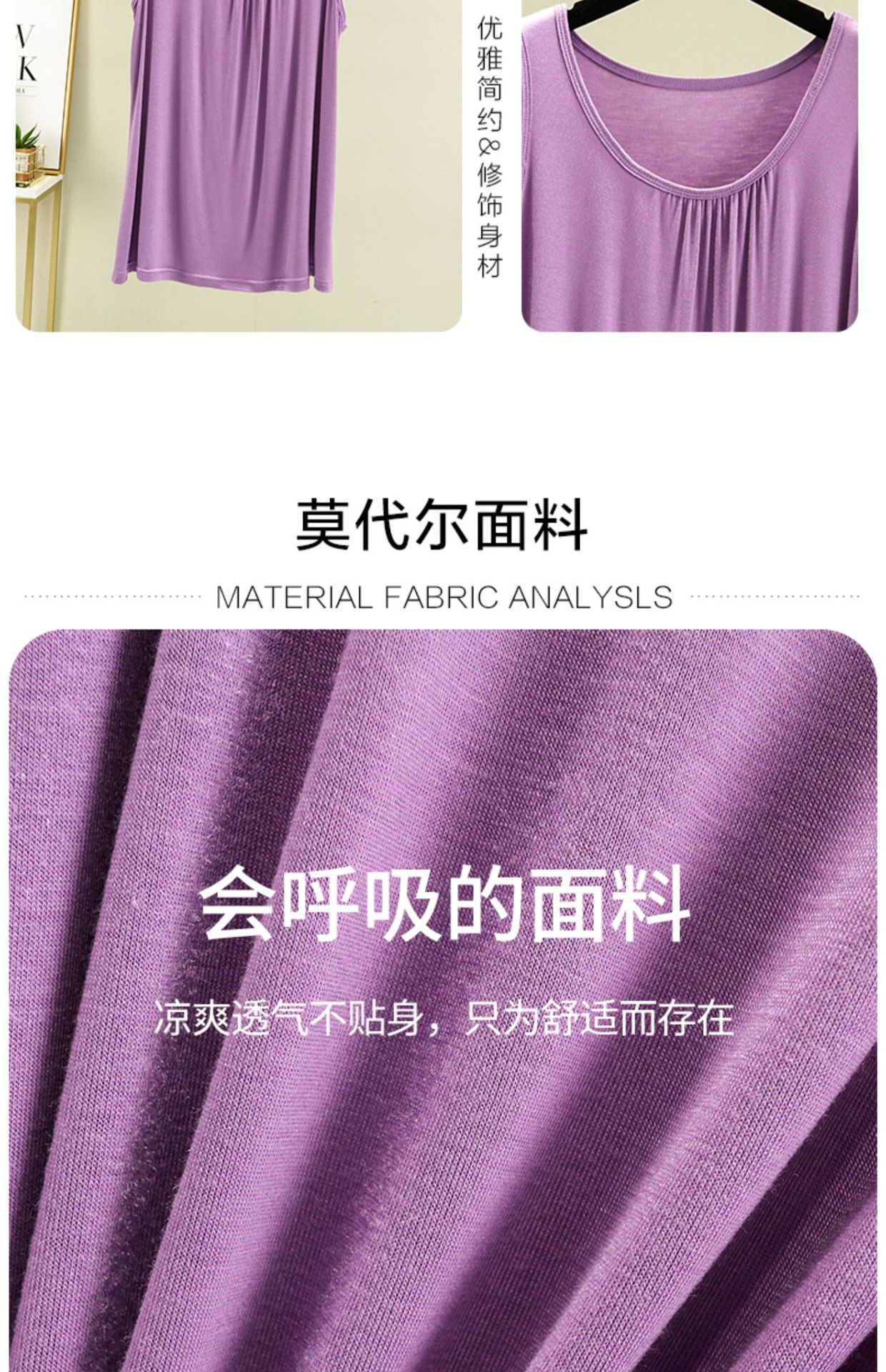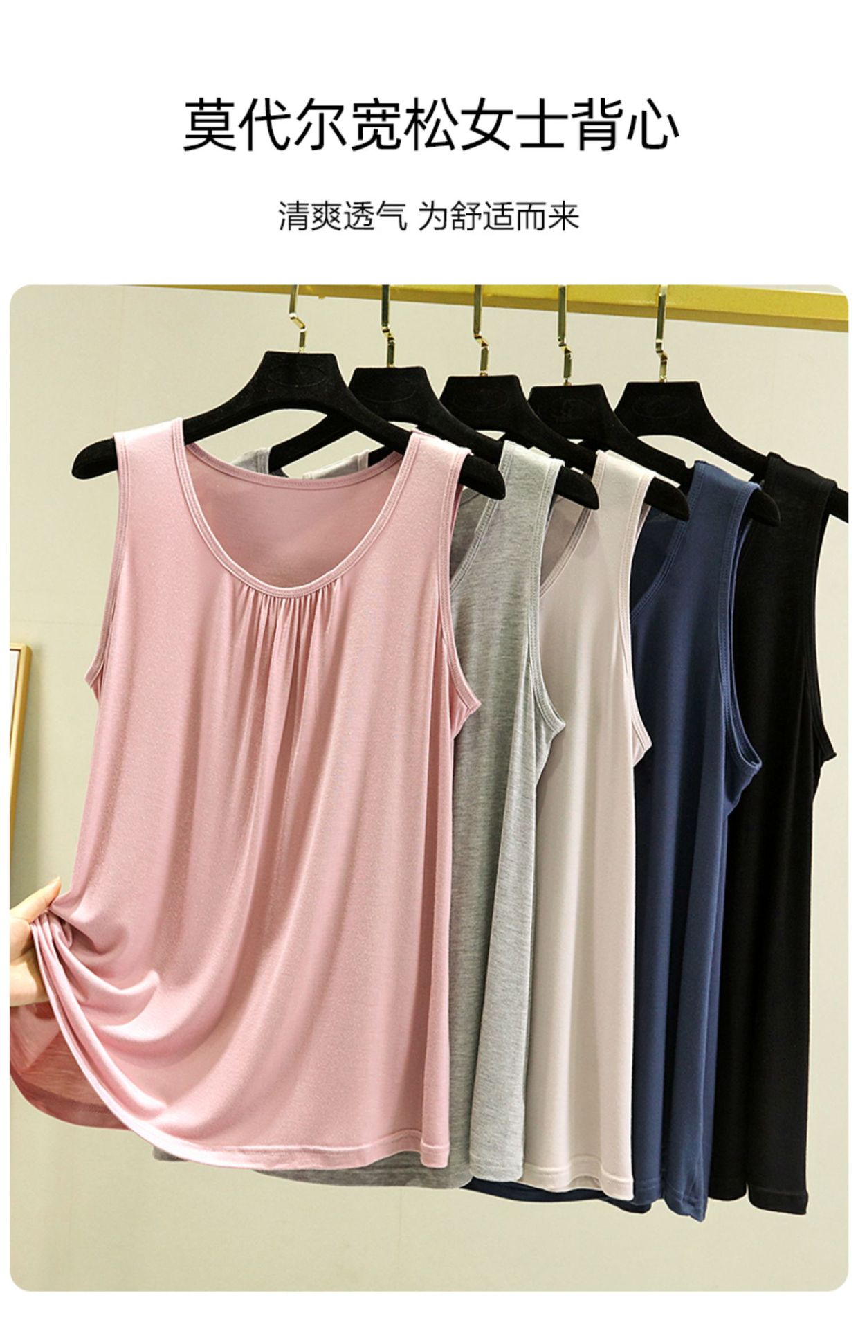 百搭莫代尔宽松背心女夏季大码外穿吊带无袖打底衫圆领胖mm薄上衣
