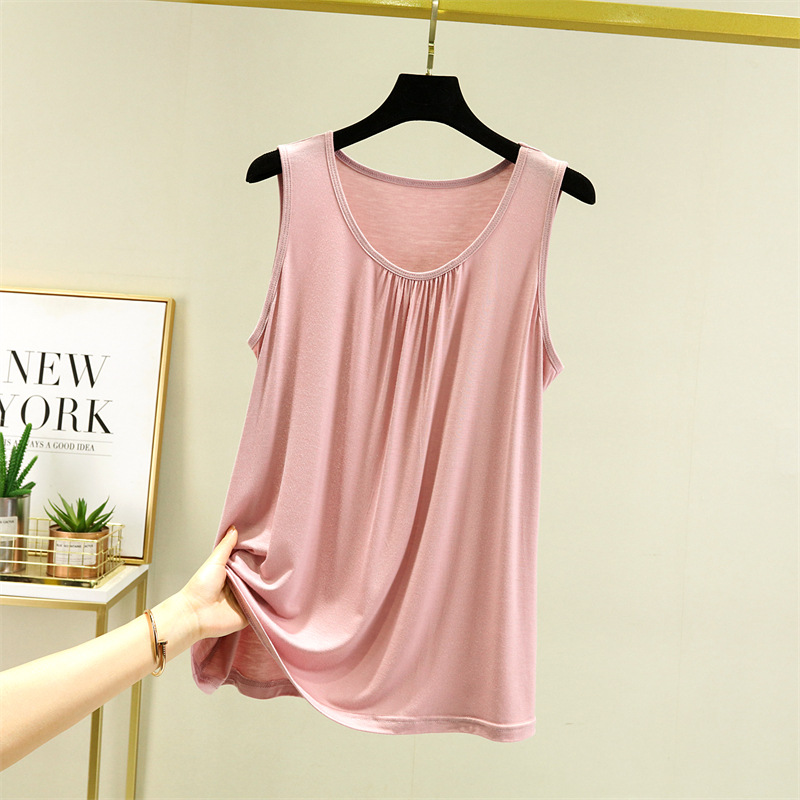 모달 홈 조끼 여성 여름 얇은 플러스 사이즈 느슨한 민소매 탑 캐주얼 라운드 넥 내부 슬링베이스 셔츠