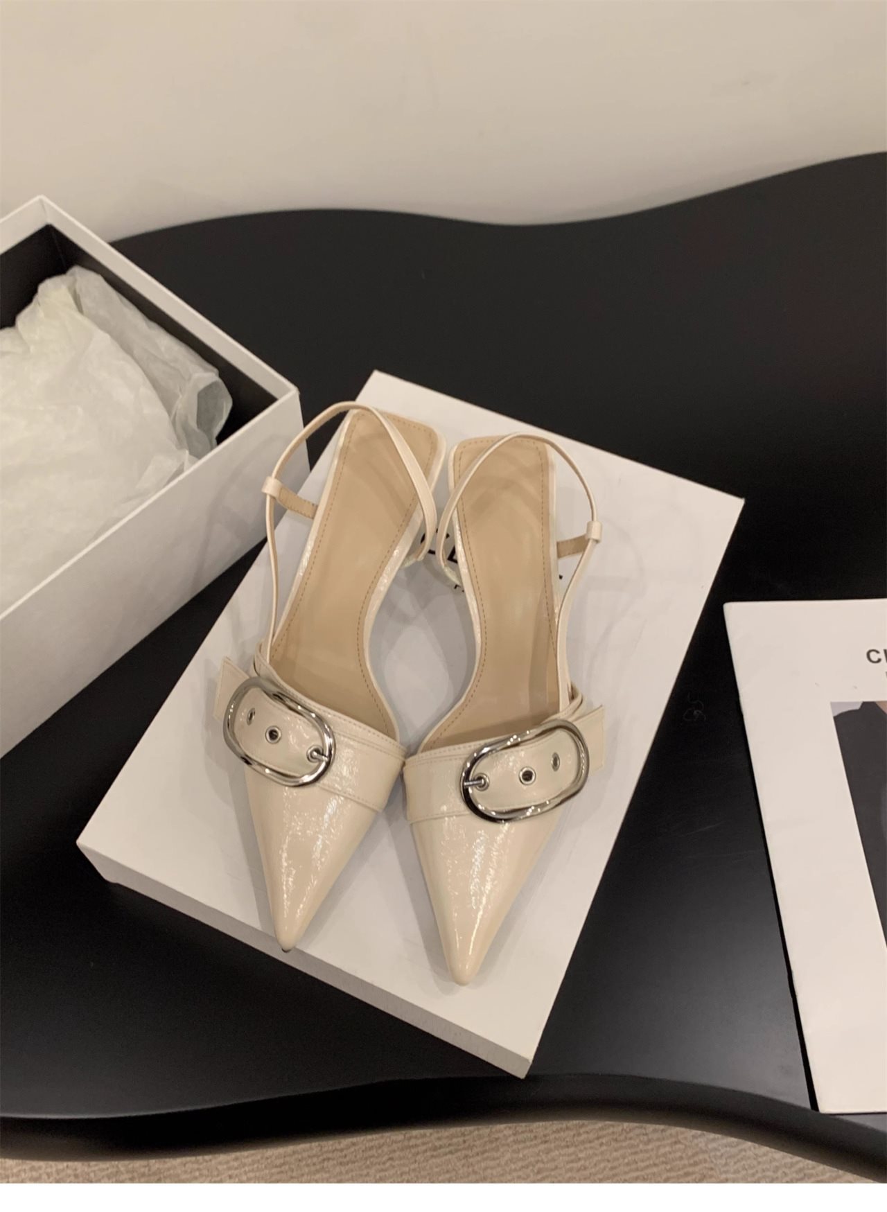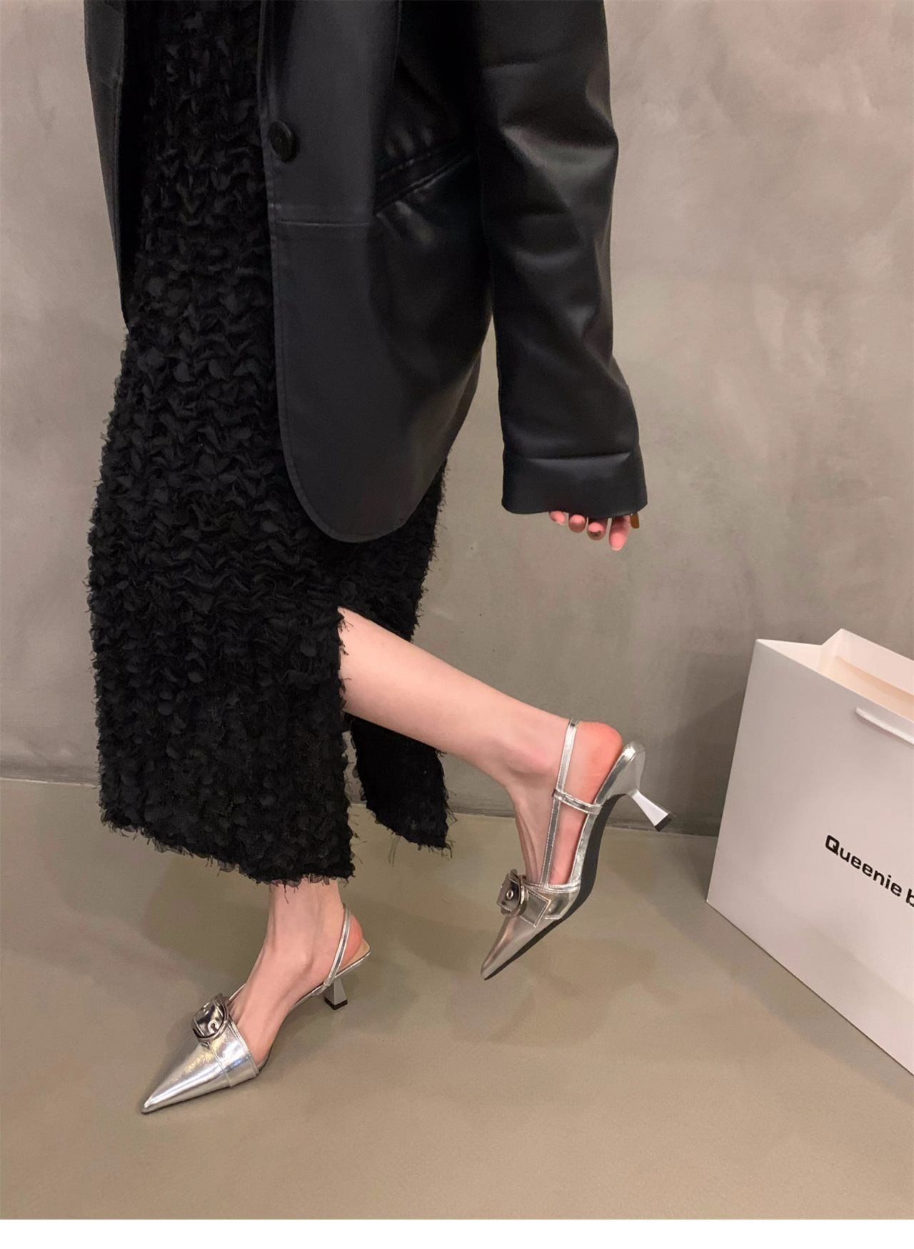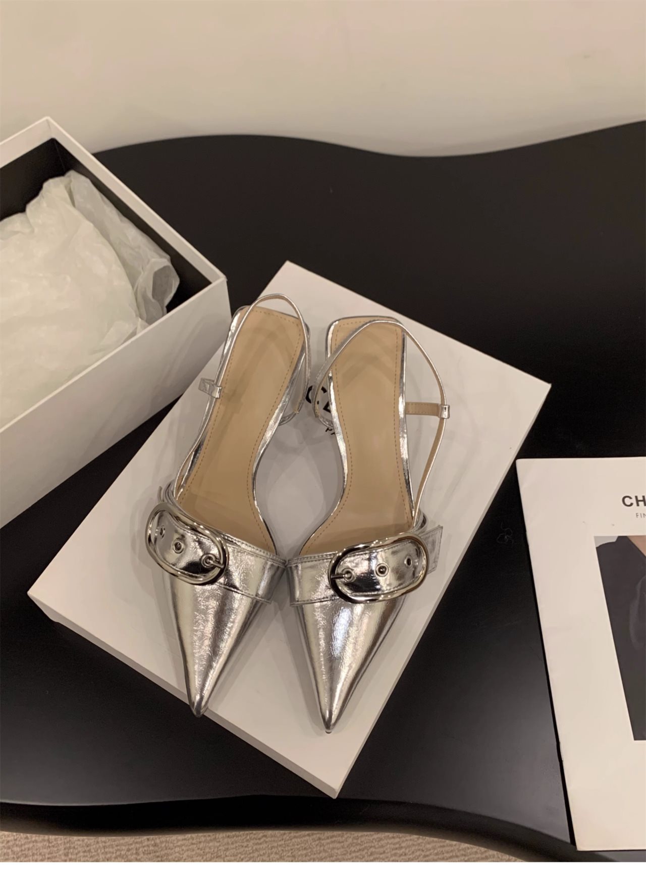 니치 프렌치 실버 하이힐 발가락 샌들 페어리 슈즈 2024 새로운 봄과 여름 우아한 포인팅 슈즈스토어 가기