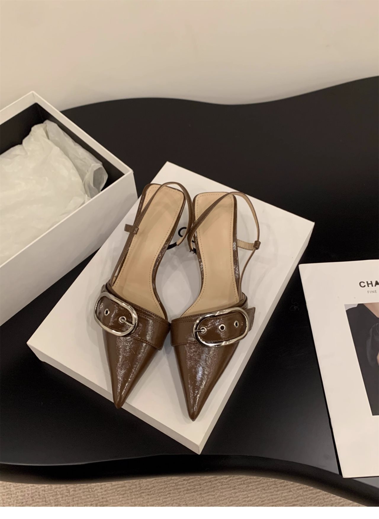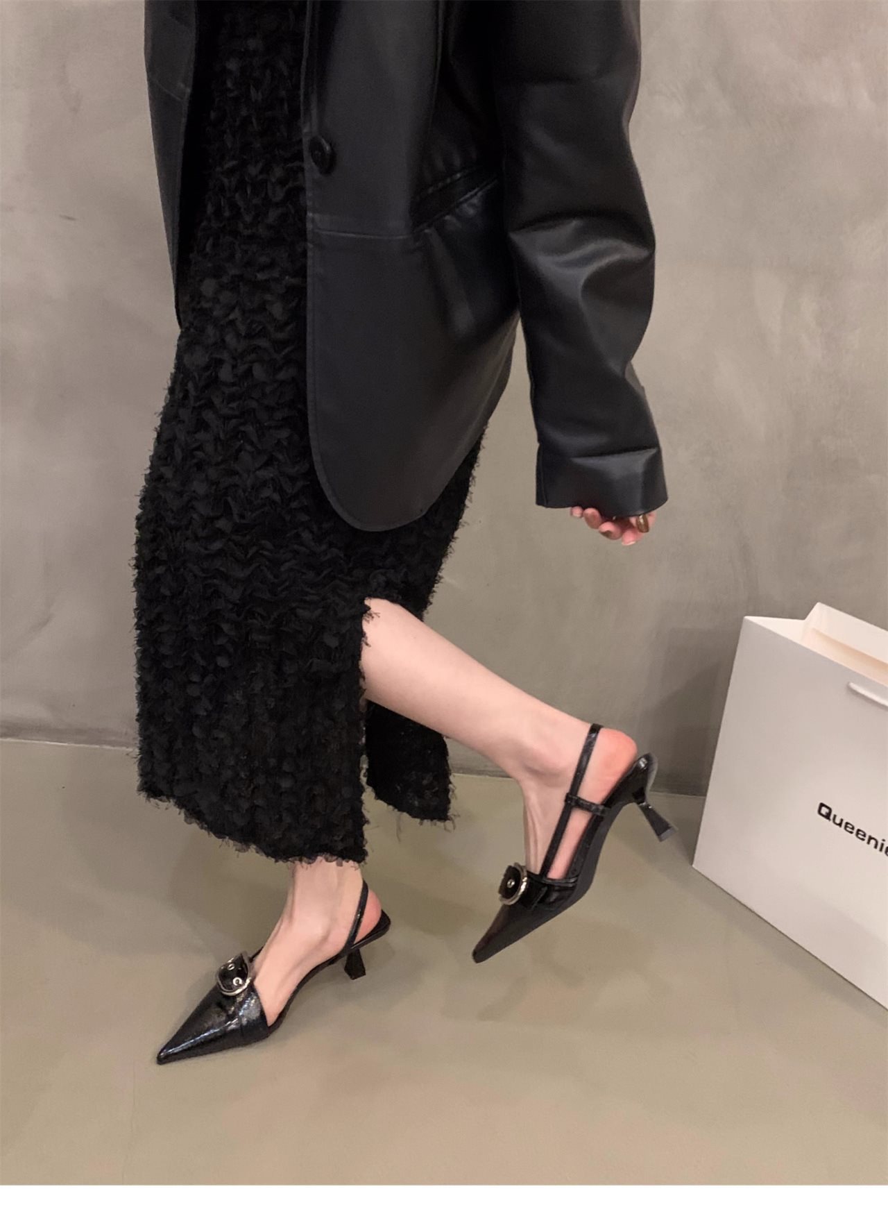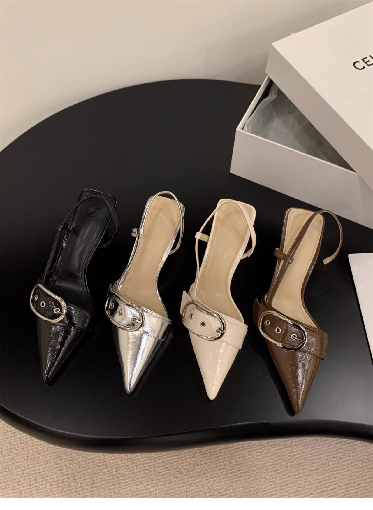 니치 프렌치 실버 하이힐 발가락 샌들 페어리 슈즈 2024 새로운 봄과 여름 우아한 포인팅 슈즈스토어 가기