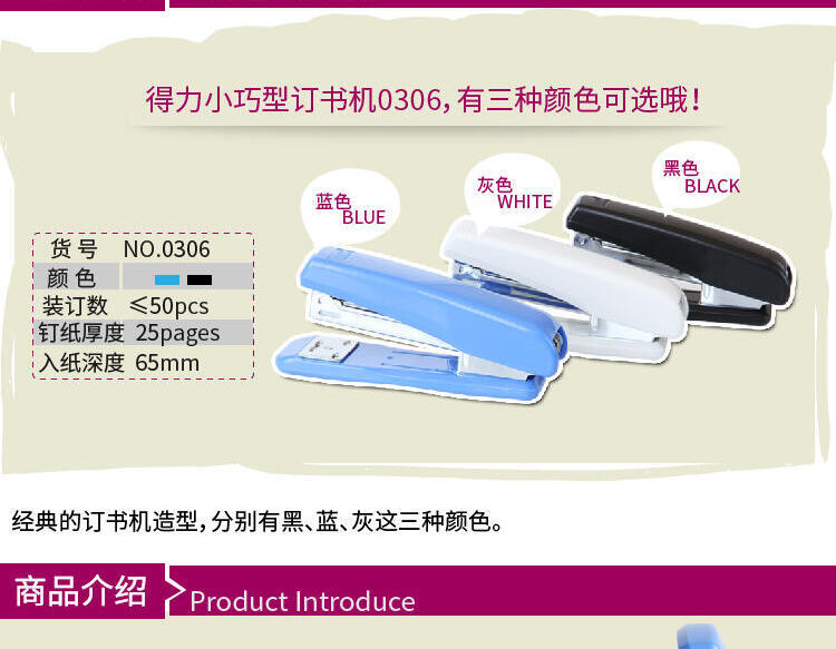 델리 소형 스테이플러 0306/0307 휴대용 스테이플러 12호 표준형 스테이플러 20페이지 스테이플러