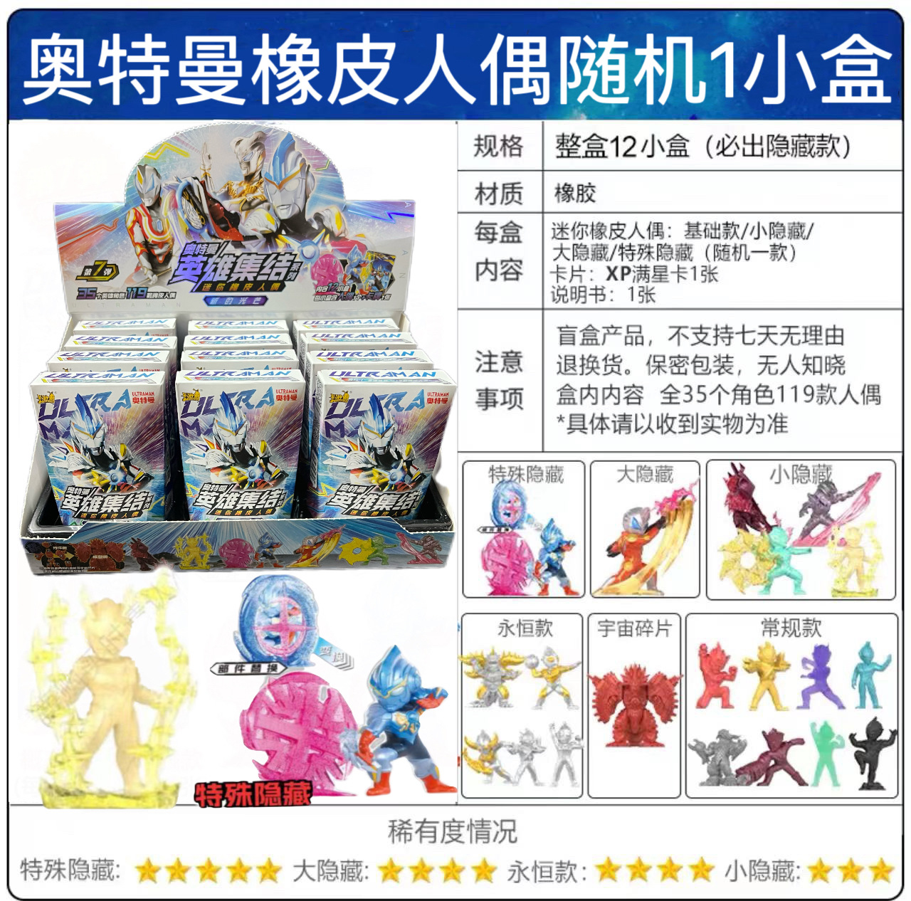 • 영웅들의 집합 - 7번째 고무인형 - 1박스에 12개 - 필수 숨겨진 + 영원한 스타일 [XP 카드 포함] 디스플레이 상자 1개 포함