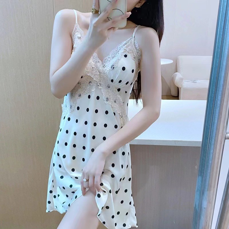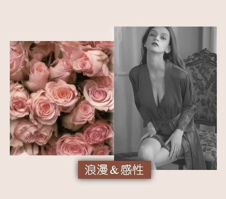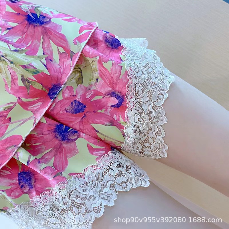 • 단조 실크 잠옷 - Mi Zhen 컬러 레이스 스타일