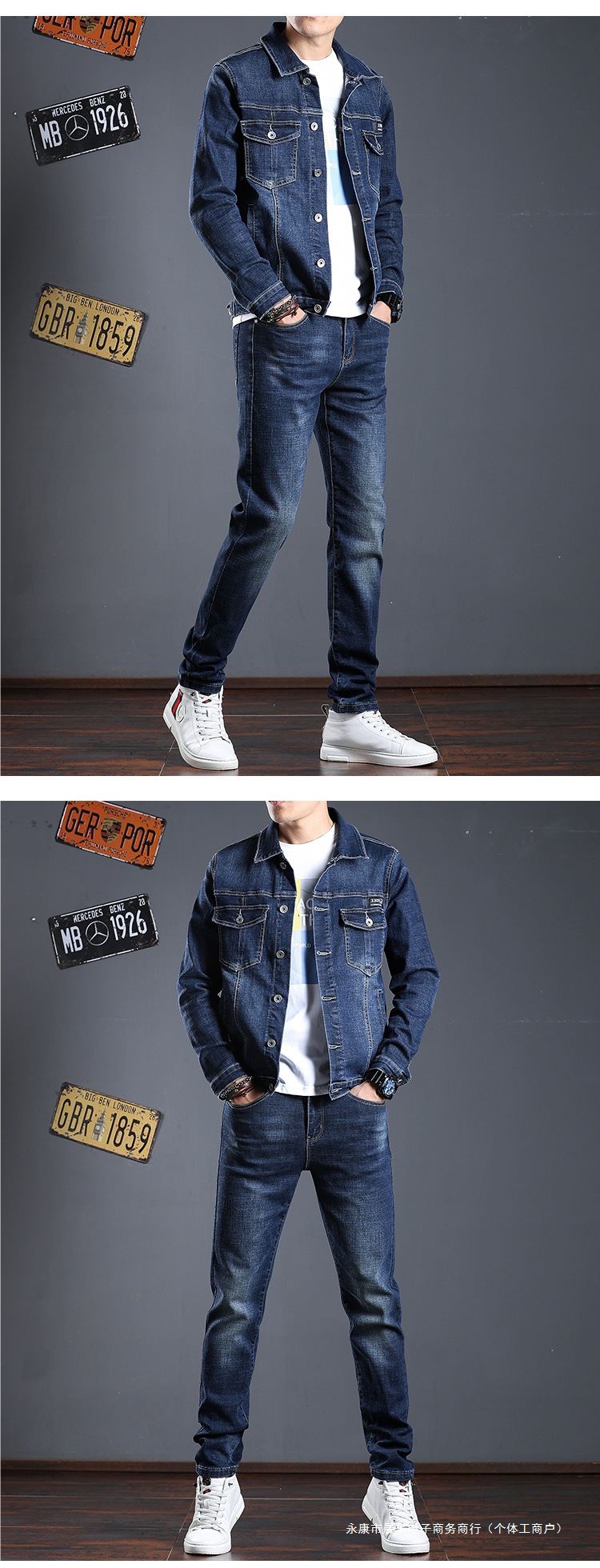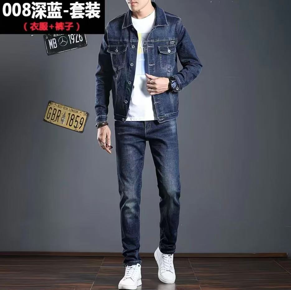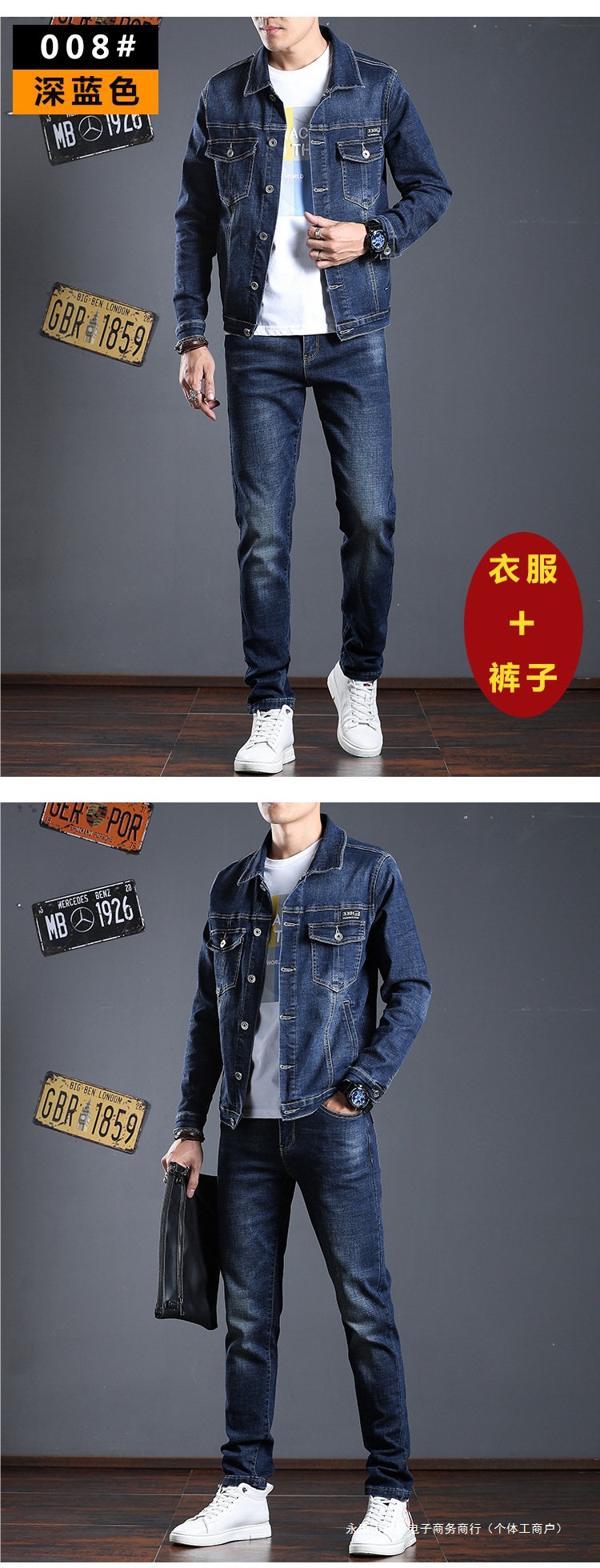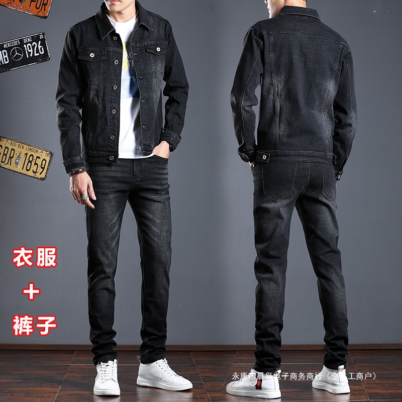 가을 데님 정장 남성 봄, 가을 새로운 겉옷 한국 스타일 슬림 피트 트렌디 자켓 매칭 잘 생긴 옷 세트스토어 가기