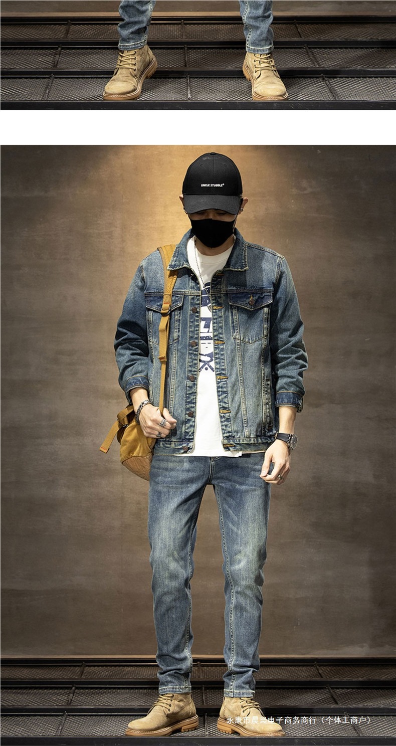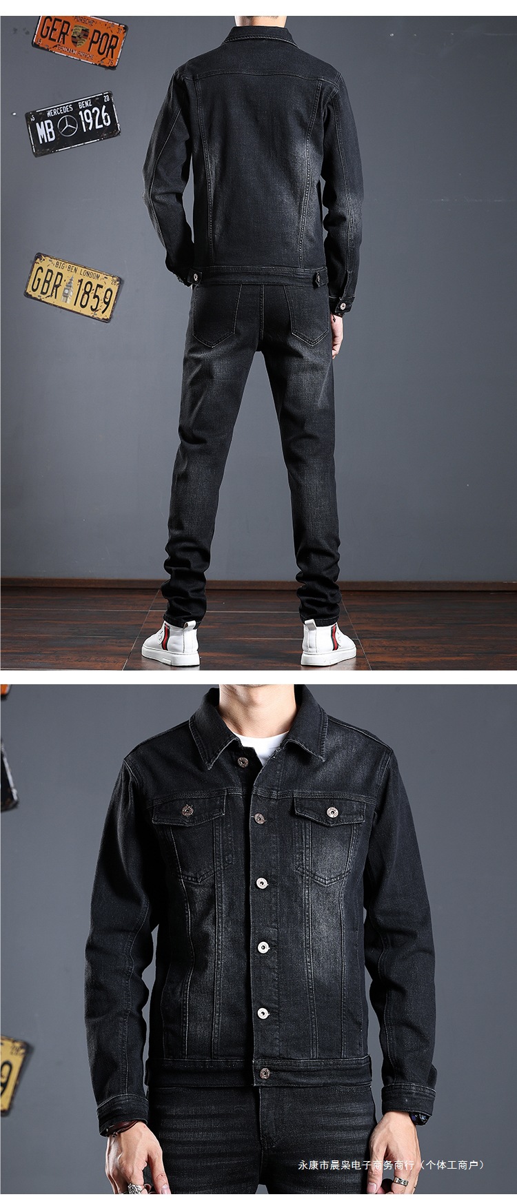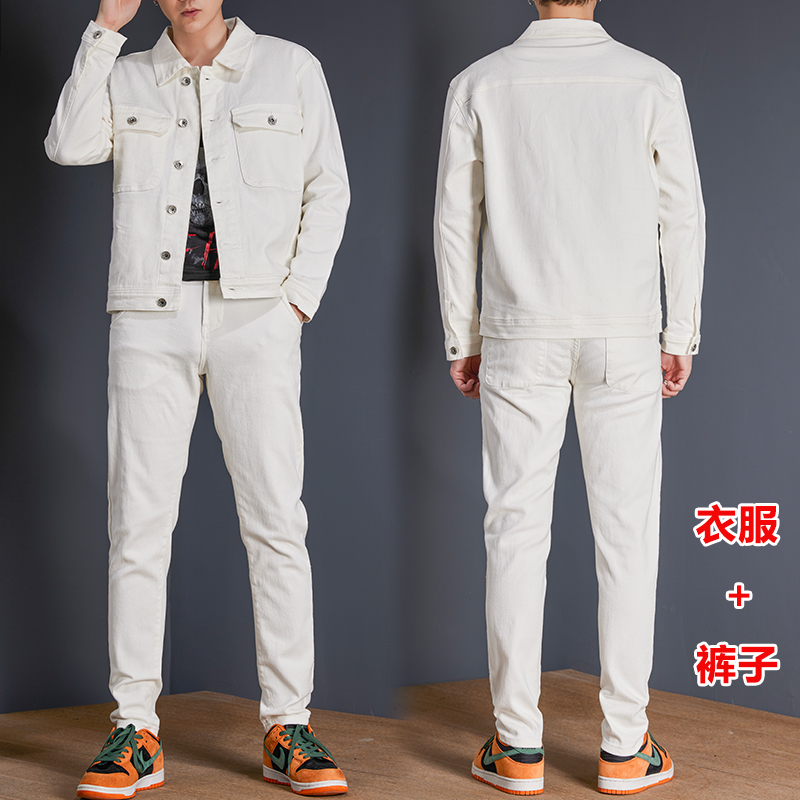 가을 데님 정장 남성 봄, 가을 새로운 겉옷 한국 스타일 슬림 피트 트렌디 자켓 매칭 잘 생긴 옷 세트스토어 가기