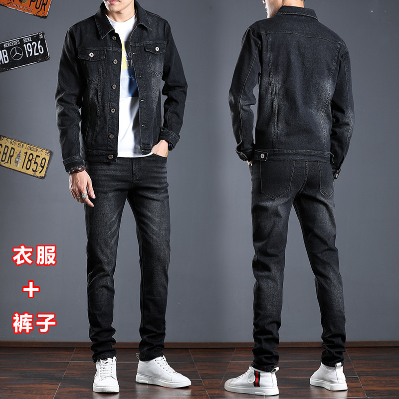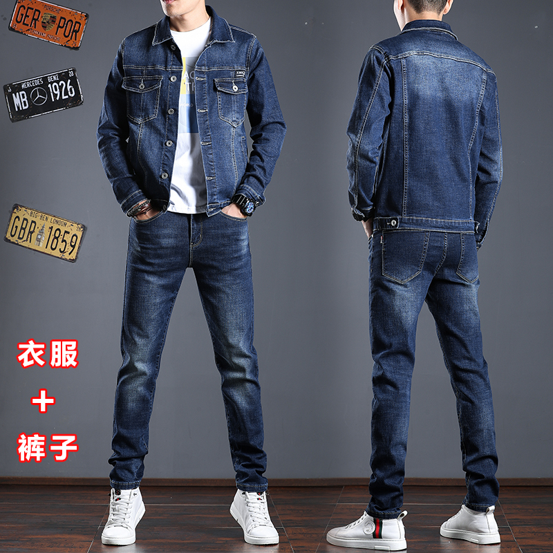 가을 데님 정장 남성 봄, 가을 새로운 겉옷 한국 스타일 슬림 피트 트렌디 자켓 매칭 잘 생긴 옷 세트