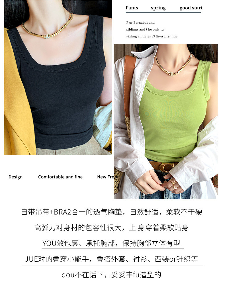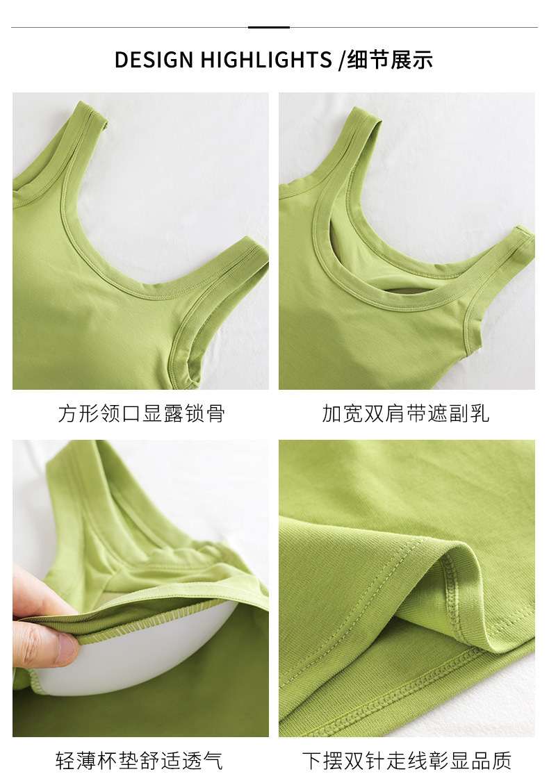 가슴 패드가 있는 여성용 썸머 슬리브리스 탑, 아름다운 등 디자인, 순면 이너웨어, 2026년 신상 브라 일체형스토어 가기