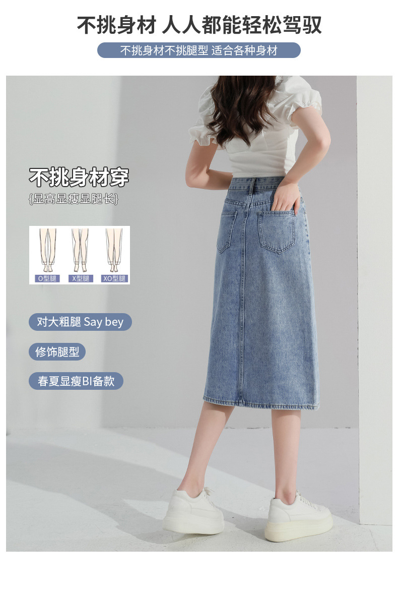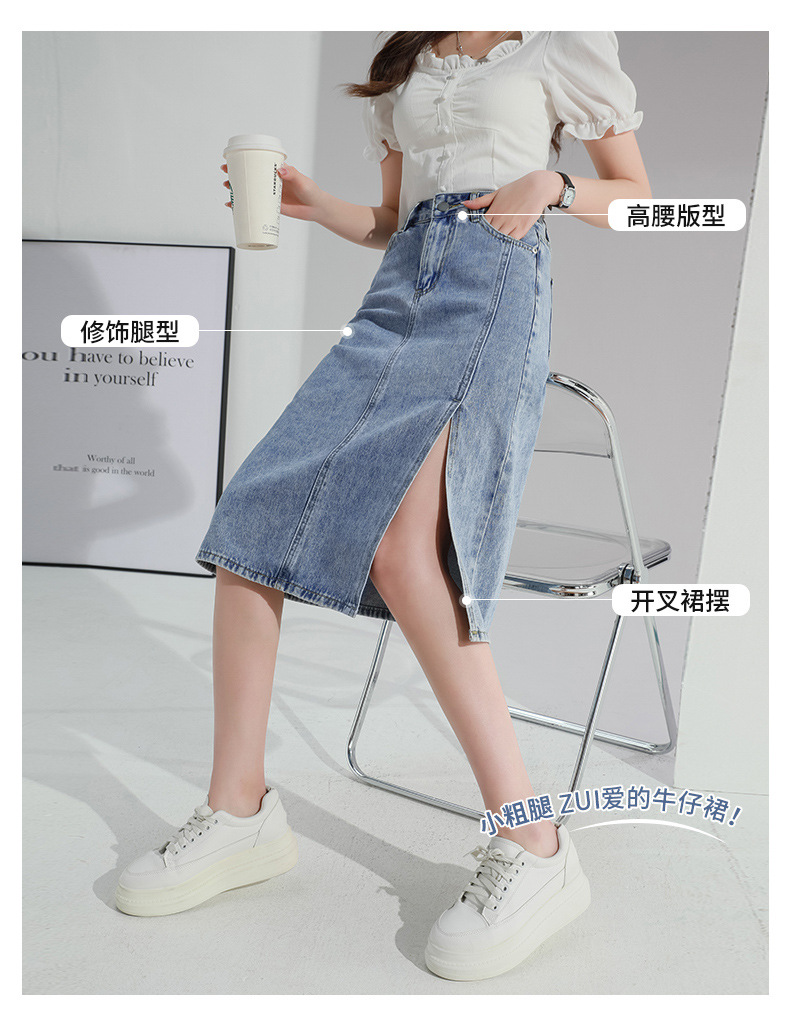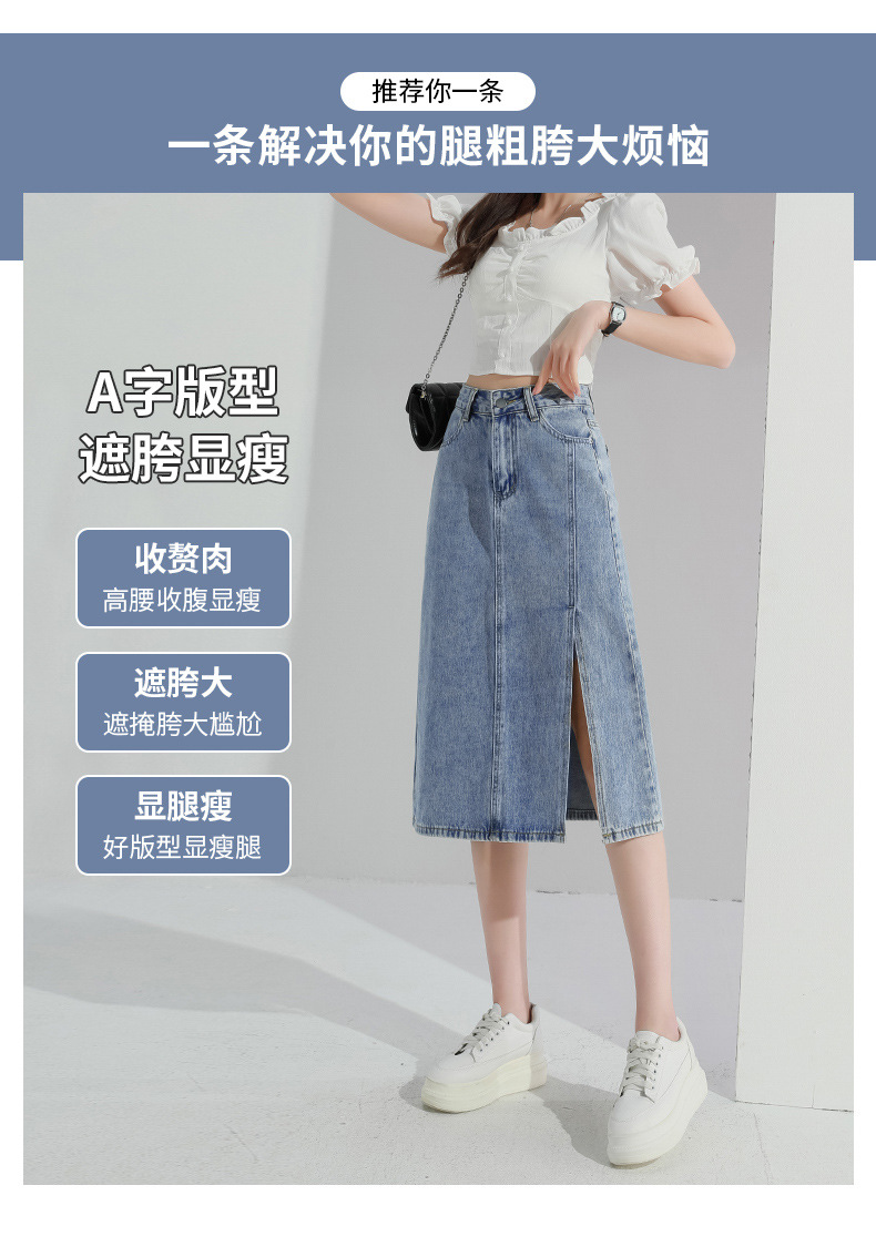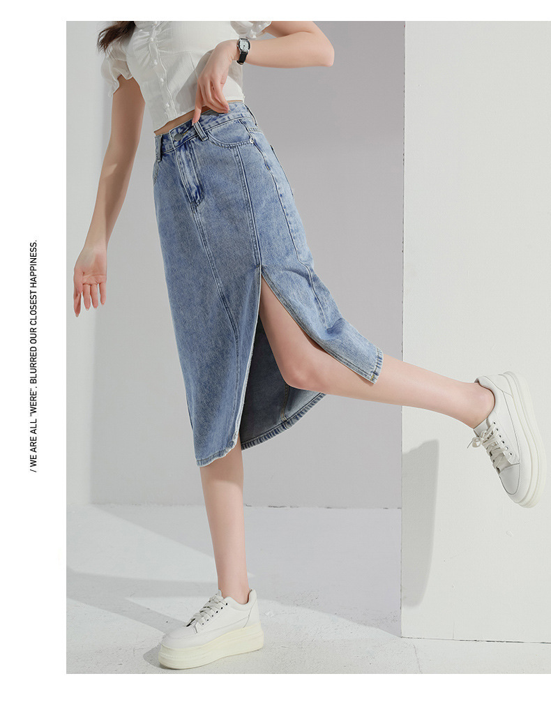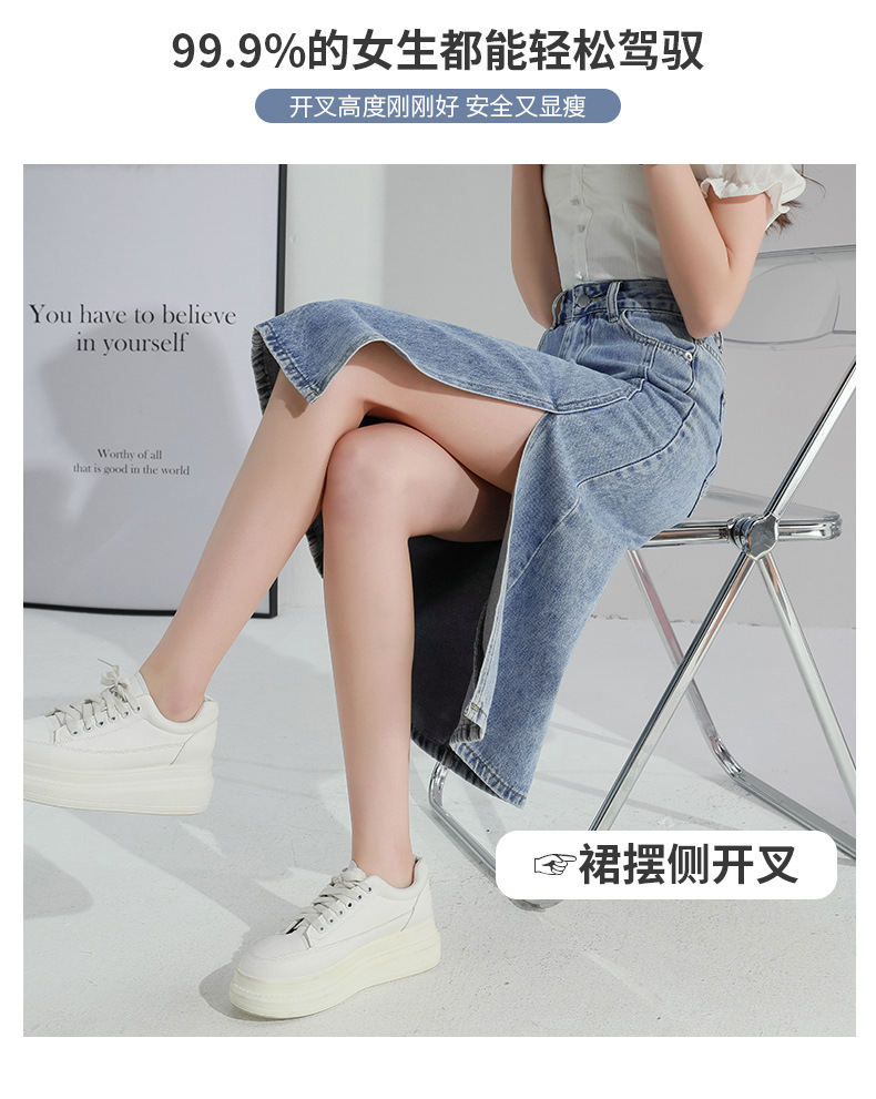 여성용 라이트 블루 슬릿 데님 스커트, 중간 길이의 A라인 하이엔드 핫걸 스위트 힙 스커트스토어 가기
