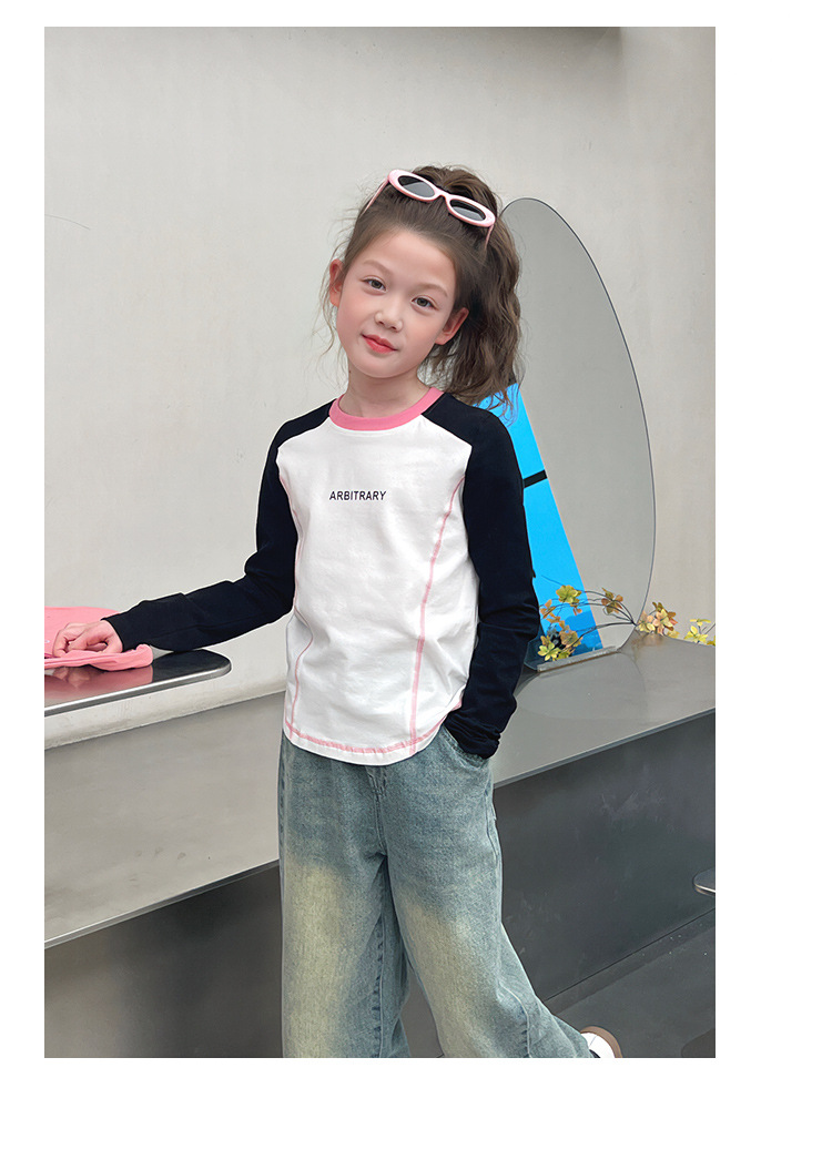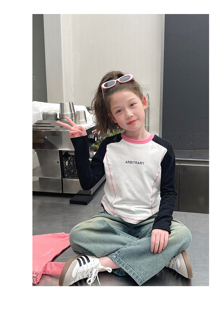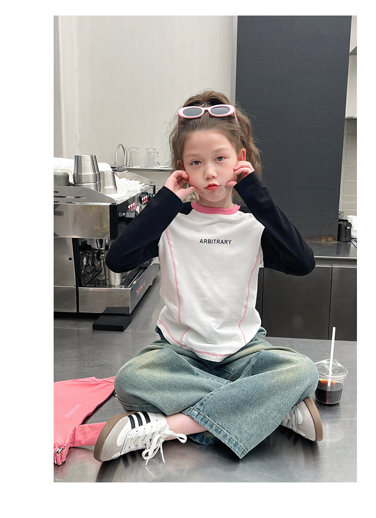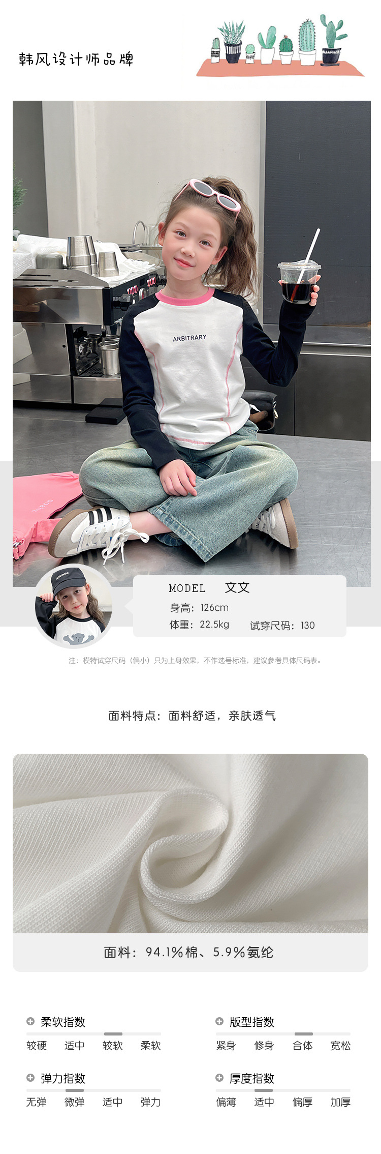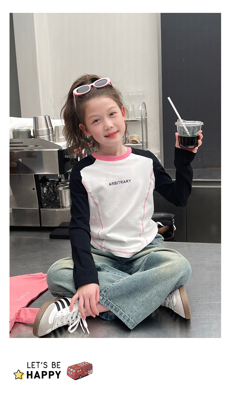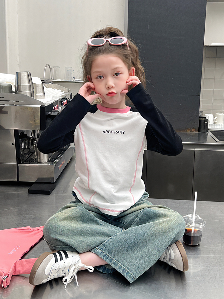 소녀 유행 슬림 핏 티셔츠 어린이 세련 된 긴팔베이스 셔츠 대형 아동복 내부 재킷 2025 봄 새로운 스타일스토어 가기