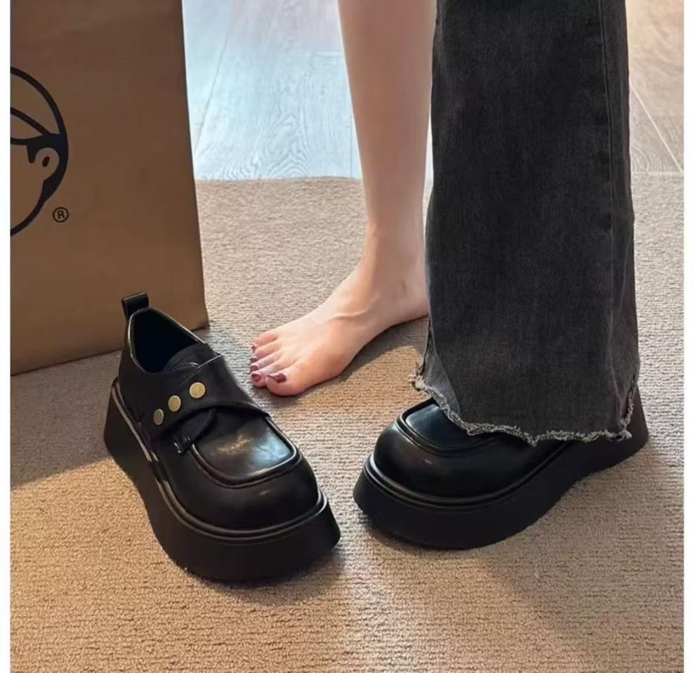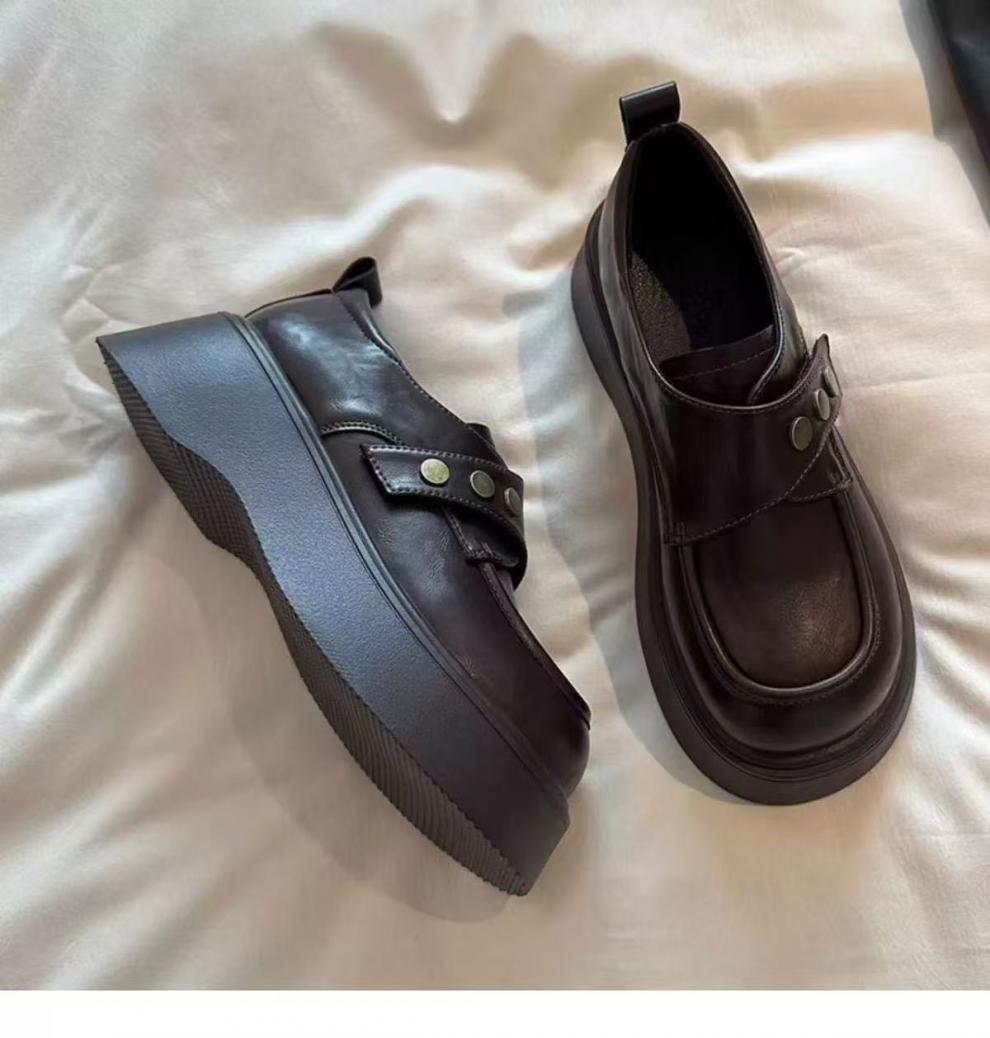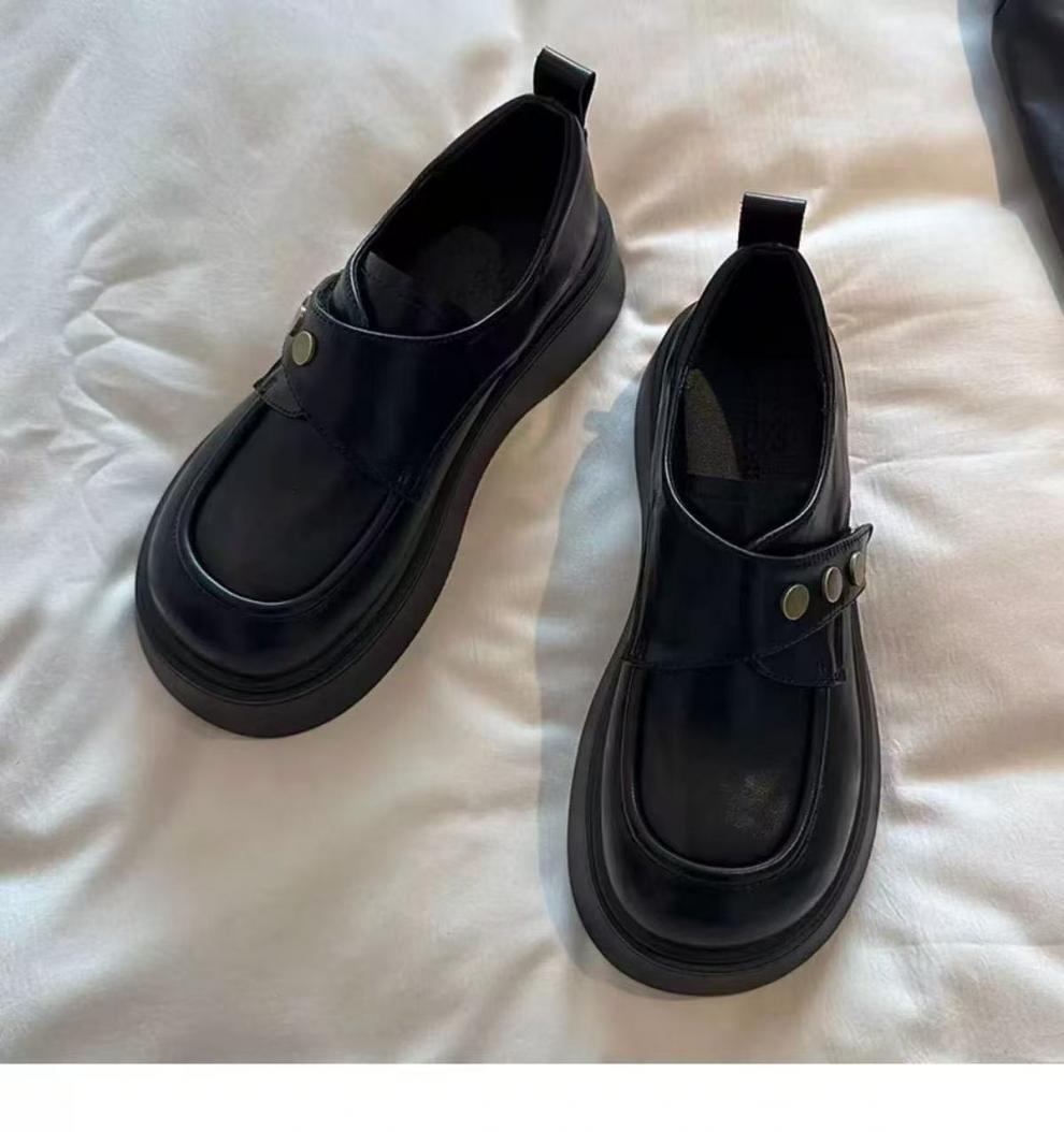 여성용 벨크로 두꺼운 밑창 작은 가죽 신발, 영국식 로퍼, 봄 신상품, 다용도 플랫폼 밑창 신발스토어 가기