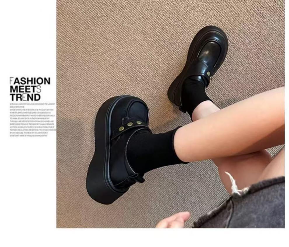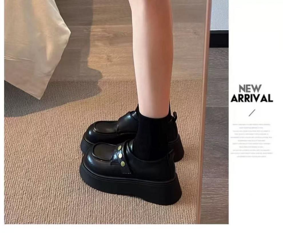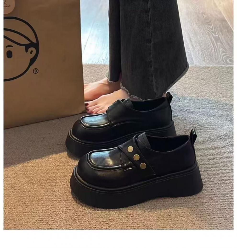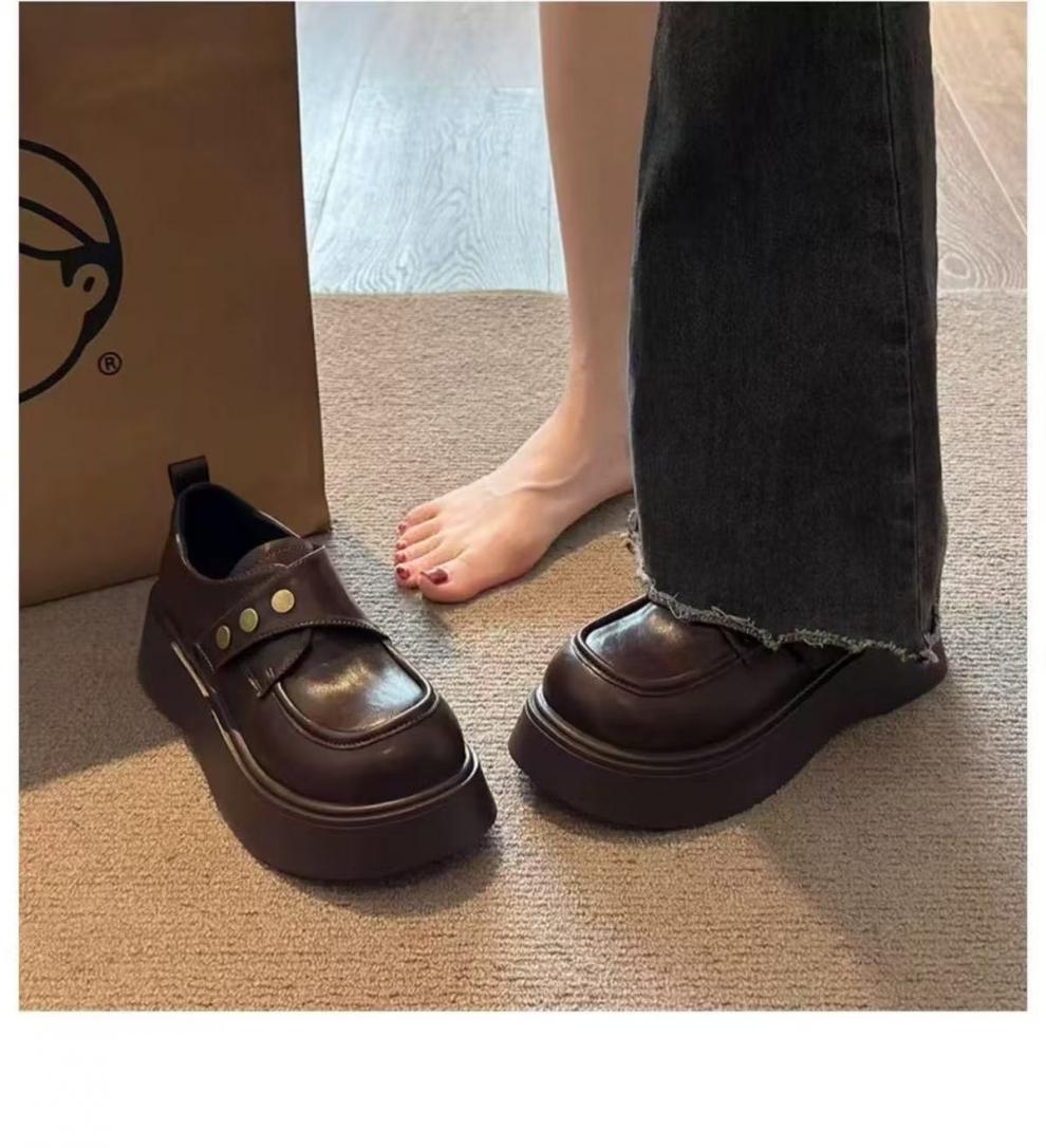 여성용 벨크로 두꺼운 밑창 작은 가죽 신발, 영국식 로퍼, 봄 신상품, 다용도 플랫폼 밑창 신발스토어 가기