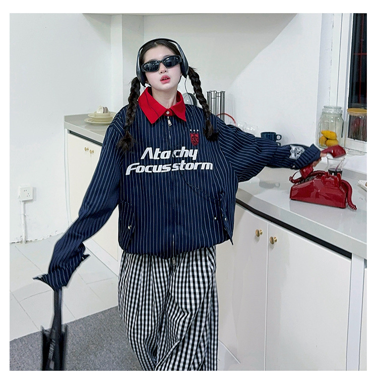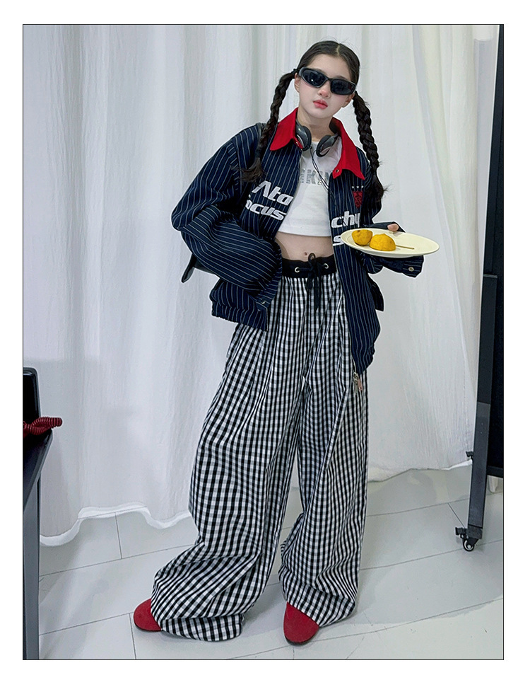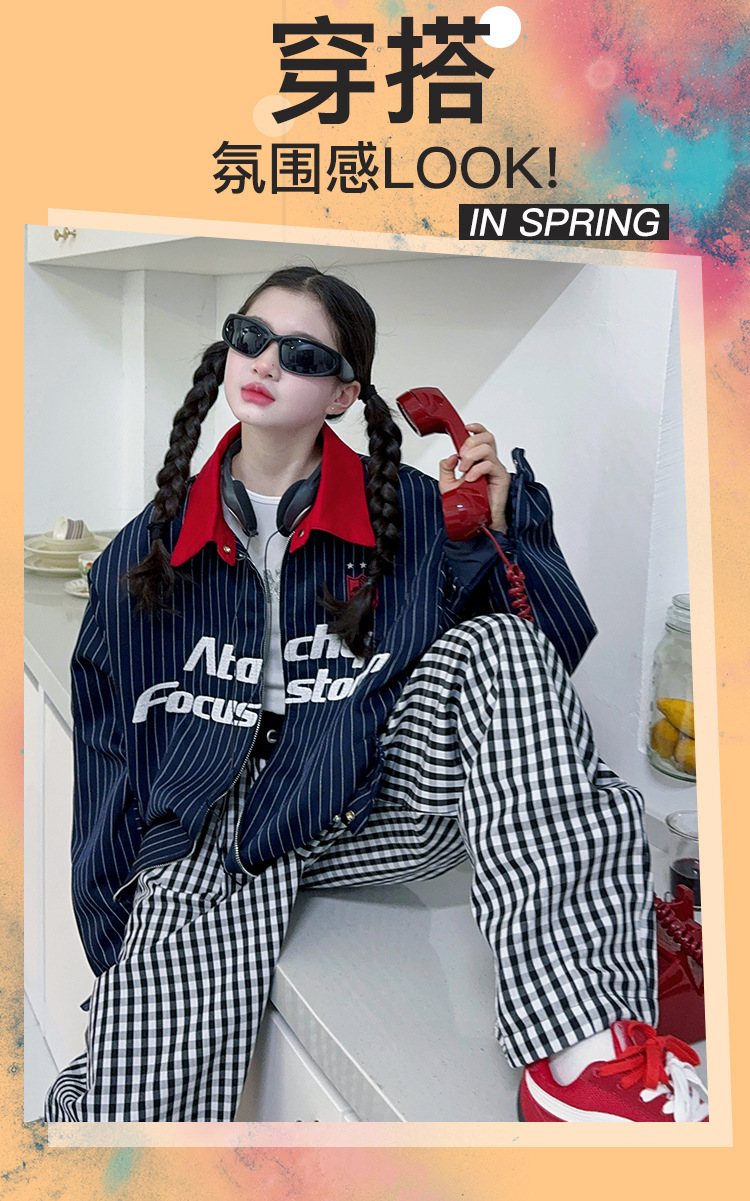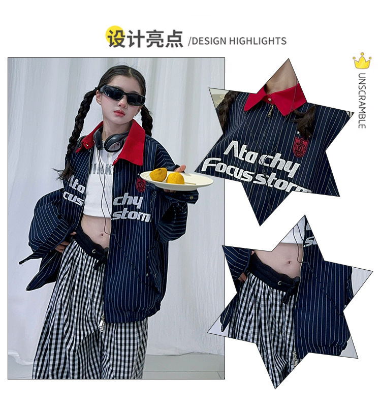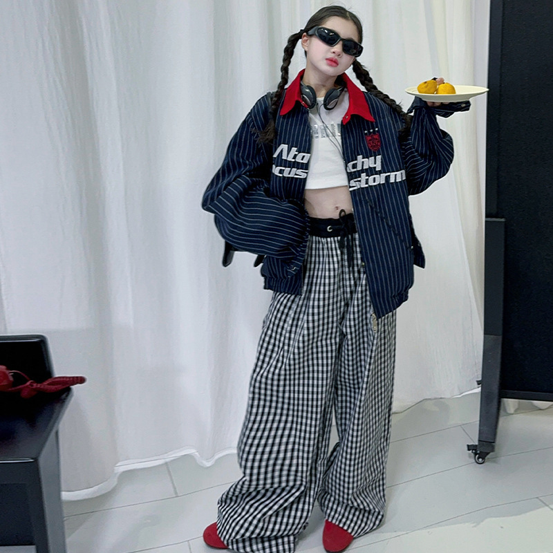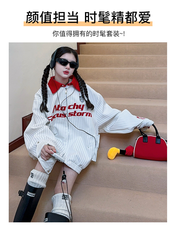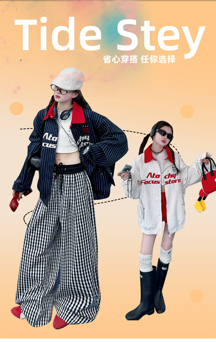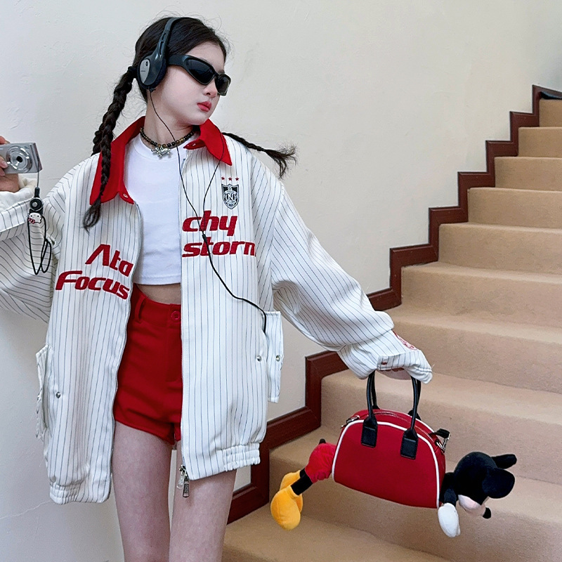 소녀 2025 봄 미국 스트라이프 코트 어린이 유행 새 스타일 재킷 유행 쿨 탑 큰 어린이 유행 카디건스토어 가기