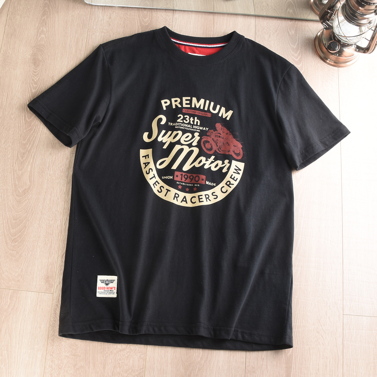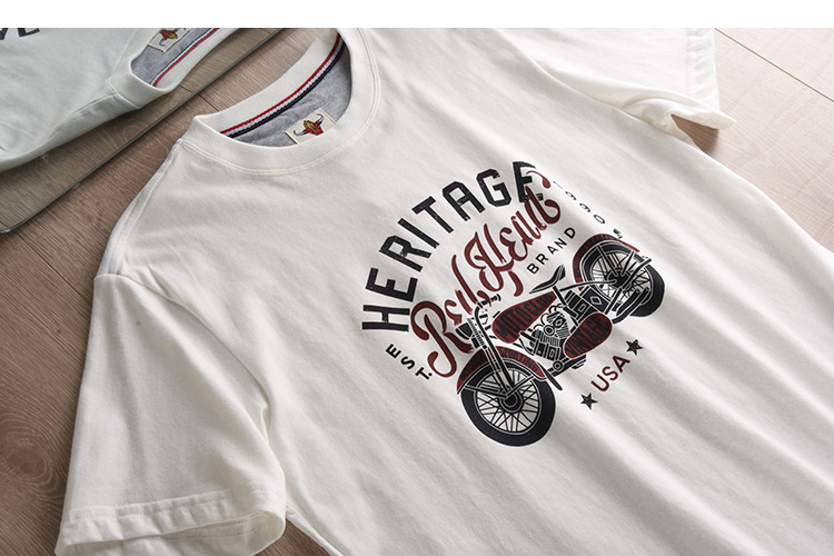 대외 무역 회사 홍콩 스타일 테일 싱글 스크럽 스킨 친화적 인 베이스 셔츠 남성 레트로 인쇄 반팔 티셔츠 반팔