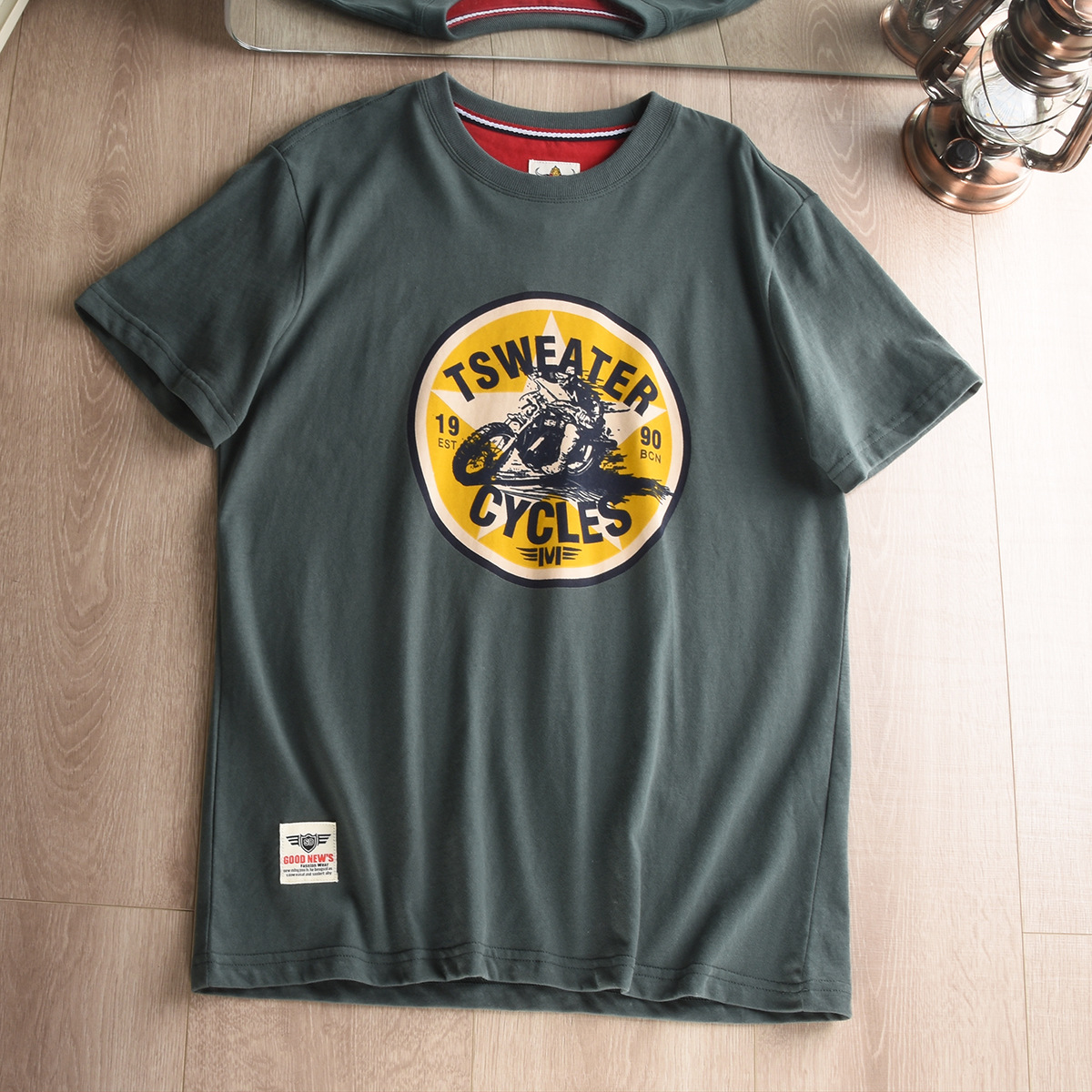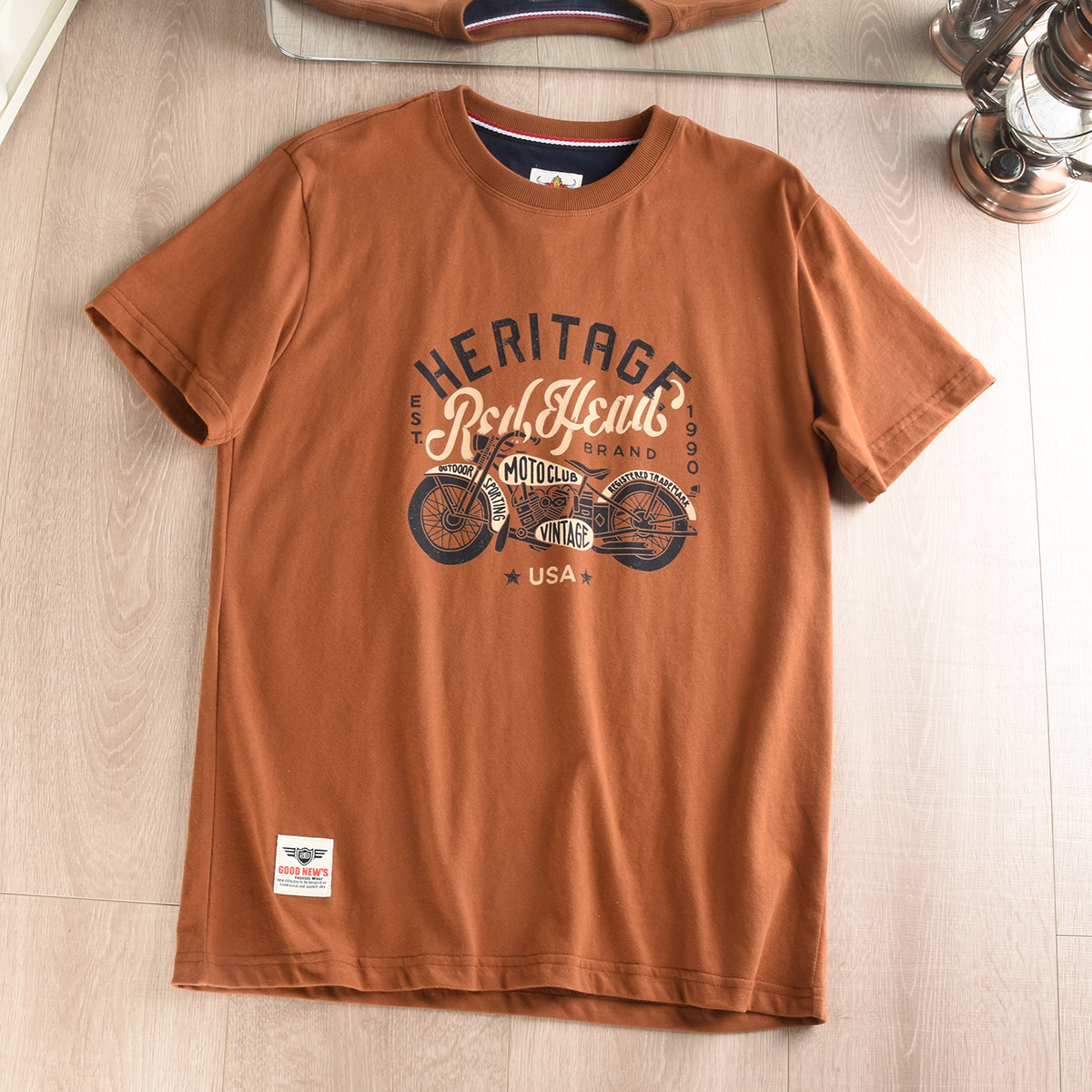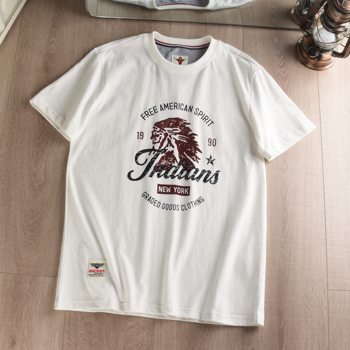 대외 무역 회사 홍콩 스타일 테일 싱글 스크럽 스킨 친화적 인 베이스 셔츠 남성 레트로 인쇄 반팔 티셔츠 반팔스토어 가기