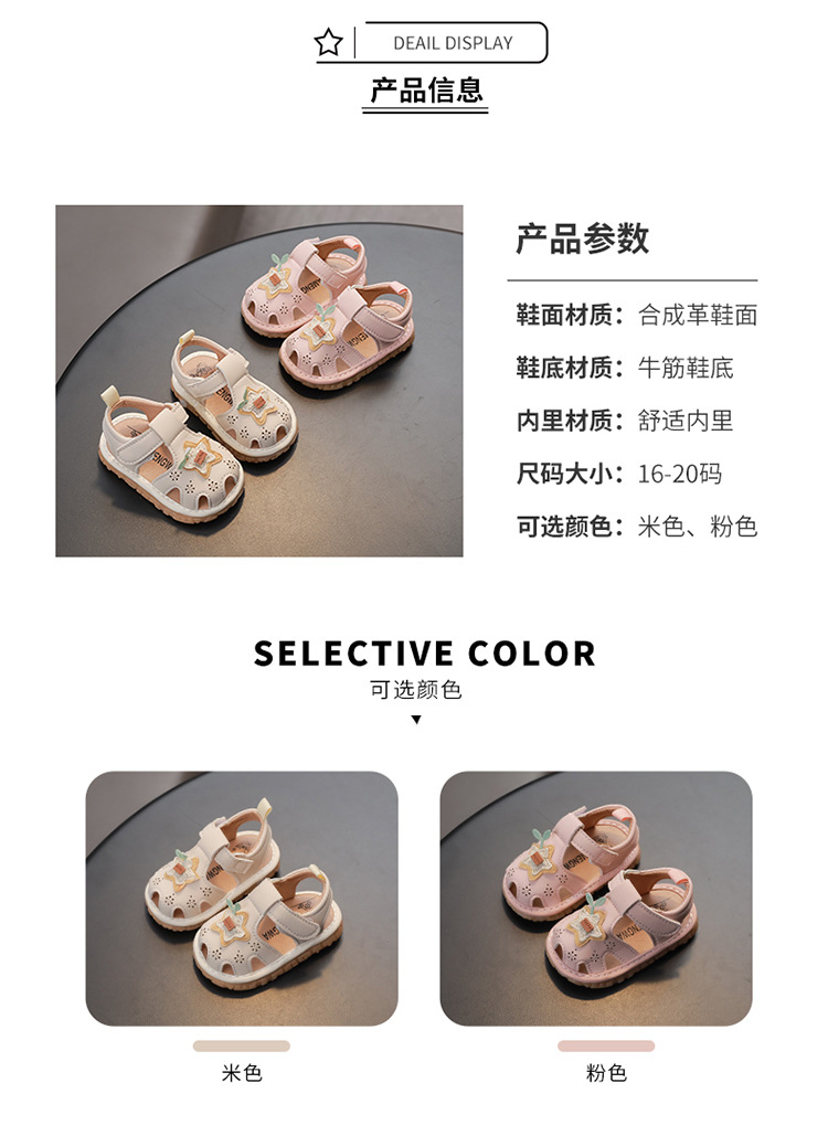 Jing Qi 아기 샌들, 신발 1 ~ 3 세 여름 새로운 여성 아기 신발 부드러운 바닥 미끄럼 통기성 실내 신발스토어 가기