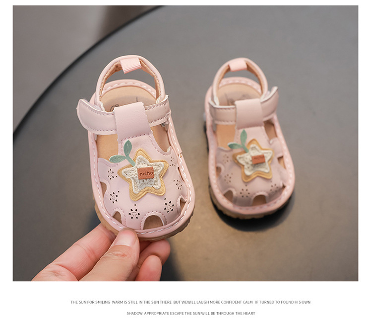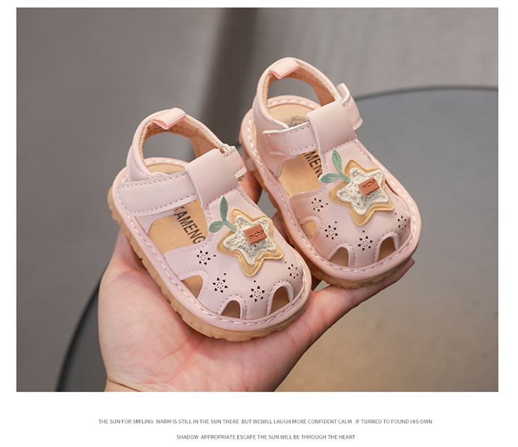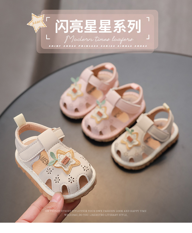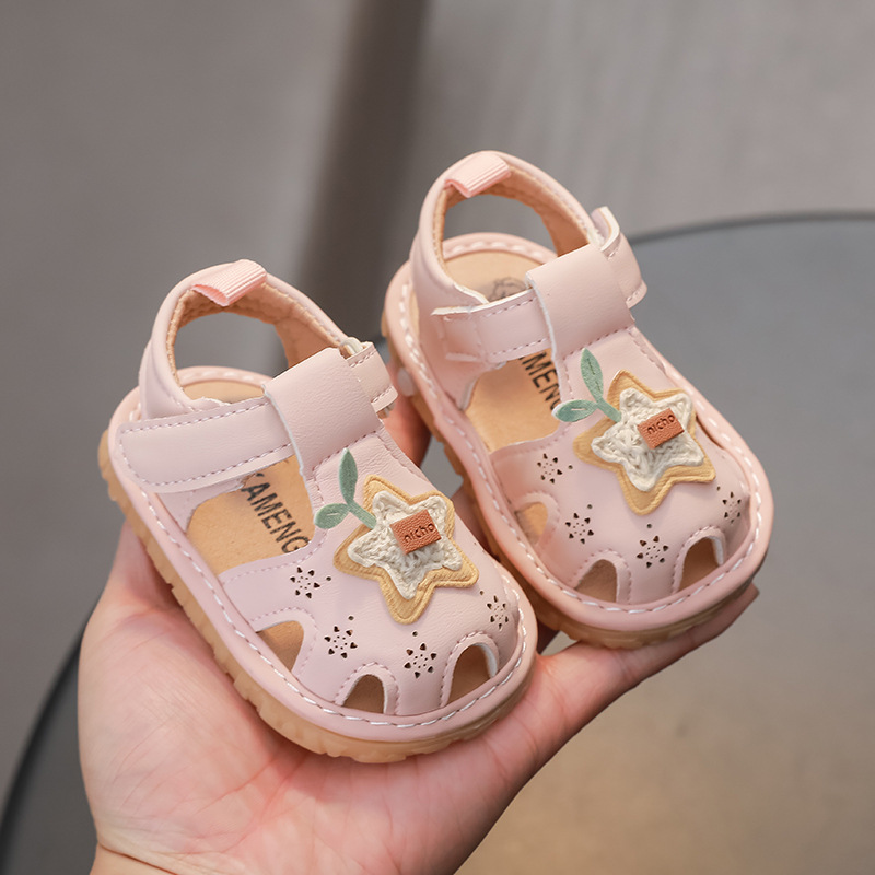 Jing Qi 아기 샌들, 신발 1 ~ 3 세 여름 새로운 여성 아기 신발 부드러운 바닥 미끄럼 통기성 실내 신발