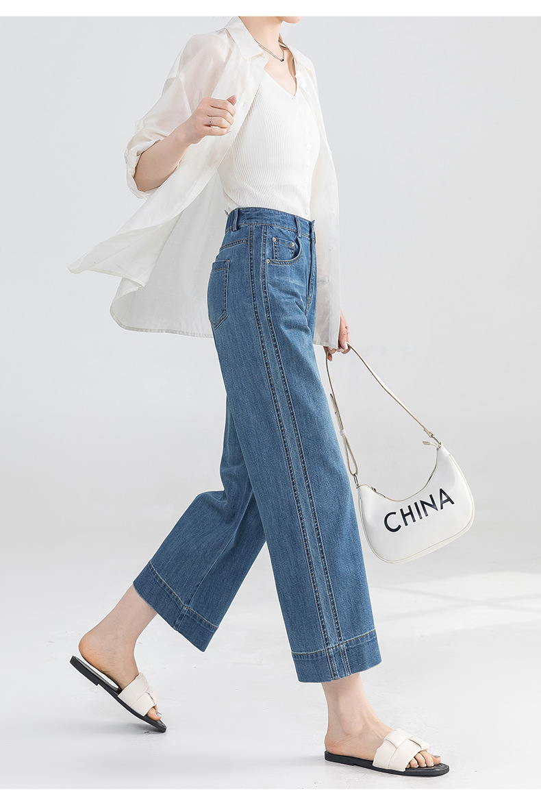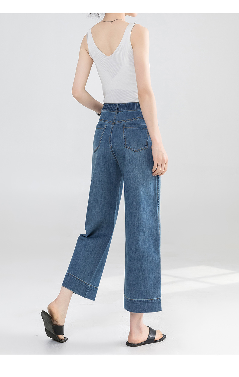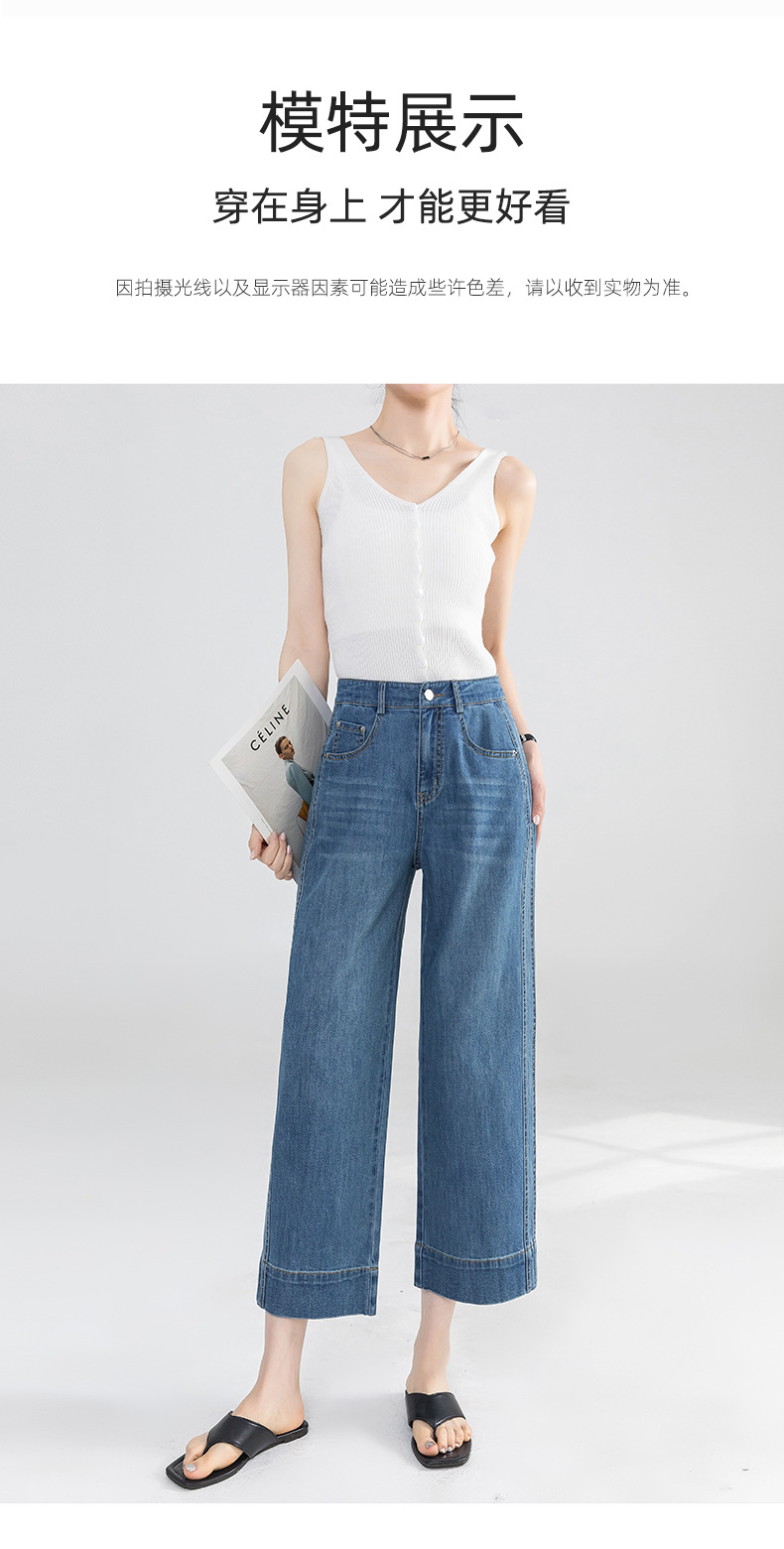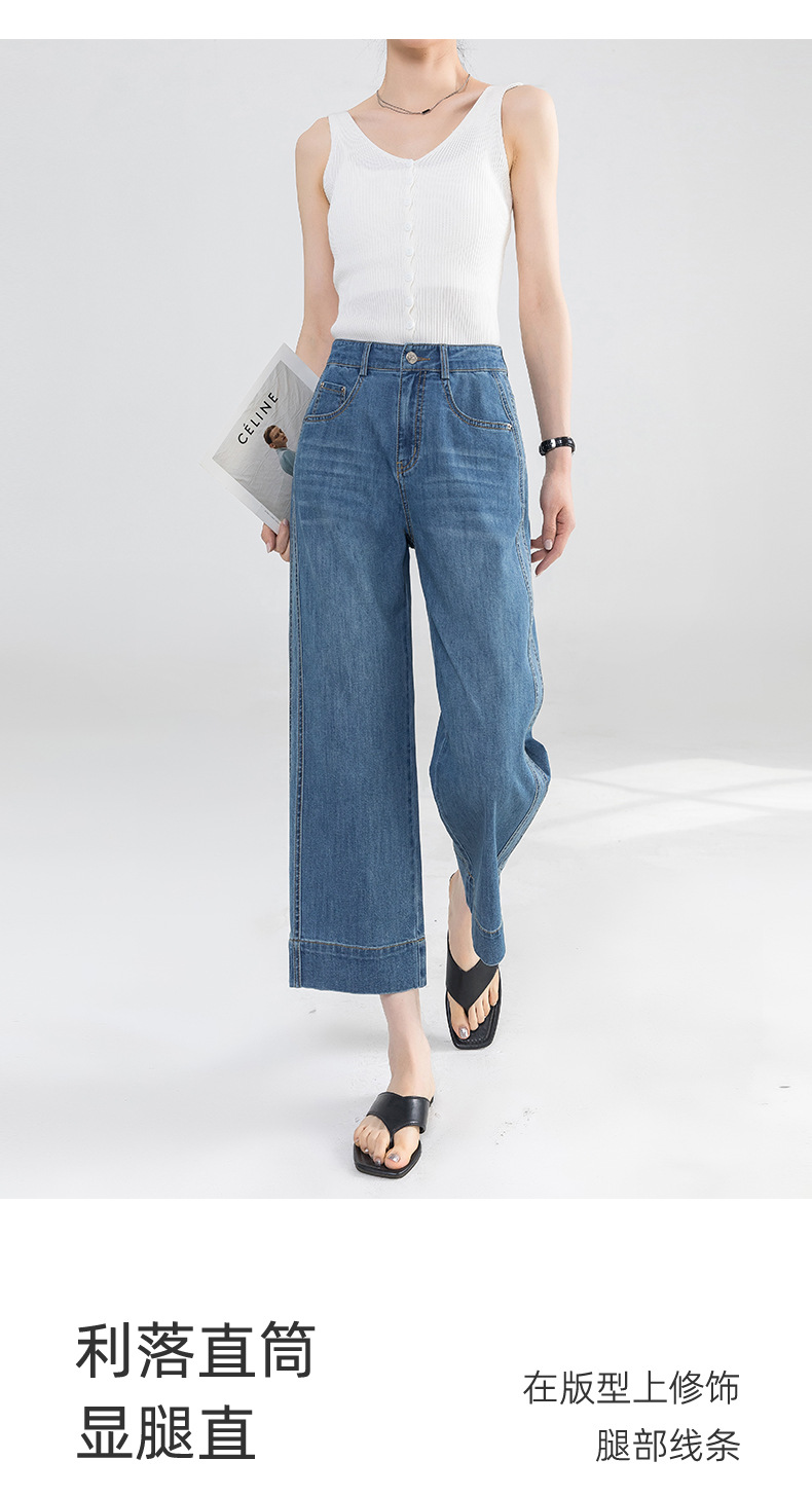 Yanrui 여름 얇은 자른 직선 청바지 여성의 높은 허리 유행 통근 짧은 느슨한 슬림 넓은 다리 바지